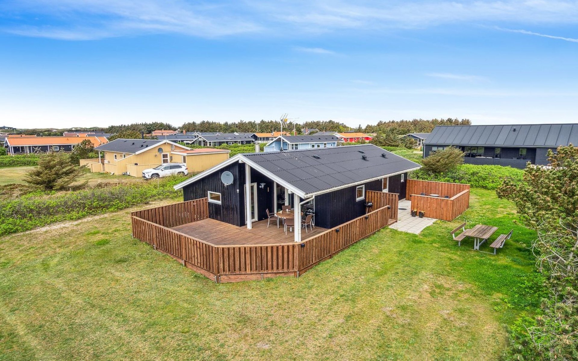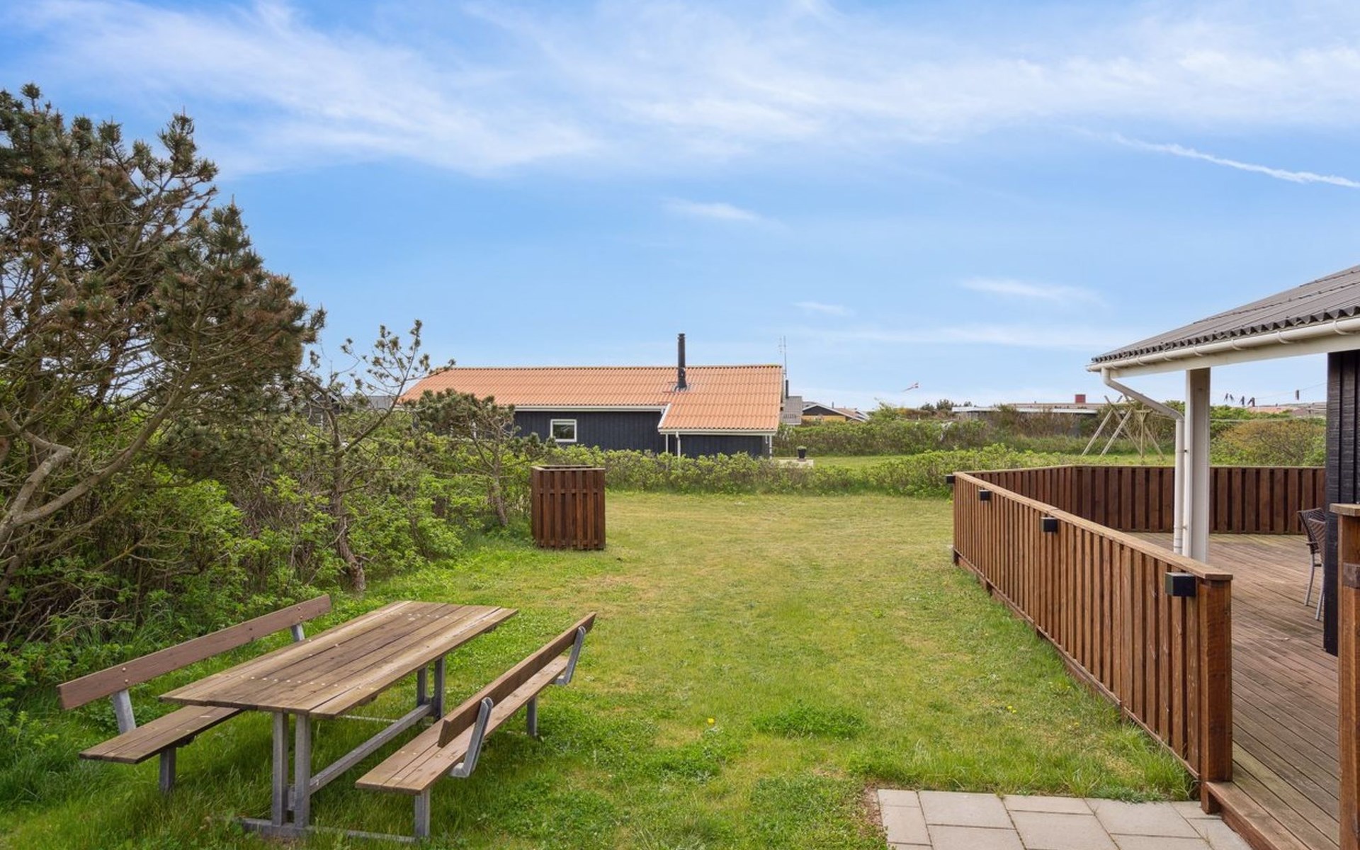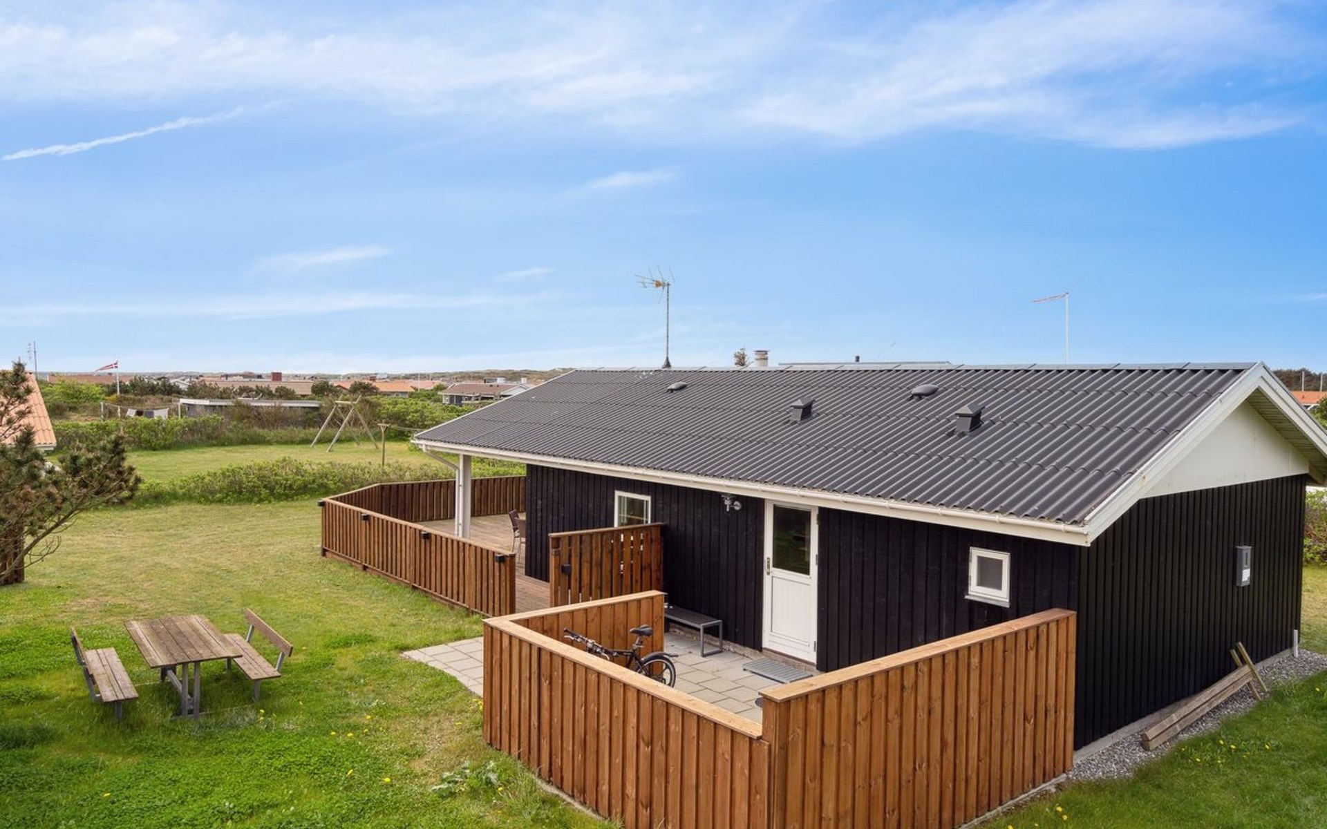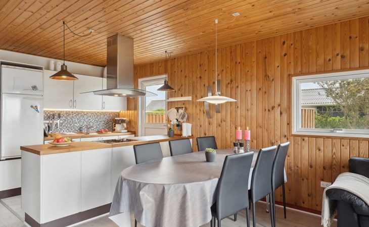 Einfamilienhaus, Baujahr 1986. 700 m vom Meer. Zur Alleinbenutzung: Grundstück 845 m2. Terrasse (36 m2), Grill. Im Hause: Waschmaschine, Wäschetrockner. Parkplatz beim Haus. Lebensmittelgeschäft 300 m. Der Besitzer akzeptiert keine Jugendgruppen.
