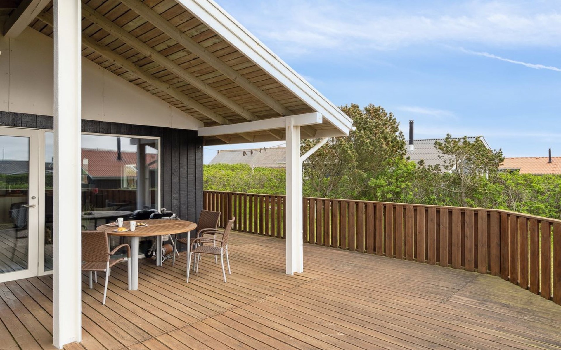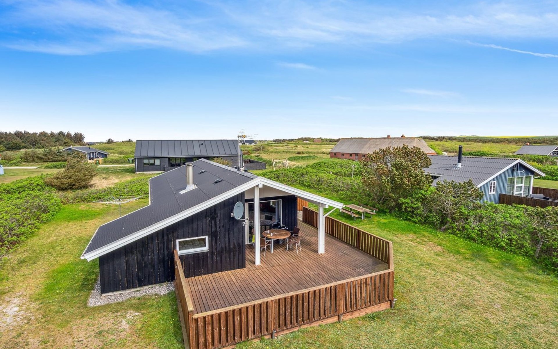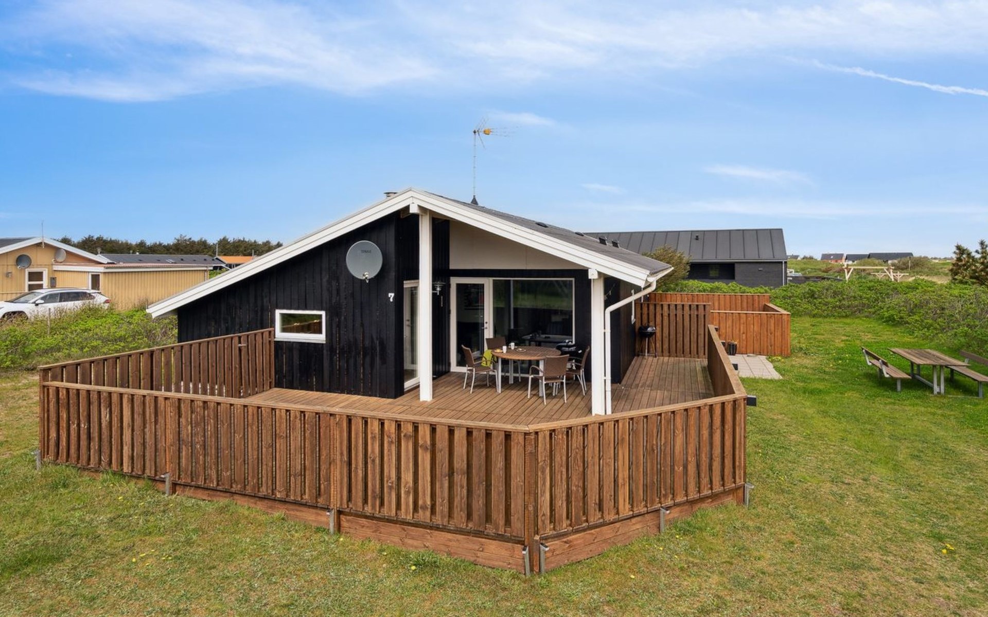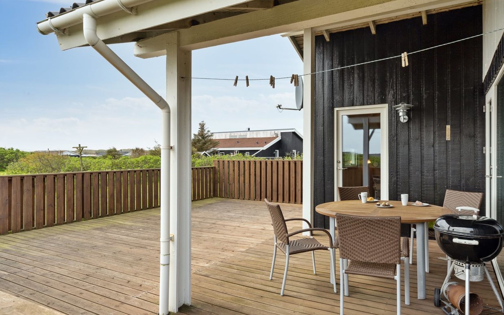 Einfamilienhaus, Baujahr 1986. 700 m vom Meer. Zur Alleinbenutzung: Grundstück 845 m2. Terrasse (36 m2), Grill. Im Hause: Waschmaschine, Wäschetrockner. Parkplatz beim Haus. Lebensmittelgeschäft 300 m. Der Besitzer akzeptiert keine Jugendgruppen.