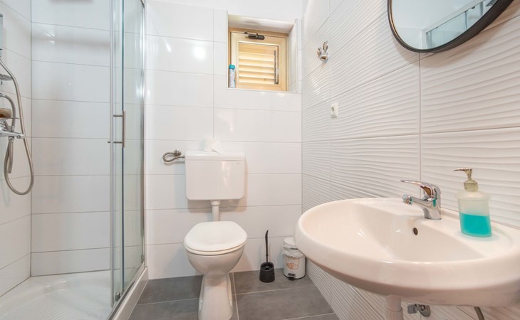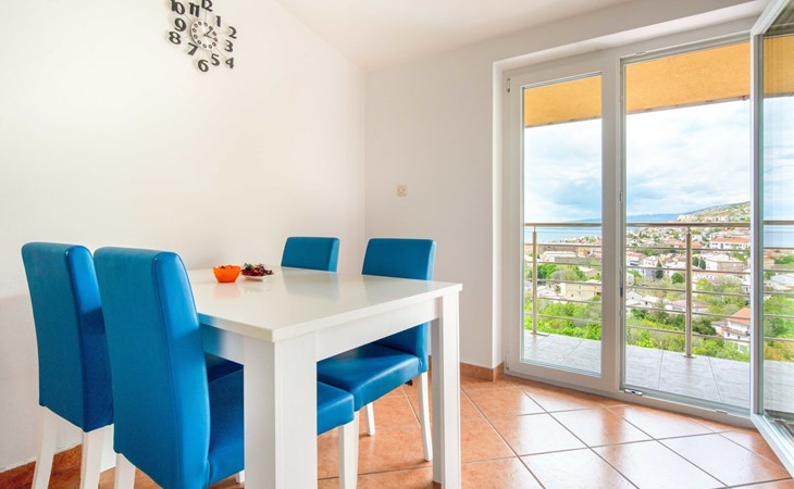Mehrfamilienhaus "Miškulin". 1.4 km vom Zentrum von Senj, sonnige, erhöhte Lage, 500 m vom Meer, 500 m vom Strand, in einer Sackgasse. Zur Mitbenutzung: Grundstück 700 m2, Schwimmbad (26 m2, 135 cm tief, saisonale Verfügbarkeit: 11.Mai. - 28.Sep.). Ungleichmässige Schwimmbadform Dusche/WC im Poolbereich, Terrasse (50 m2), Gartenmöbel, Grillhaus, Kinderspielplatz (Rutschbahn, Schaukel). Im Hause: Internetzugang, Waschmaschine (zur Mitbenutzung, extra). Parkplatz beim Haus auf dem Grundstück. Einkaufsgeschäft 250 m, Supermarkt 2 km, Restaurant 1.5 km, Bushaltestelle 1.3 km, Kieselstrand 500 m, Strandbad 2.3 km, betonierter Strand 2.3 km.
