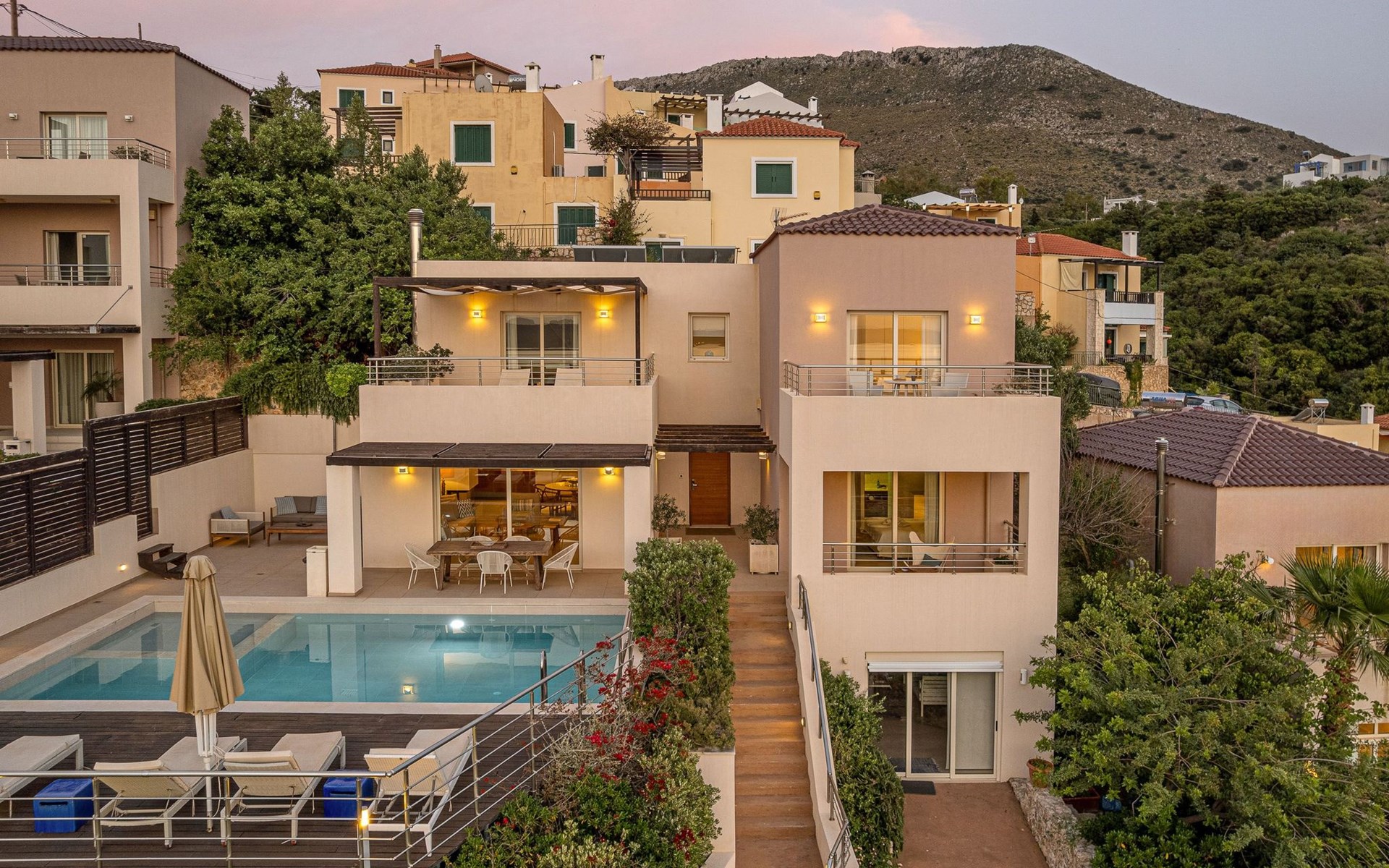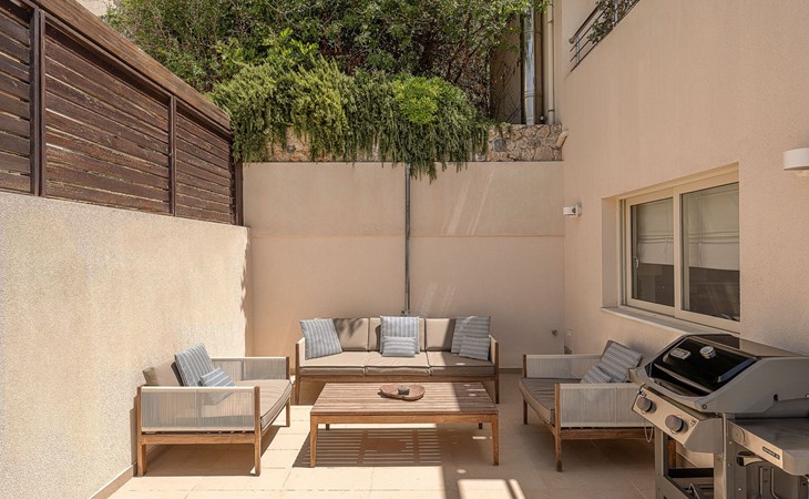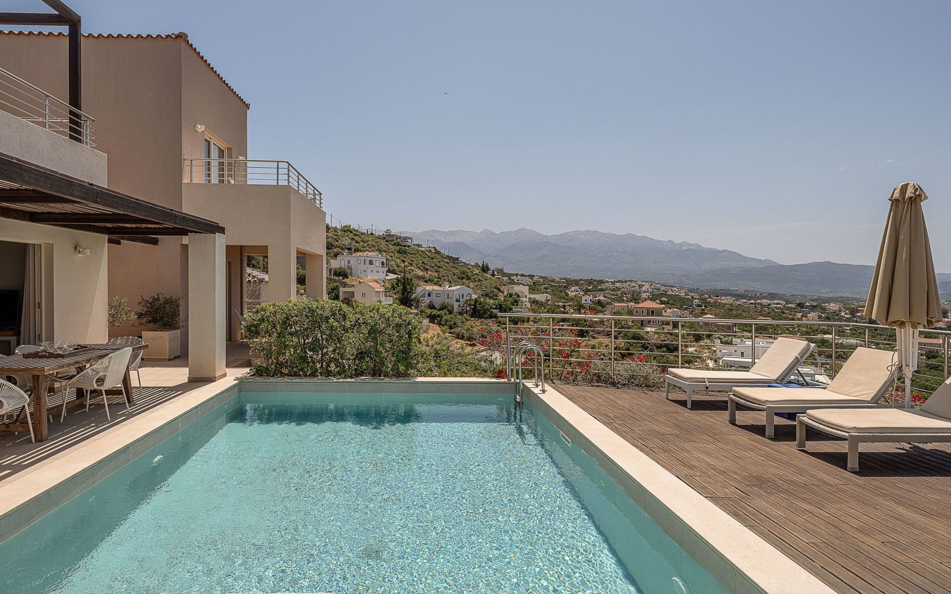 Gibt es für Sie im Sommerurlaub einen besseren Ort als am Pool zu liegen und sich zu bräunen? Der Swimmingpool mit Poolbereich und der Loungebereich mit Sofas sind der ideale Ort, um sich zu entspannen und dabei den herrlichen Sonnenuntergang zu betrachten. Ganz in der Nähe des Pools gibt es einen Esstisch für entspannte Momente für Sie und Ihre Familie, einen Gasgrill und Sonnenliegen, um die kretische Sonne zu genießen. Der Zugang zum Meer ist ziemlich einfach, so dass Sie die Möglichkeit haben, das kretische Meer zu genießen. Vergessen Sie nicht, dass ein sicherer Parkplatz vor der Villa vorhanden ist.