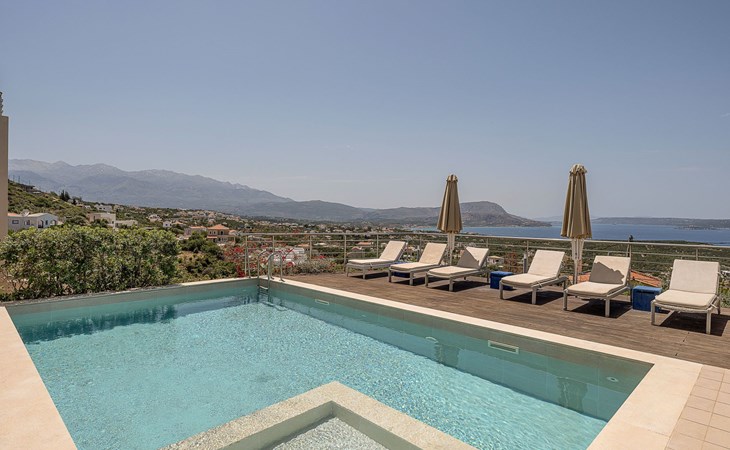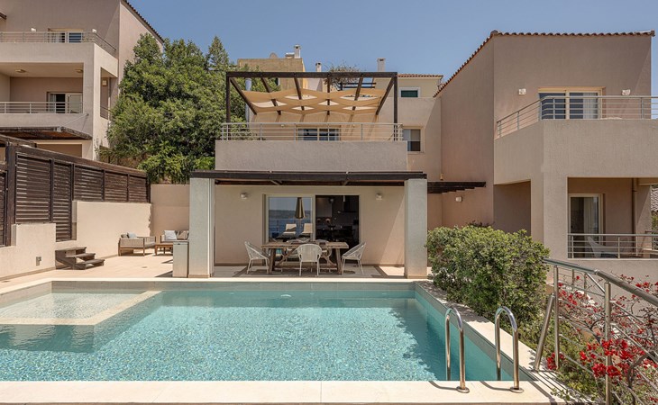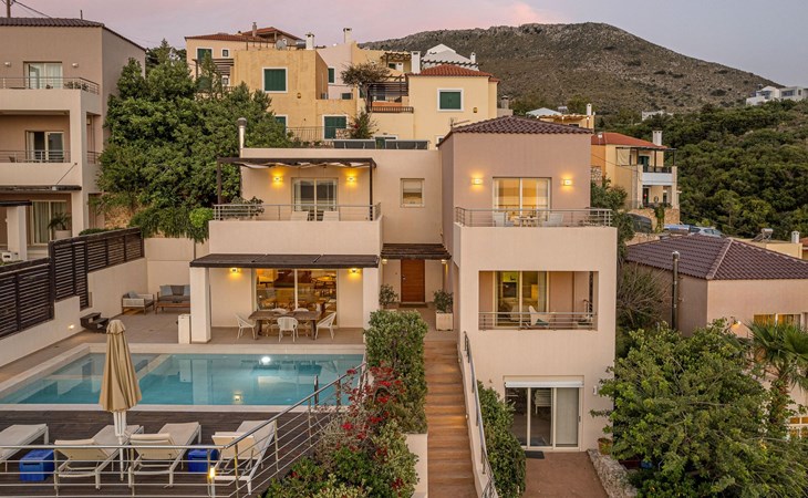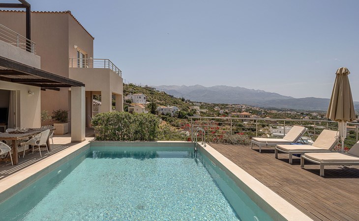 Erleben Sie einen atemberaubenden Blick auf das Meer und den Sonnenuntergang von dieser modernen Luxusvilla in Kokkinon Khorion, Chania. Nur 2 km vom kristallklaren kretischen Meer entfernt, bietet dieses stilvolle zweistöckige Haus 3 Schlafzimmer mit eigenem Bad, einen privaten Pool und ein geräumiges Innen- und Außenleben - perfekt für Familien oder Gruppen, die Komfort und Privatsphäre suchen.