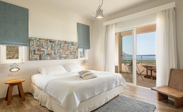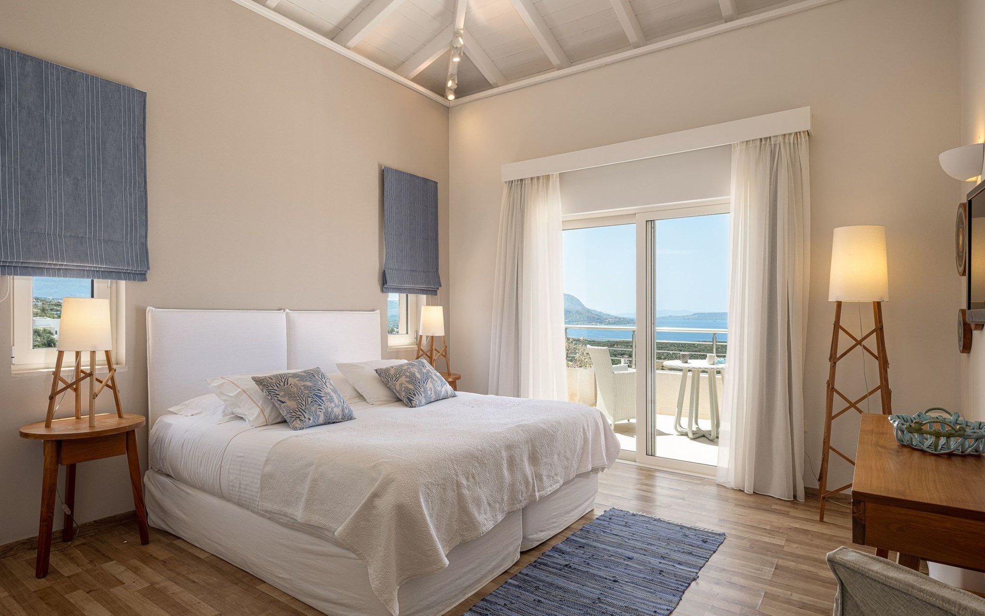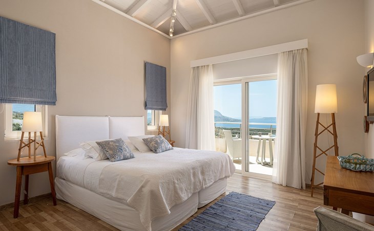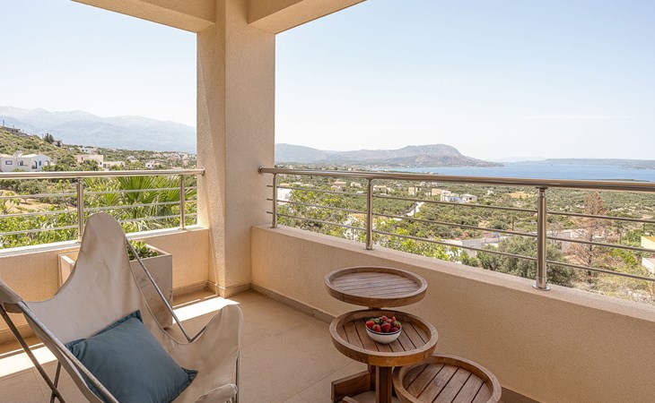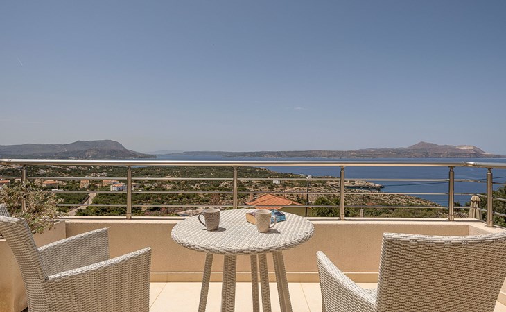Schlafzimmer 3: Zwei Einzelbetten (90×200), die in ein Kingsize-Bett umgewandelt werden können, en-suite Badezimmer mit Regendusche, 36'' LED TV, Zugang zu einem privaten Balkon mit Sitzgarnitur und Meerblick