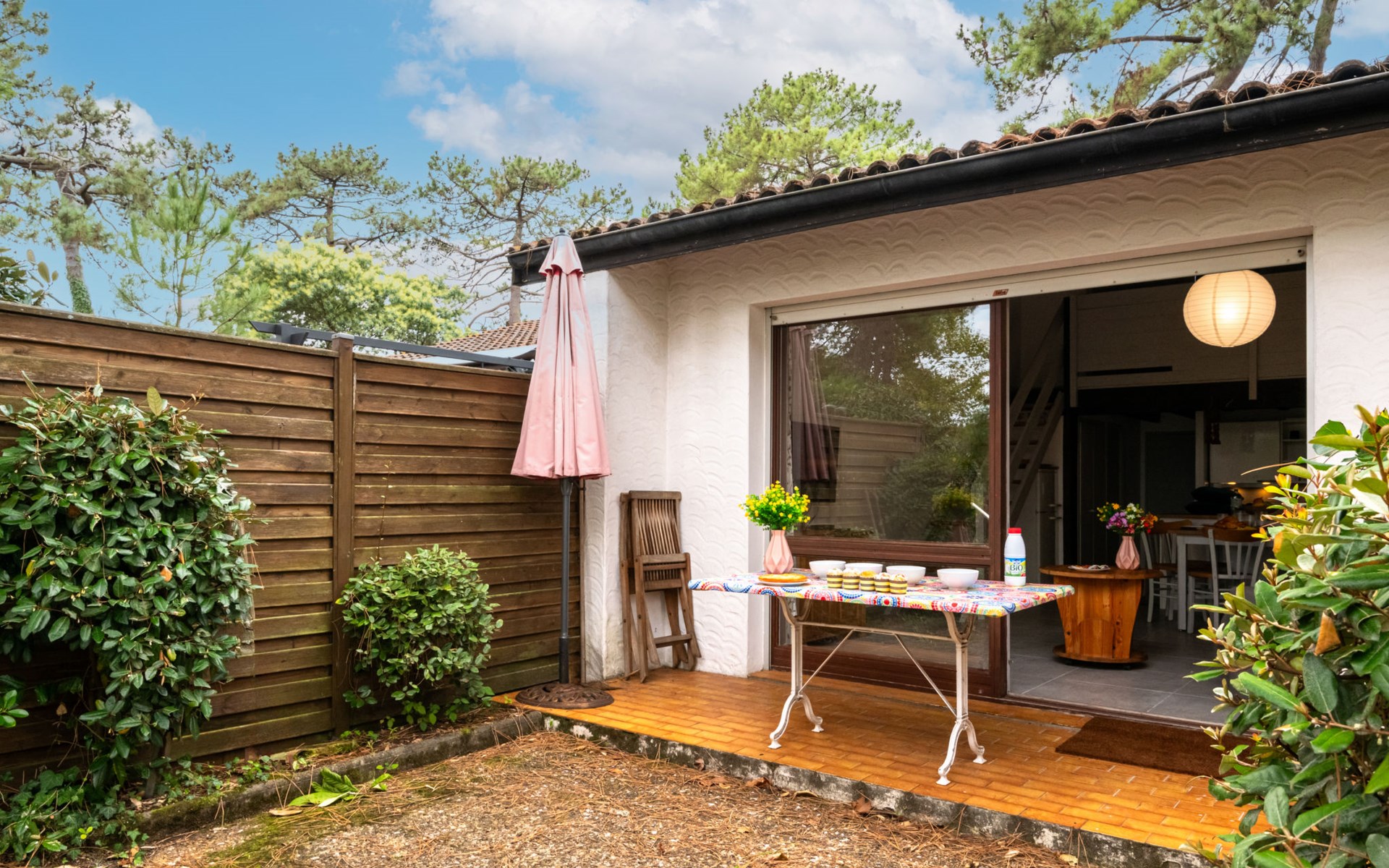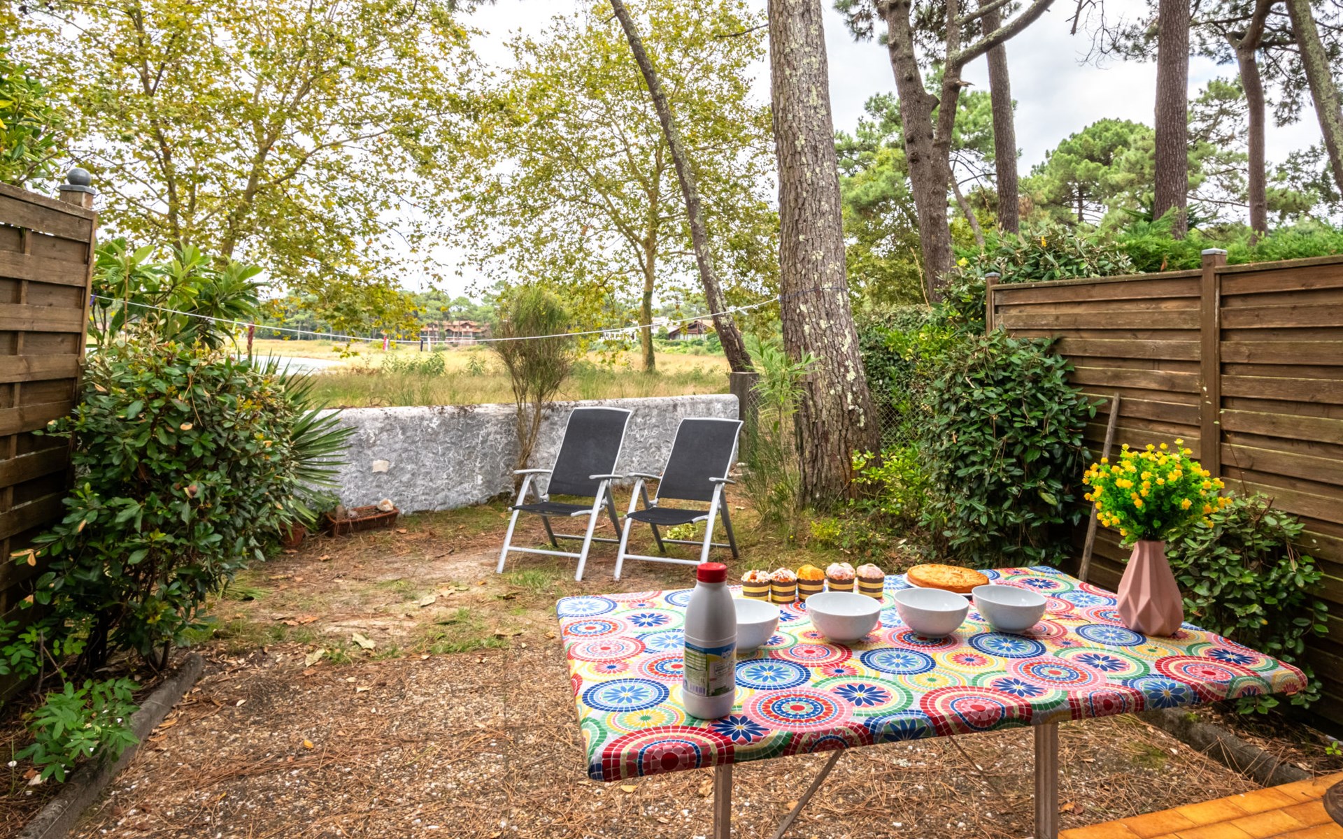 Mimizan Plage: Residenz "Hameau du courant". 400 m vom Waldrand, 1 km vom Meer, 10 km vom See, 1 km vom Strand, 100 m vom Fluss. Einkaufsgeschäft 1.2 km, Lebensmittelgeschäft 2 km, Supermarkt 2 km, Einkaufszentrum 5 km, Restaurant 1.2 km, Bäckerei 1.5 km, Fußgängerzone 2 km, Bushaltestelle 1.2 km, Sandstrand "sud digue" 1 km, Badesee "Aureilhan" 10 km. Golfplatz (9 Loch) 6 km, Surfschule 2 km, Tennis 1 km. Nahe gelegene Sehenswürdigkeiten: Biscarrosse 35 km, Arcachon le pilat 75 km, Musée de marquèze 45 km. Bekannte Seen in der Umgebung sind gut erreichbar: Aureilhan 10 km.