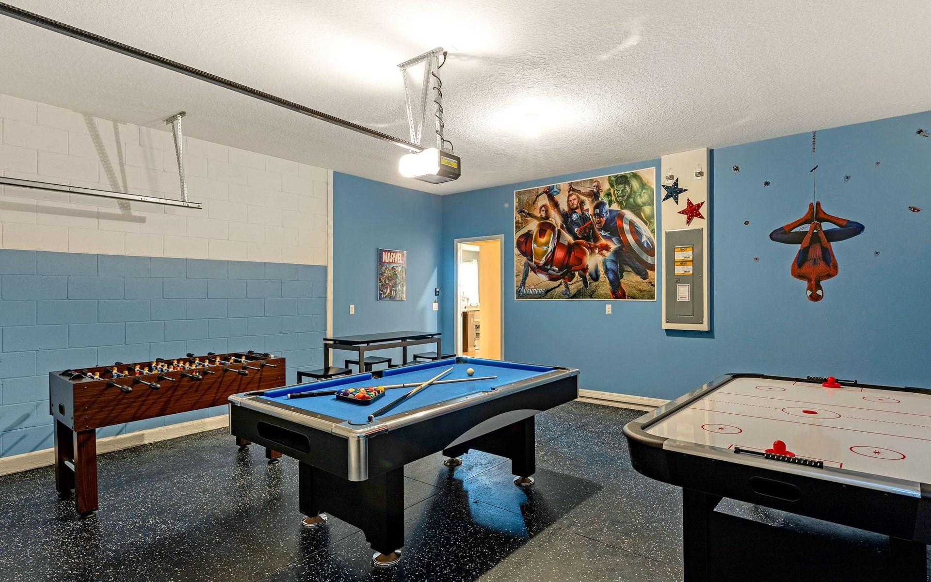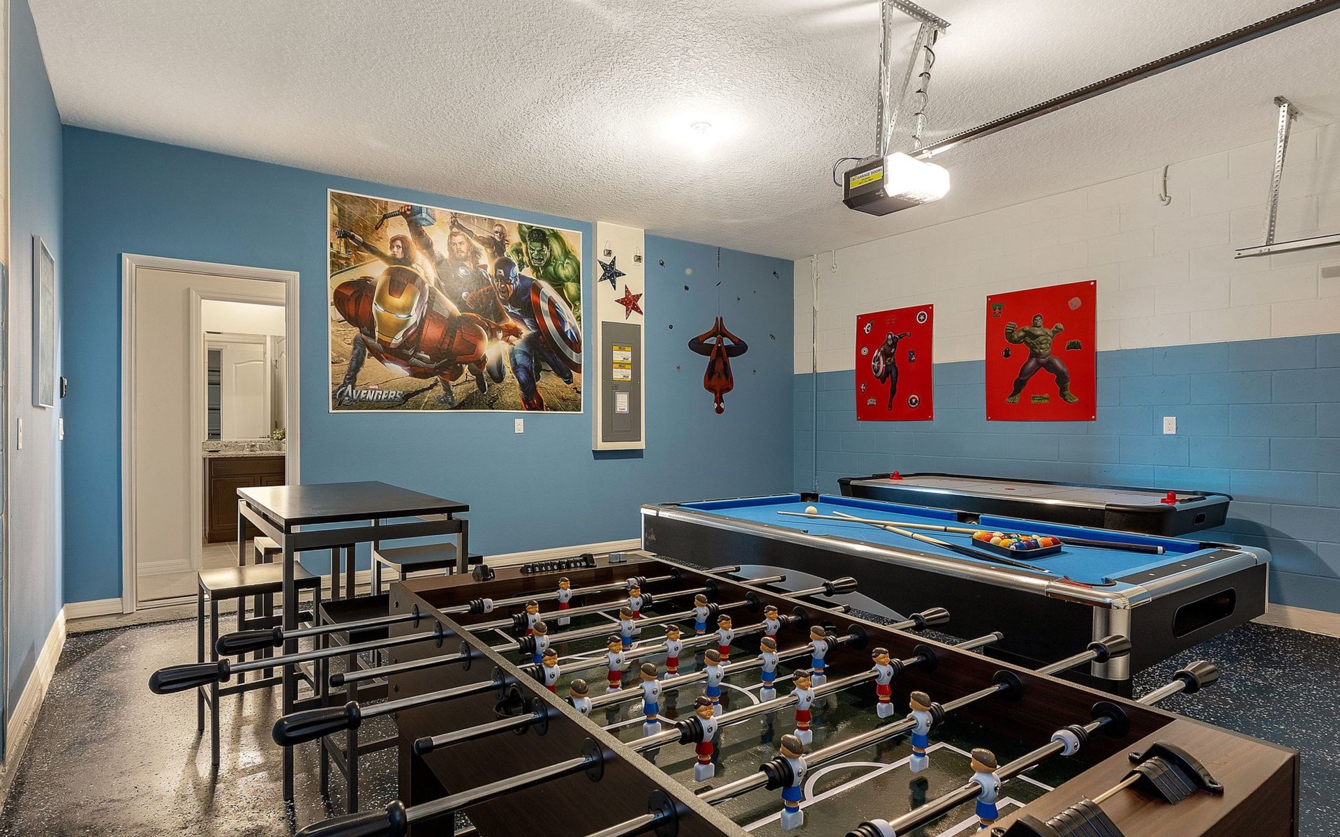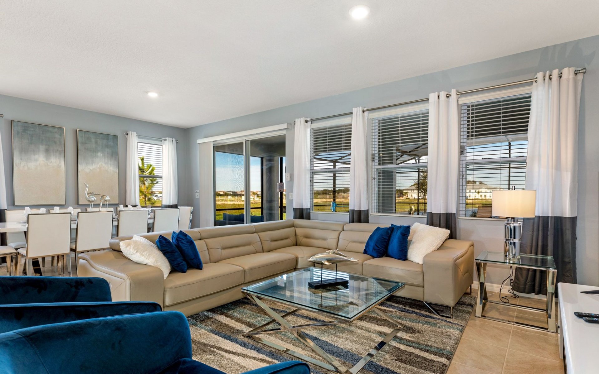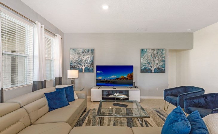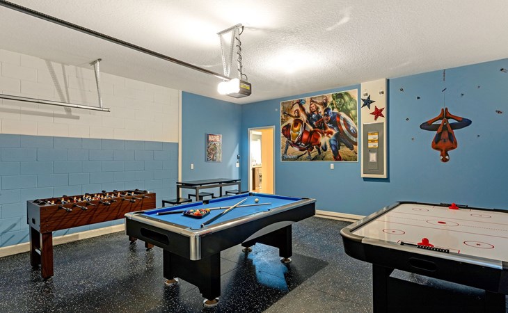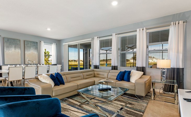 Treten Sie ein und erleben Sie eine Oase des Luxus und Komforts. Die Villa verfügt über ein modernes, offenes Design mit einem Familienbereich, in dem ein großes Ecksofa und ein Fernseher zum Entspannen einladen. Am eleganten Esstisch finden 10 Personen bequem Platz. In der geräumigen Küche, die mit modernen Geräten und einer gemütlichen Insel mit Sitzgelegenheiten ausgestattet ist, können Sie Gourmet-Mahlzeiten zubereiten. Unterhaltung ist im Spielzimmer garantiert, das mit einem Billardtisch, Airhockey und Tischfußball ausgestattet ist und jeden Moment zu einem Vergnügen macht.