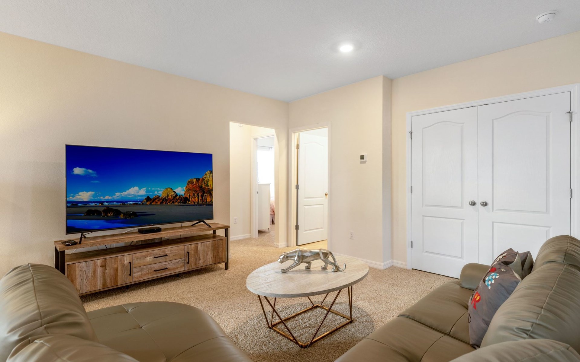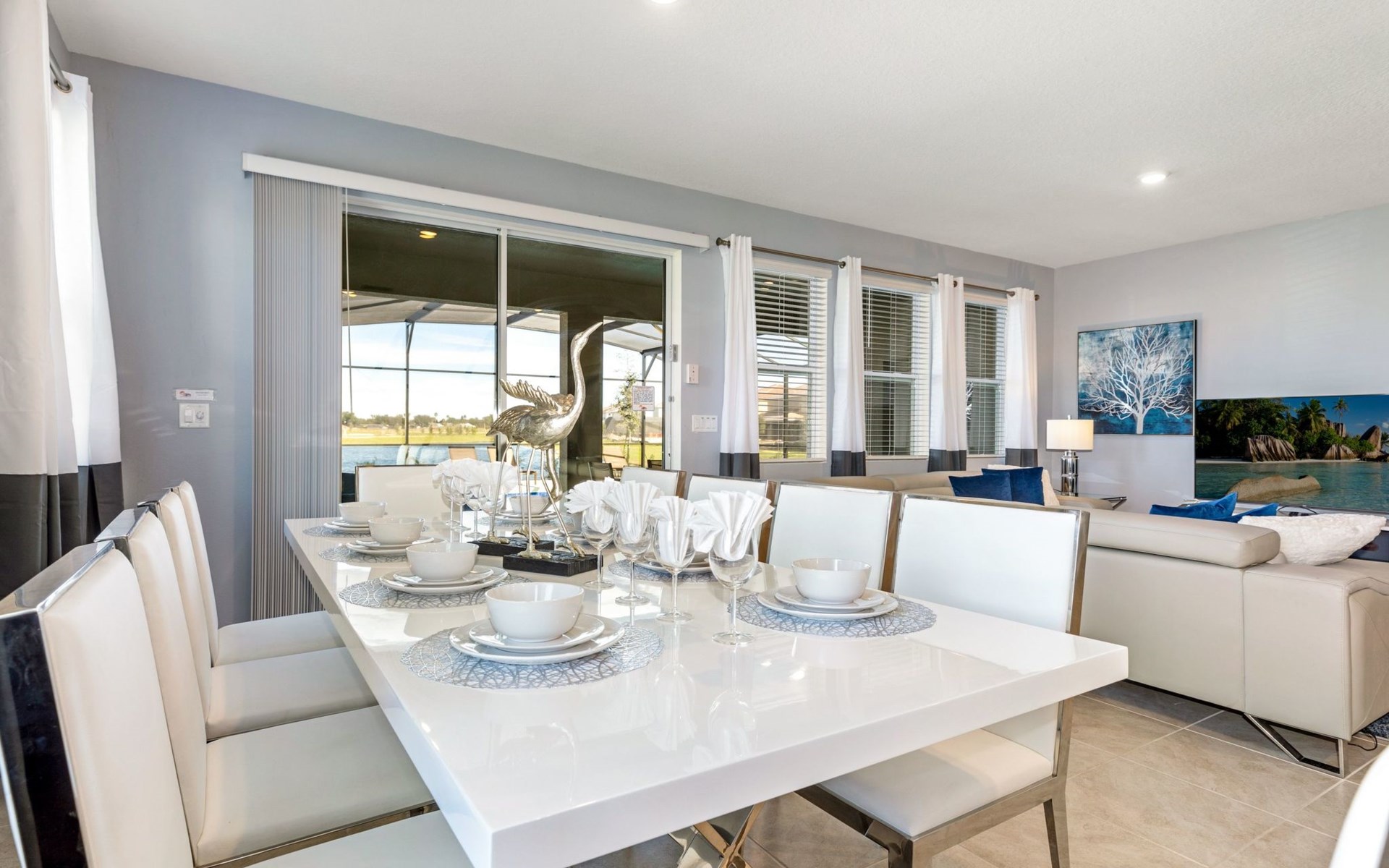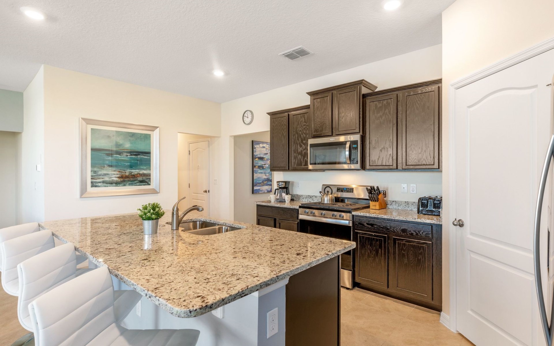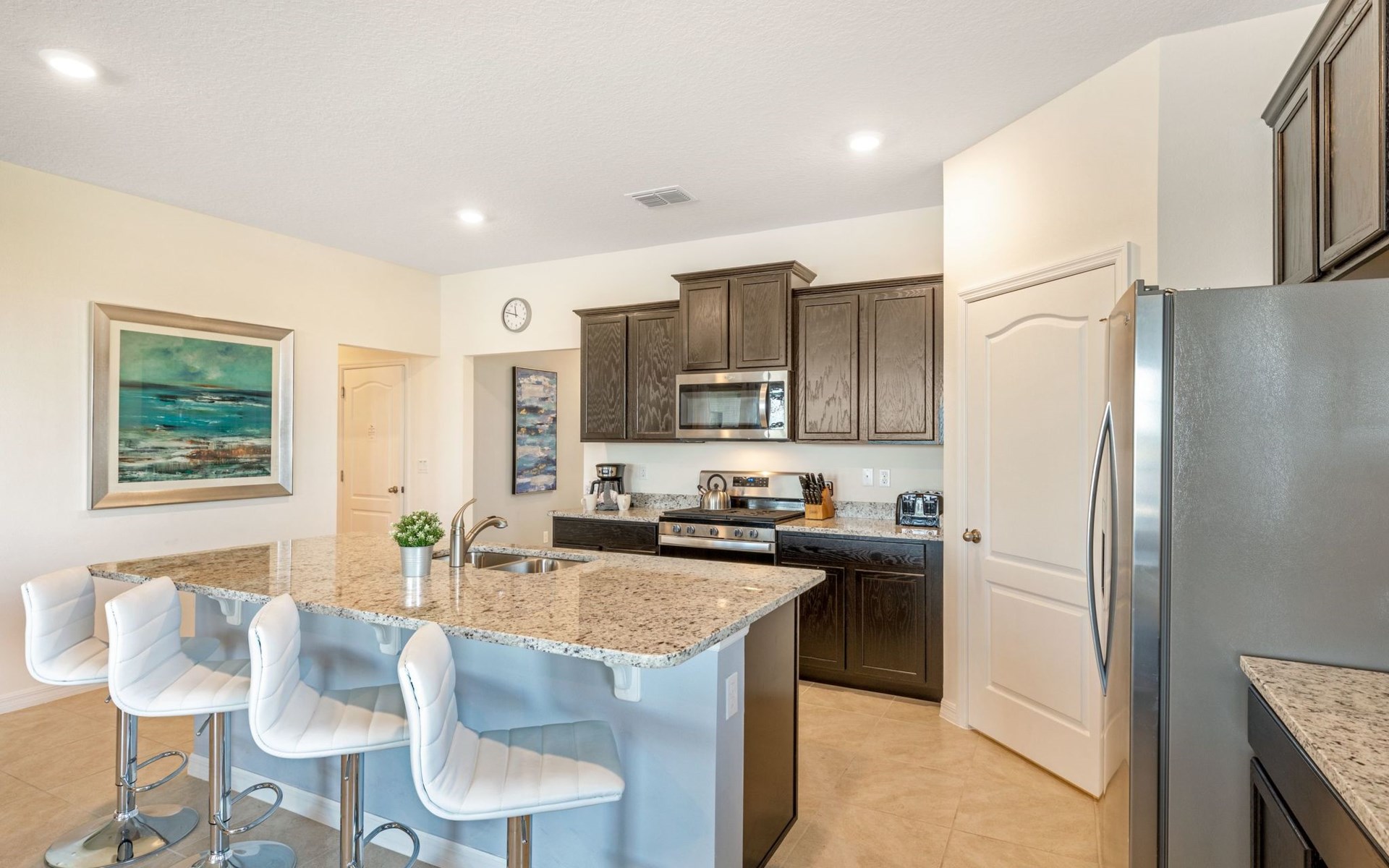Treten Sie ein und erleben Sie eine Oase des Luxus und Komforts. Die Villa verfügt über ein modernes, offenes Design mit einem Familienbereich, in dem ein großes Ecksofa und ein Fernseher zum Entspannen einladen. Am eleganten Esstisch finden 10 Personen bequem Platz. In der geräumigen Küche, die mit modernen Geräten und einer gemütlichen Insel mit Sitzgelegenheiten ausgestattet ist, können Sie Gourmet-Mahlzeiten zubereiten. Unterhaltung ist im Spielzimmer garantiert, das mit einem Billardtisch, Airhockey und Tischfußball ausgestattet ist und jeden Moment zu einem Vergnügen macht.
