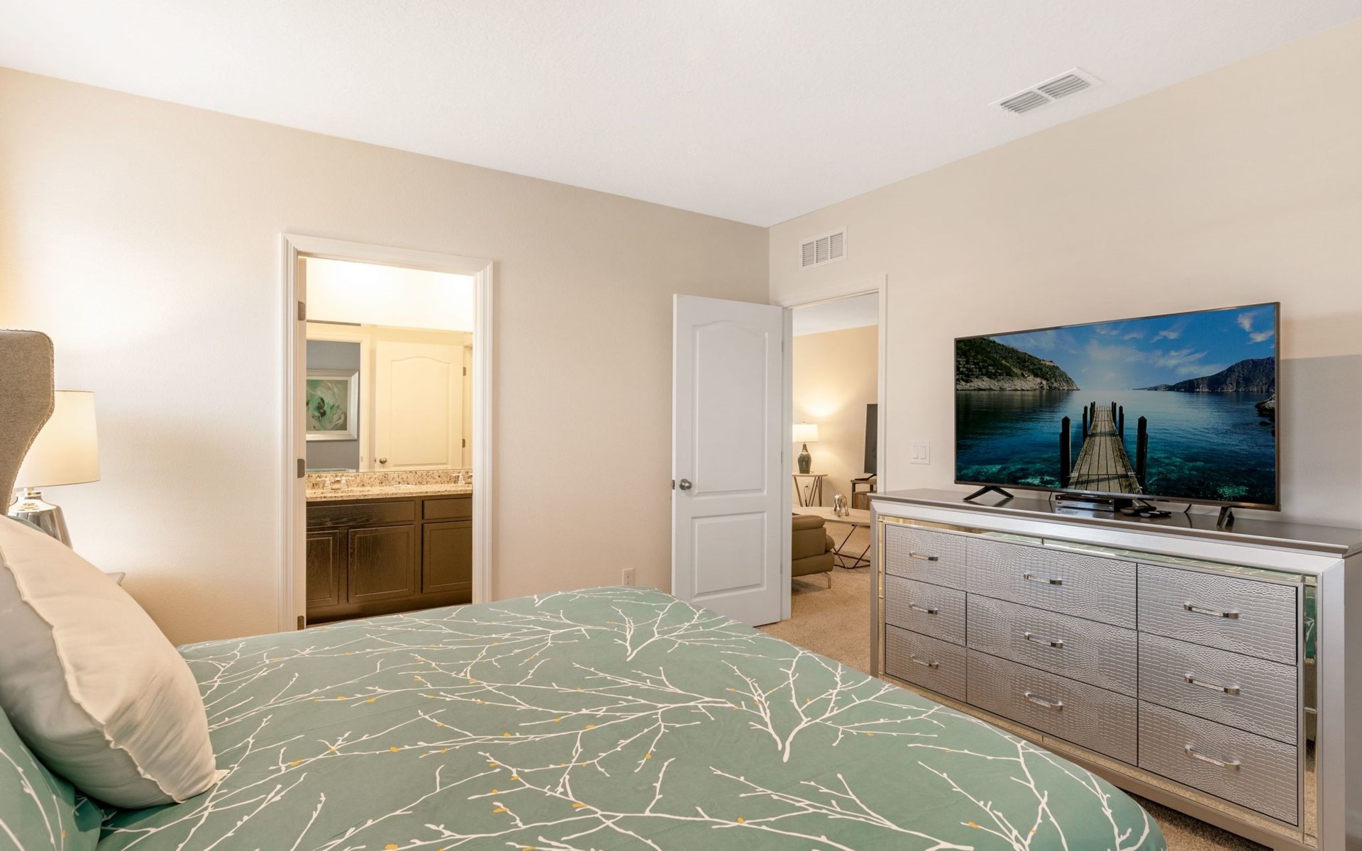 Das Solterra Resort ist eine außergewöhnliche Wahl für alle, die einen unvergesslichen Urlaub in einem Haus verbringen möchten, das sowohl Luxus als auch Komfort bietet. Der atemberaubende Blick auf den See, der sonnige Privatpool, das entspannende Spa und der Zugang zu den Annehmlichkeiten des Resorts wie Clubhaus, Fitnessstudio, Tennisplätze und vieles mehr versprechen einen entspannten und unterhaltsamen Aufenthalt. Diese prächtige Villa ist mehr als nur eine Unterkunft; sie ist der Schlüssel zu einem perfekten Urlaubserlebnis.