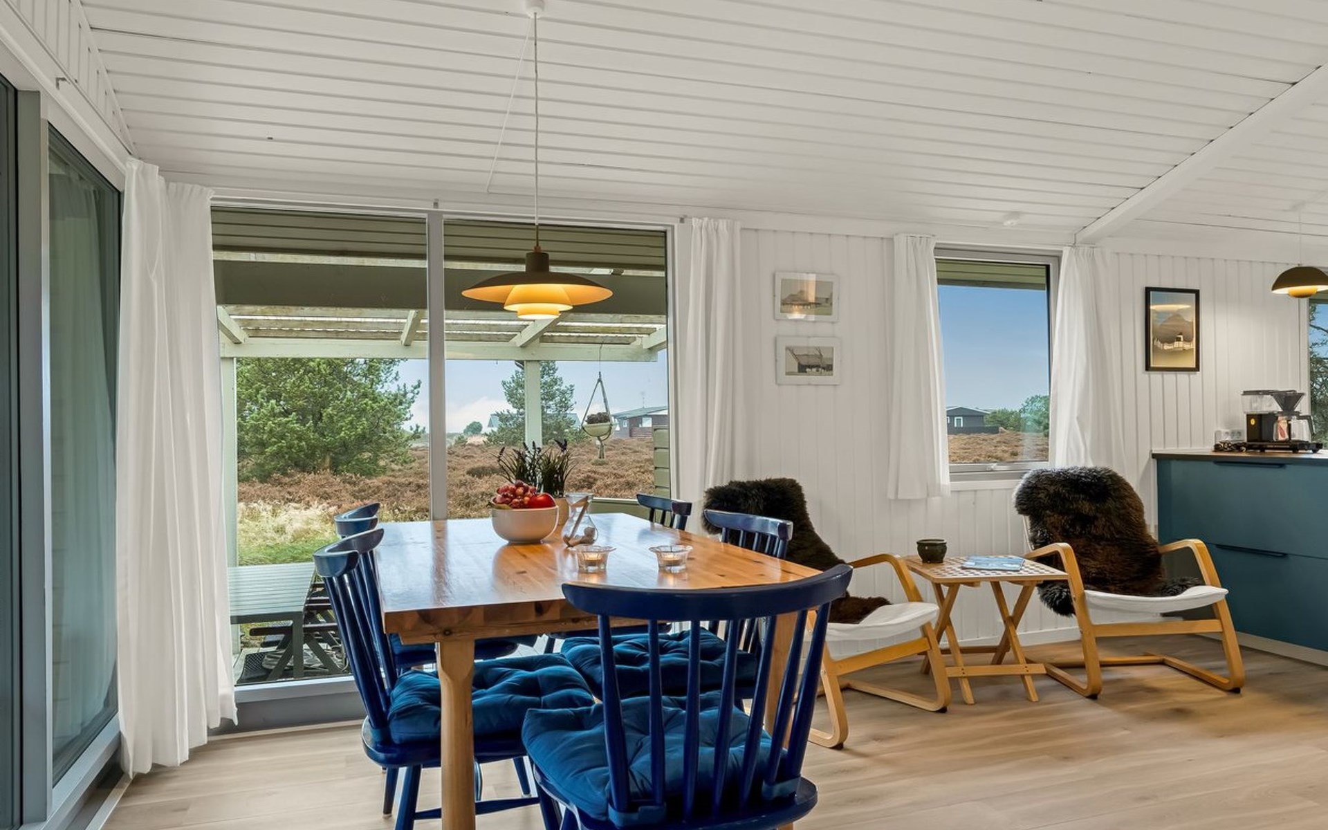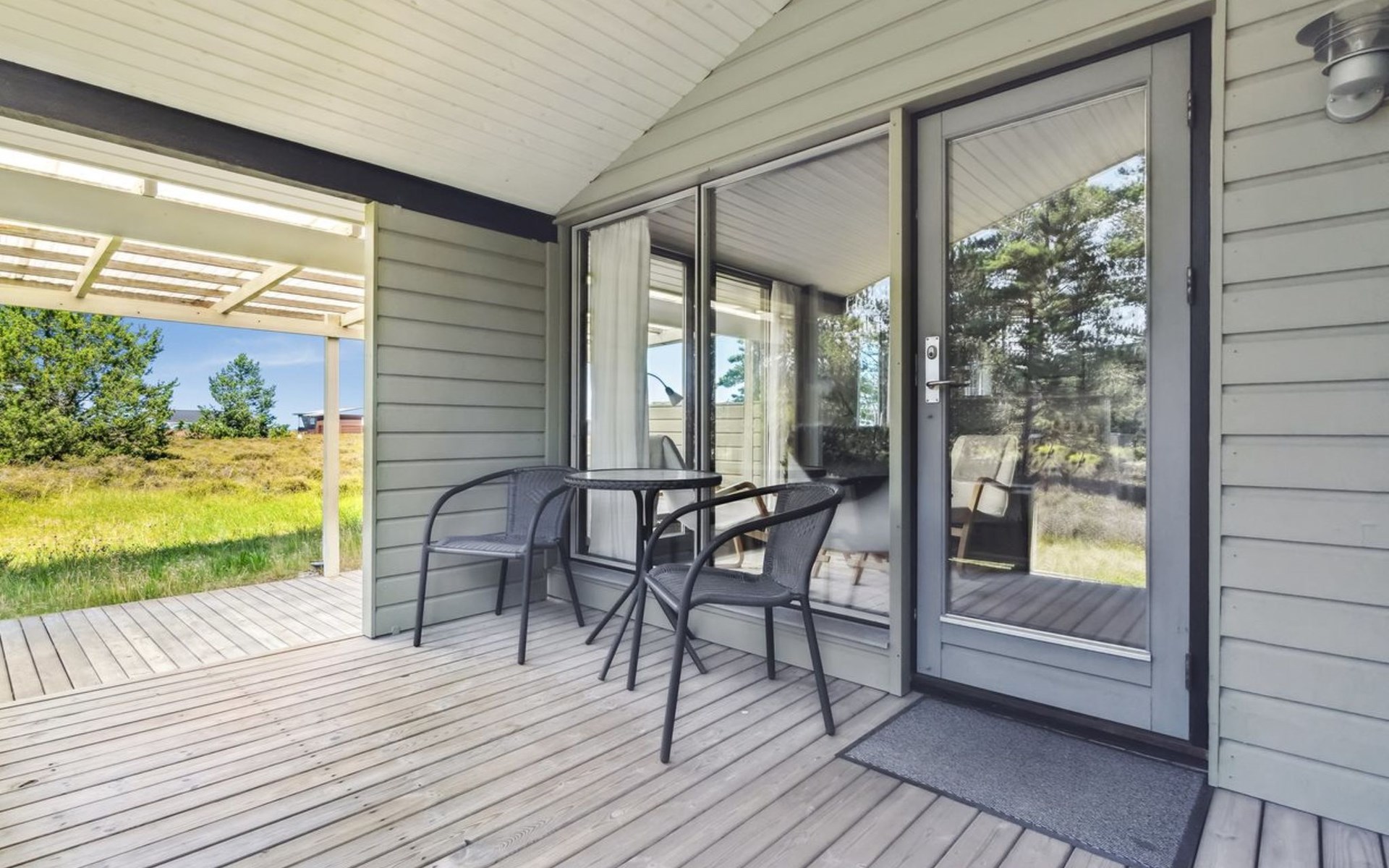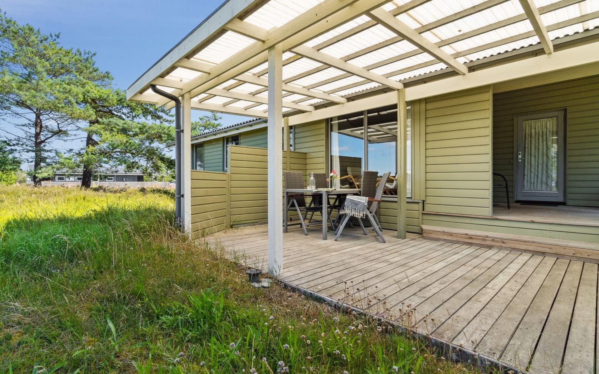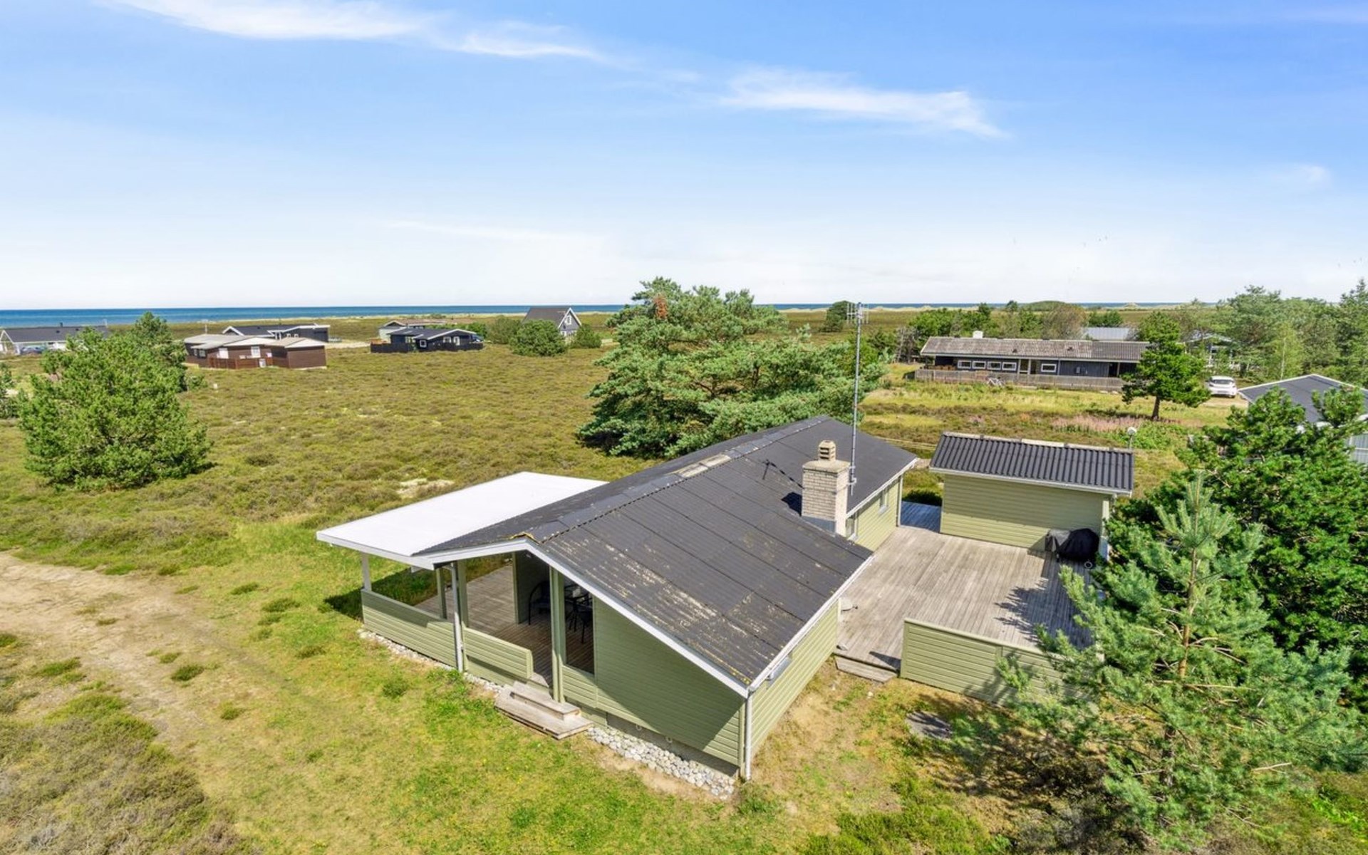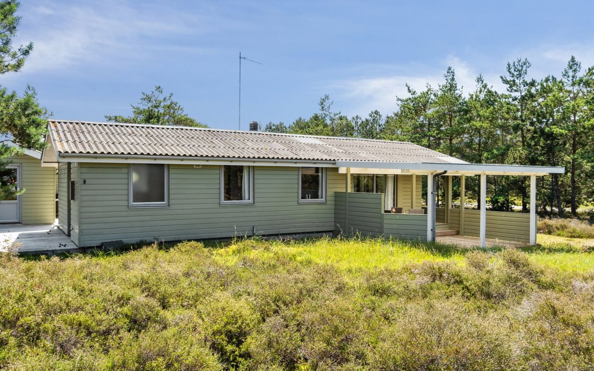 Einfamilienhaus, Baujahr 1974. 250 m vom Meer. Zur Alleinbenutzung: naturbelassenes Grundstück 1'276 m2. Grill, Parkplatz beim Haus. E-Ladestation. Lebensmittelgeschäft 1 km. Golfplatz 4 km. Der Besitzer akzeptiert keine Jugendgruppen.