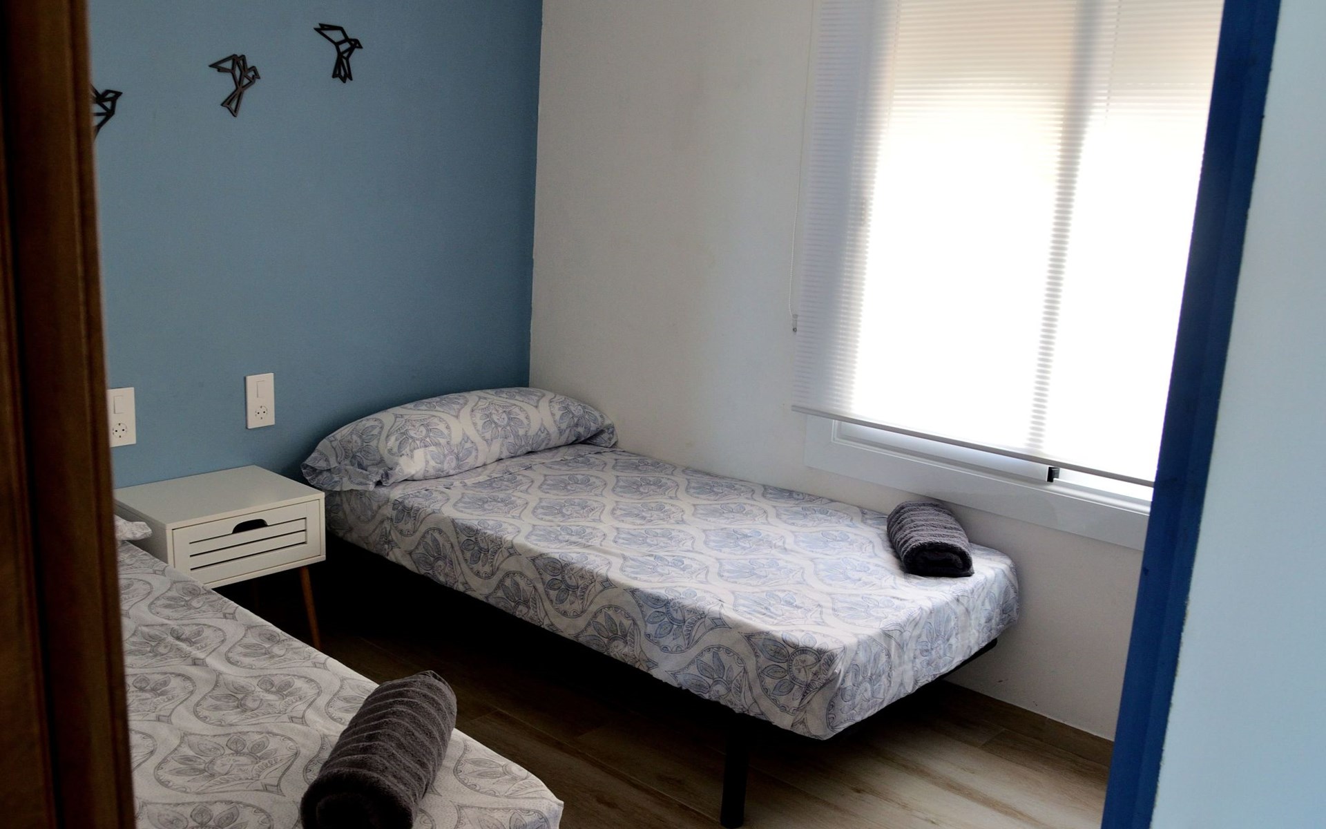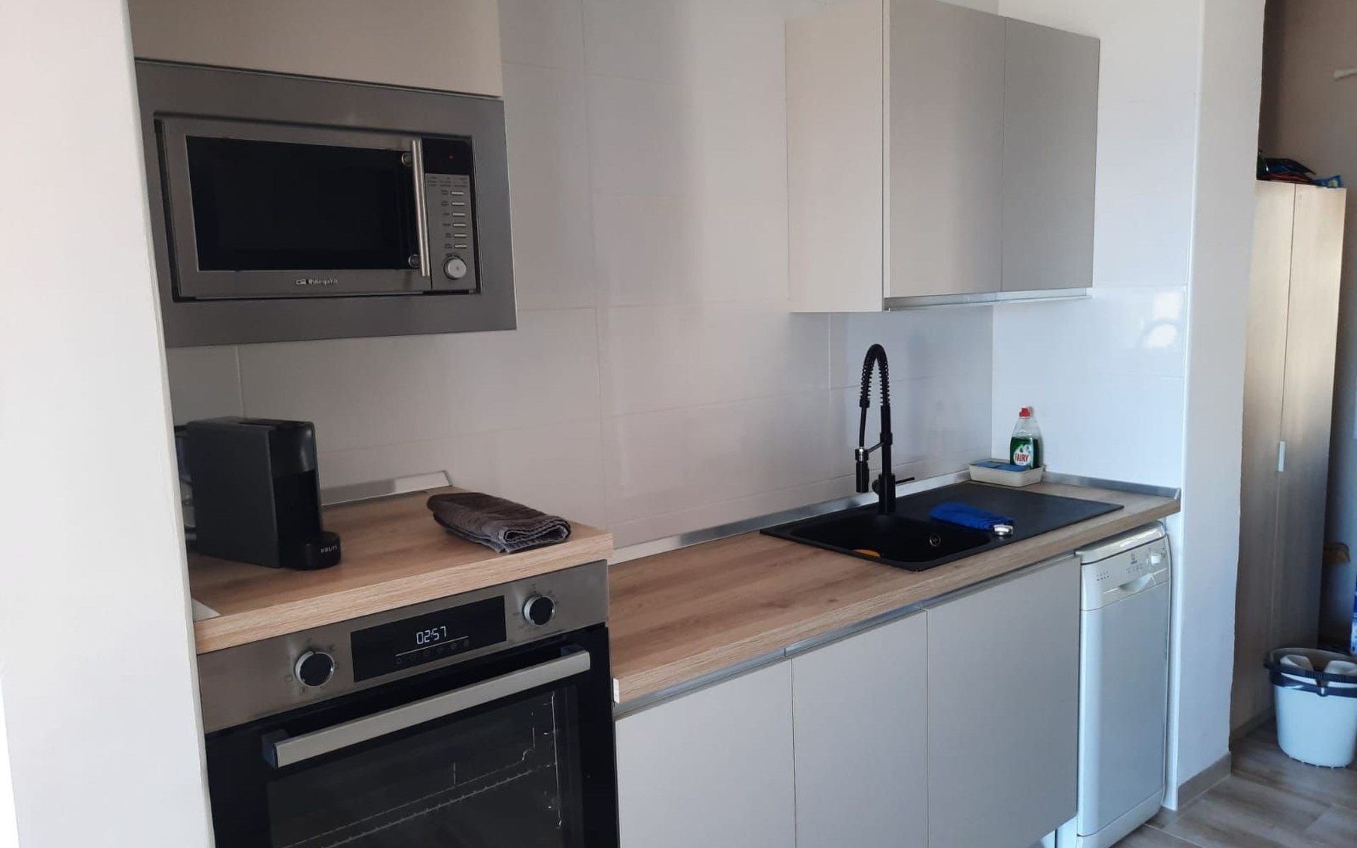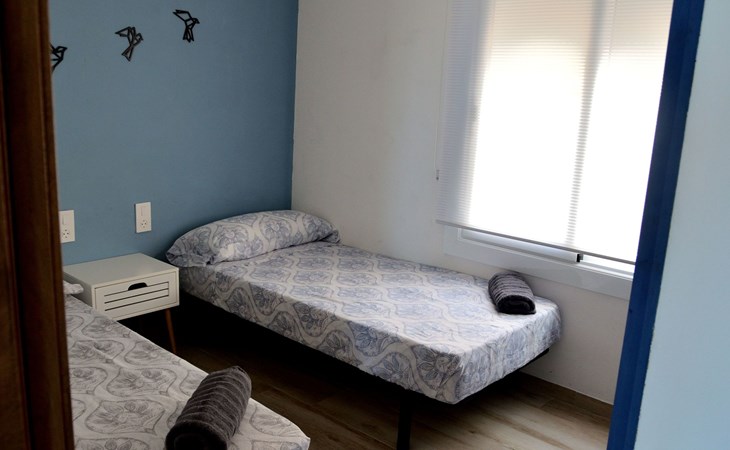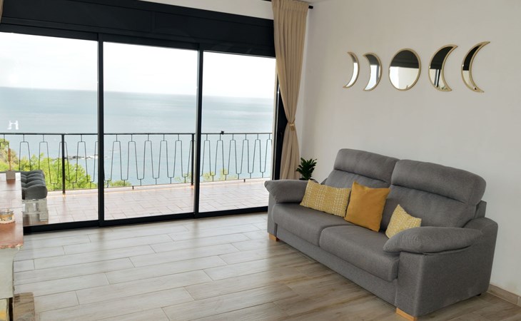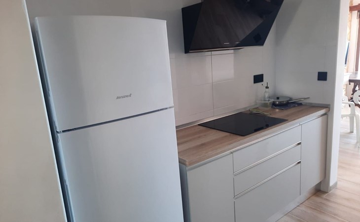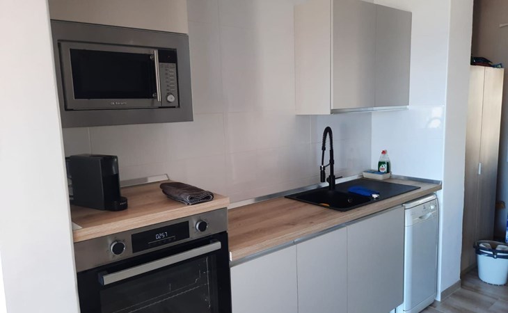 es besteht aus einer großen terrasse von 16 M2 plus 65 M2 der unterkunft verteilt in 2 schlafzimmer, eines mit doppelbett von 1,50 mit flachbildfernseher und deckenventilator, ein weiteres schlafzimmer mit 2 einzelbetten von 90 cm und deckenventilator, wohnzimmer mit einem schlafsofa, flachbildfernseher, voll ausgestattete küche mit backofen, mikrowelle, geschirrspüler, nespresso-kaffeemaschine, elektrischer kocher, toaster, induktionskochfeld, kühlschrank mit gefrierfach mit einer angrenzenden galerie mit waschmaschine. Bad mit WC, extra flacher Duschwanne und Regendusche, Bettwäsche und Handtücher inklusive.