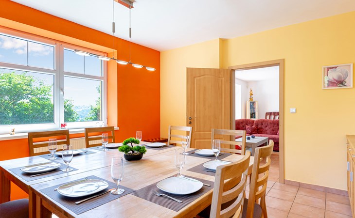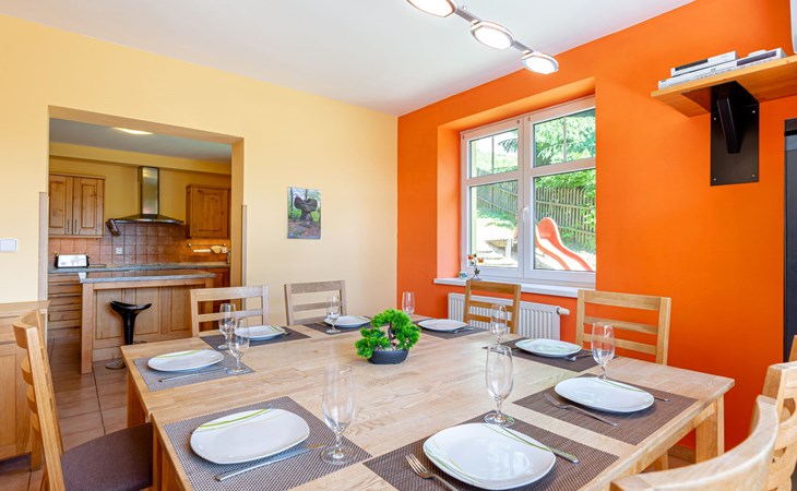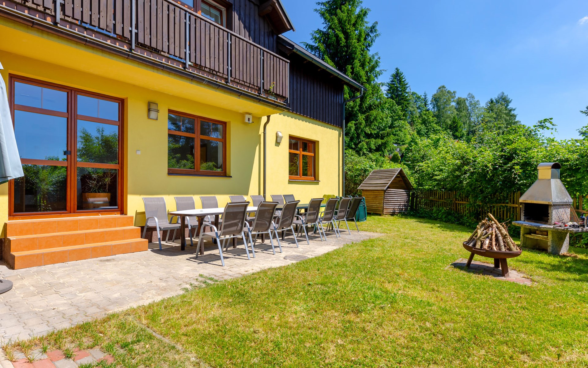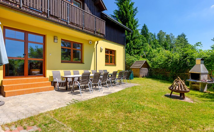 Albrechtice 5 km von Tanvald: Modernes, freistehendes, komfortables Haus "Albrechtice", auf 2 Stockwerken, Baujahr 2007. Am Ortsrand, 200 m vom Skigebiet. Zur Alleinbenutzung: Grundstück 1'800 m2 (eingezäunt), Hallenbad beheizt (saisonale Verfügbarkeit: 01.Jan. - 31.Dez.). Sprudelbad, Gartenmöbel, Grill, Kinderspielplatz. Im Hause: Sauna, Skiraum, Waschmaschine, Wäschetrockner. Zufahrt bis zum Haus. Parkplatz (für 4 Autos) beim Haus. Lebensmittelgeschäft 200 m, Supermarkt 5 km, Restaurant 250 m, Bushaltestelle 250 m, Bahnstation 1.2 km, Freibad 5 km, Hallenbad 12 km, Strandbad 12 km. Tennis 2 km, Bergeisenbahn, Skipisten, Skischule, Schlittelbahn 150 m, Langlaufloipe 200 m. Bekannte Skigebiete sind gut erreichbar: Tanvaldsky Spicak 200 m, Hrabetice, Bedrichov 10 km, Harrachov 18 km. Bitte beachten: Hauptstrasse 4 km vom Haus. Eisenbahnlinie 1.2 km vom Haus. Nacht Club/Disco 4 km vom Haus.