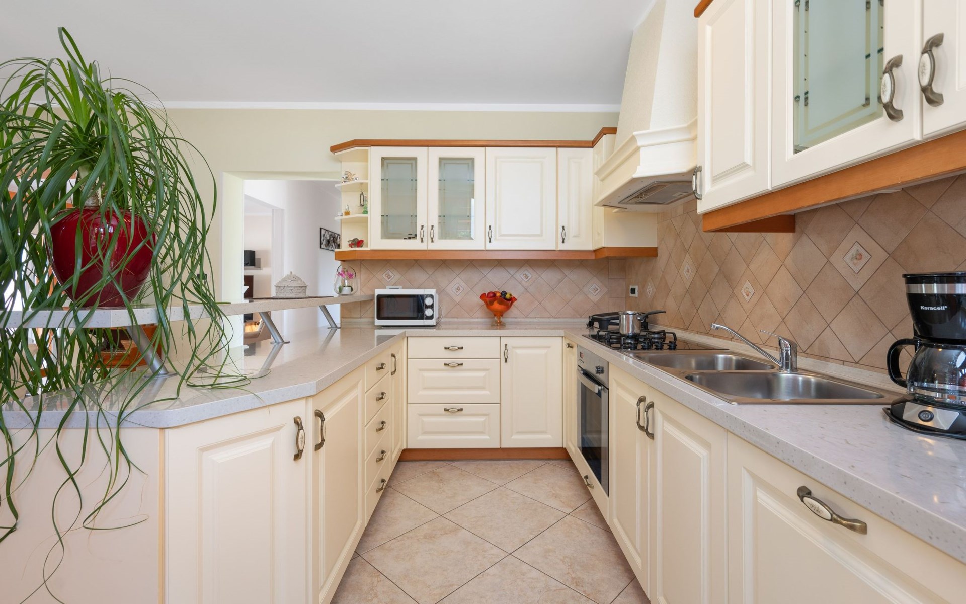 Mit einer gemütlichen und einladenden Atmosphäre verfügt das Haus über drei komfortable Schlafzimmer: zwei Schlafzimmer sind mit Doppelbetten und eines mit zwei Einzelbetten ausgestattet. Zusätzlich gibt es im Wohnzimmer ein bequemes Doppelschlafsofa, welches zusätzlichen 2 Gästen genügend Platz zum schlafen gibt. Es gibt ein gut ausgestattetes Badezimmer und ein zusätzliches Gäste-WC für den extra Komfort. Der charmante Wohn- und Essbereich ist ideal für gesellige Abende nach einem erlebnisreichen Tag, und die voll ausgestattete Küche macht die Zubereitung von Mahlzeiten zum Vergnügen.