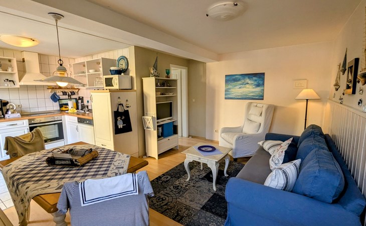 der Strandstraße geschützt. Die Wohnung liegt im Erdgeschoß und ist nach Südwesten ausgerichtet.