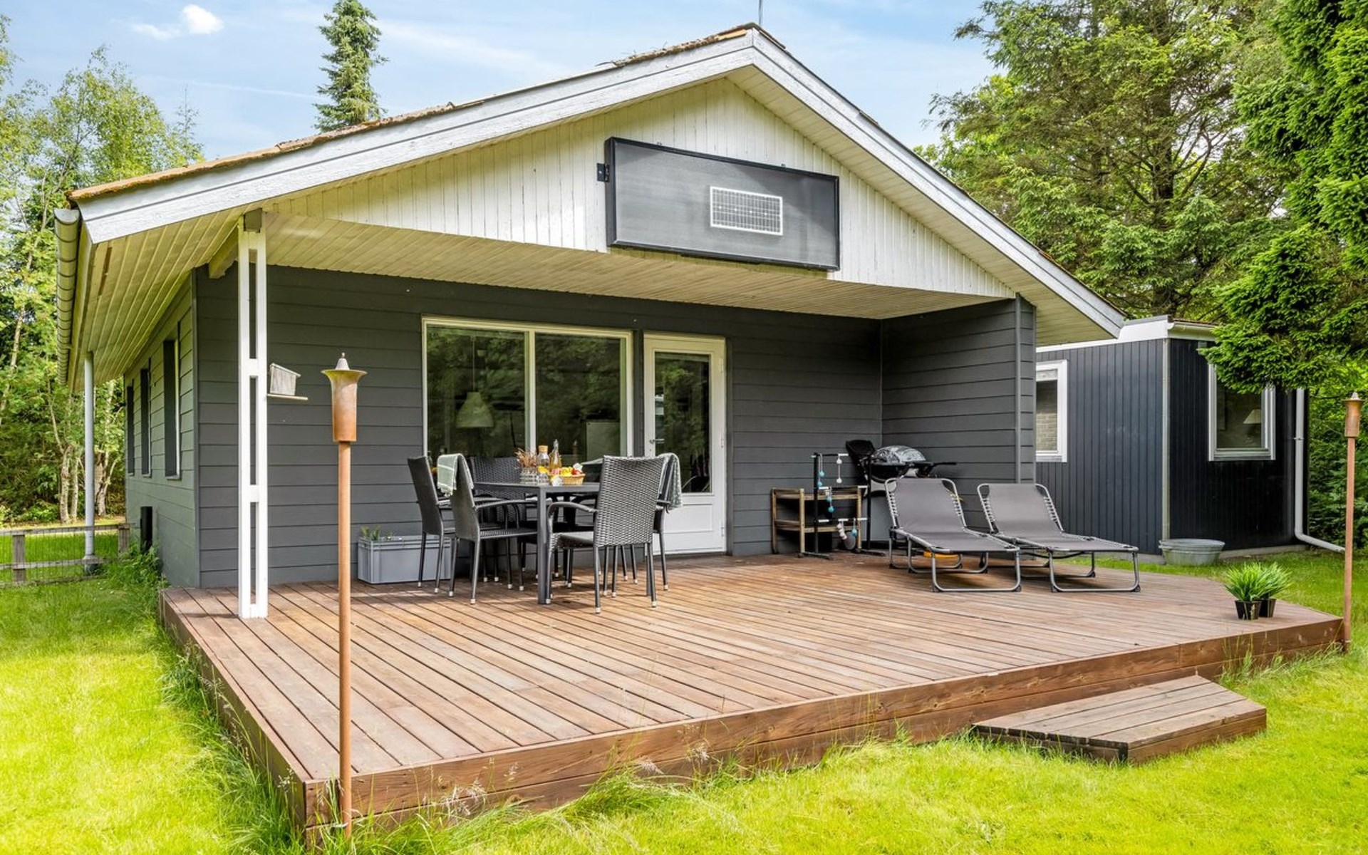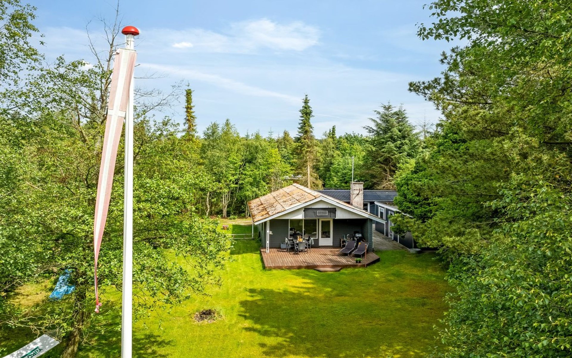 Einfamilienhaus, Baujahr 1974. 1 km vom Meer. Zur Mitbenutzung: Garten. Zur Alleinbenutzung: Grundstück 1'426 m2, gepflegter Garten (eingezäunt). Im Hause: Waschmaschine. Parkplatz beim Haus. Lebensmittelgeschäft 2.5 km. Der Besitzer akzeptiert keine Jugendgruppen.