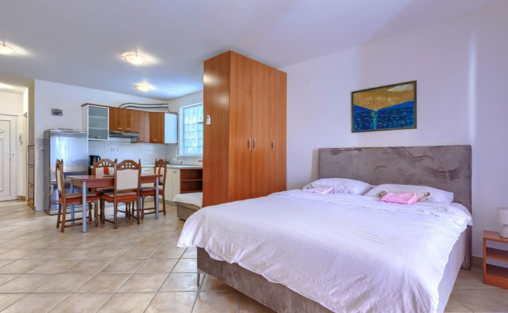 Štinjan: Mehrfamilienhaus "Vivoda". 4 km vom Zentrum von Pula, 600 m vom Meer, 600 m vom Strand. Im Hause: Internetzugang. Öffentliche Parkplätze auf der Strasse. Einkaufsgeschäft 1 km, Bushaltestelle 10 m, Kieselstrand, Felsstrand 600 m.