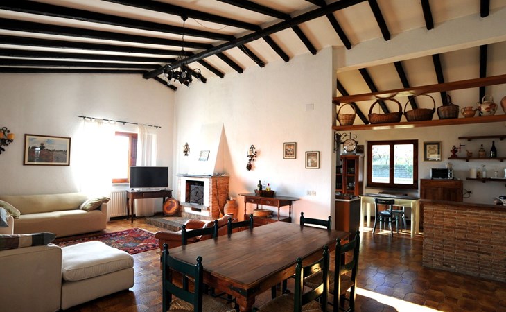 Die Villa besteht aus einer Hauptwohnung, mit 4 Schlafzimmern, 3 Doppelzimmern und 1 Dreibettzimmer, 2 Bädern mit Dusche, 1 großen, voll ausgestatteten Küche mit Gasherd, Elektroofen, Kühl-/Gefrierschrank, Geschirrspüler und Kochutensilien, Doppelwohnzimmer mit Sofas und Tischen, Panoramaterrasse mit Blick auf den Pool und die Hügel des Braccianosees; eine kleinere Wohnung, mit 1 Doppelzimmer, 1 Dreibettzimmer, 1 Bad mit Dusche.
