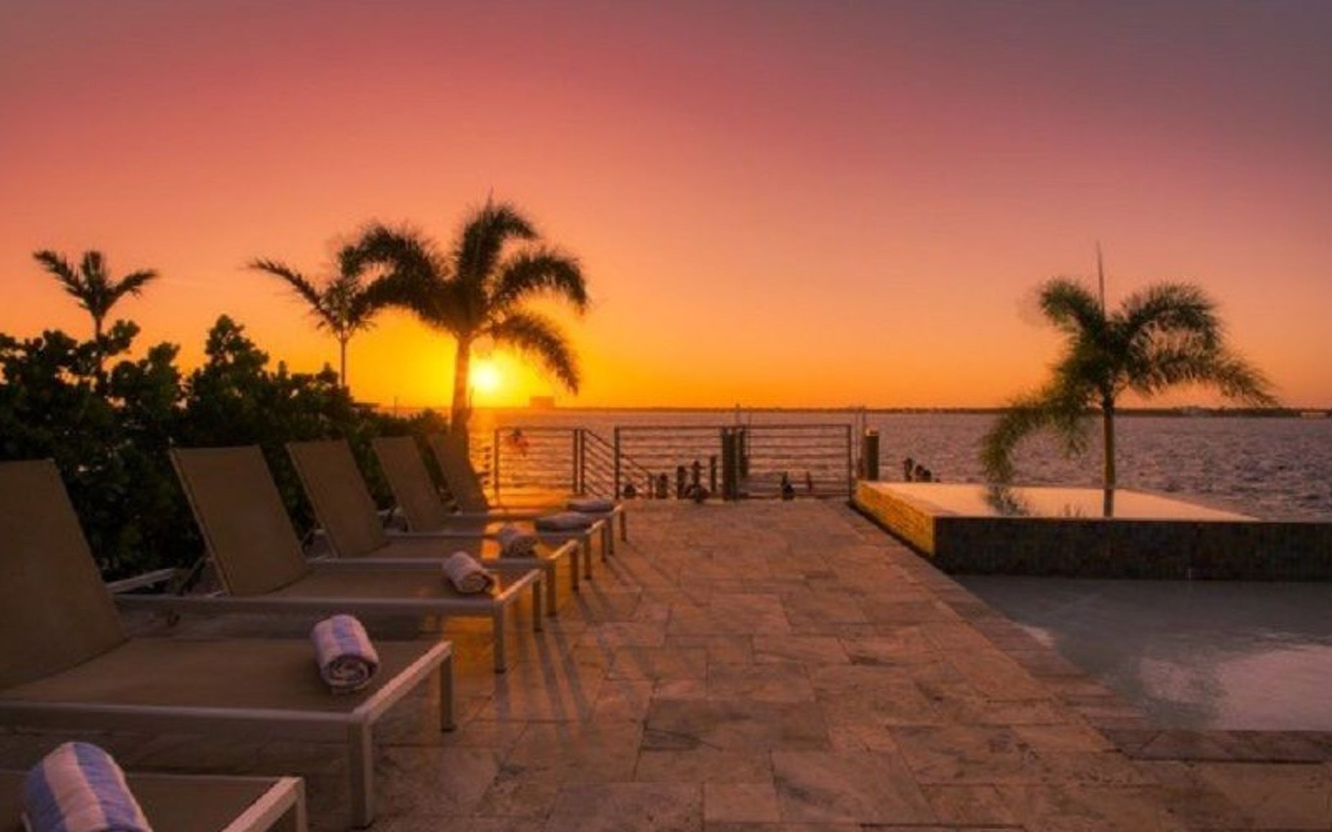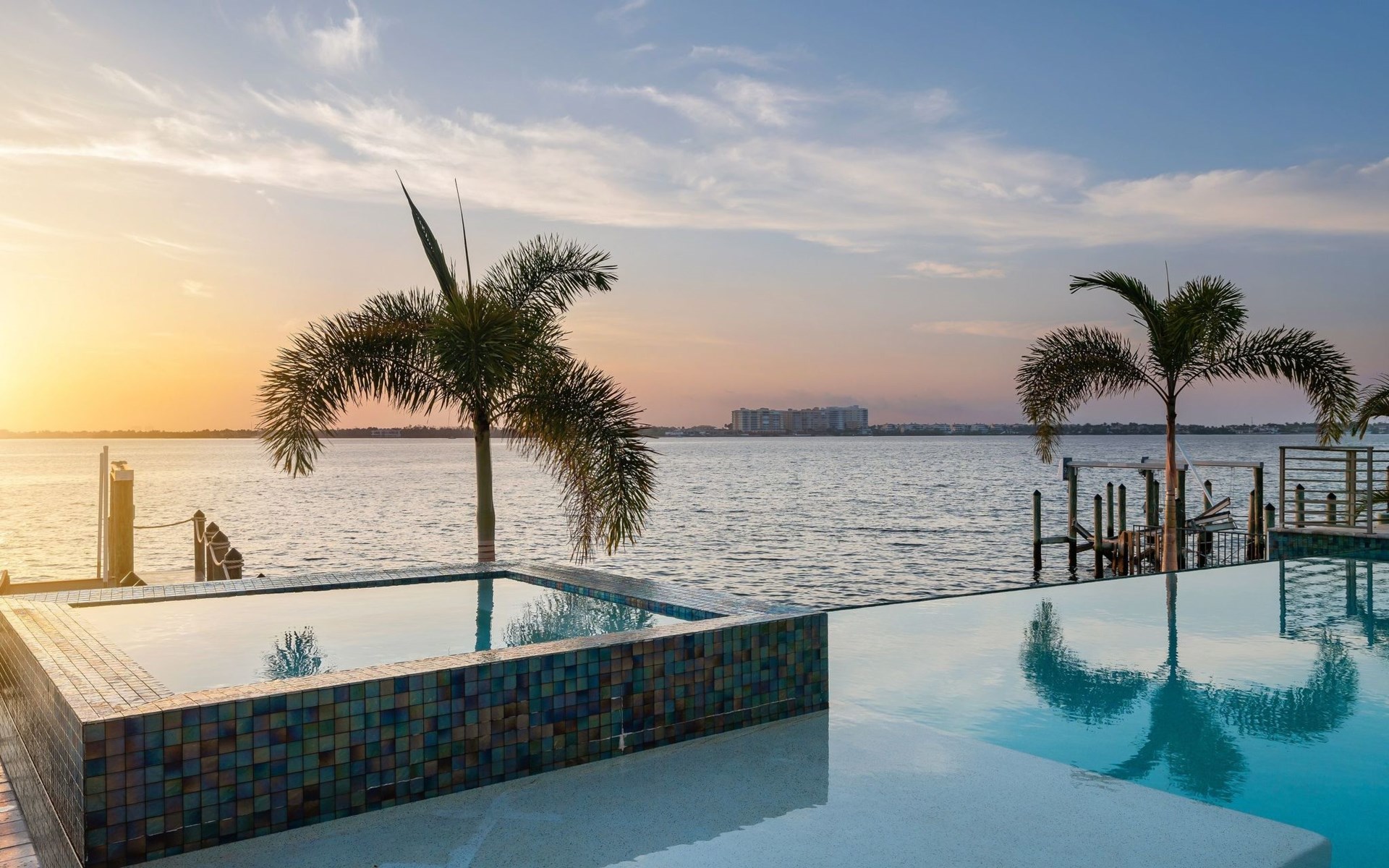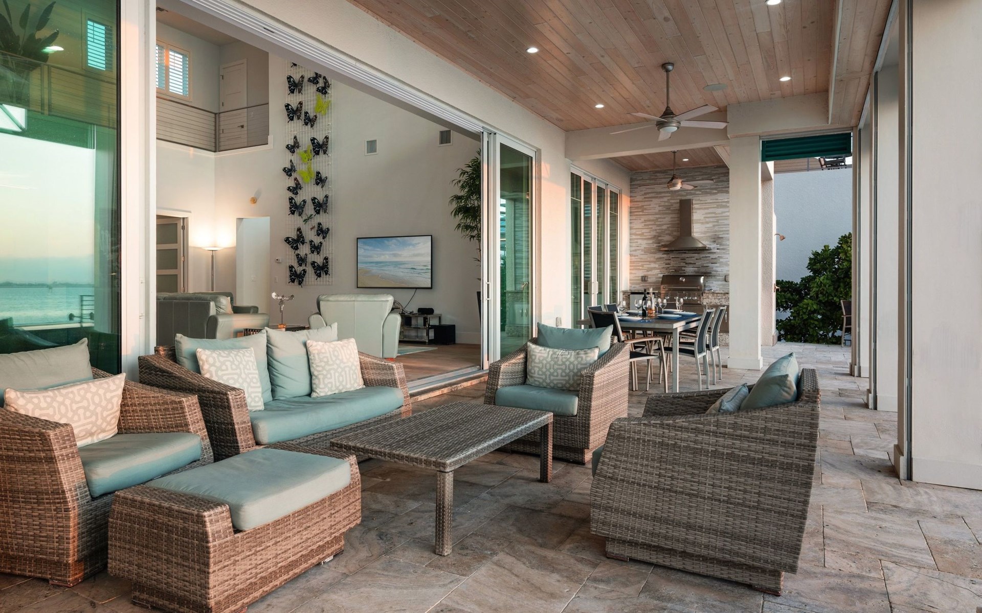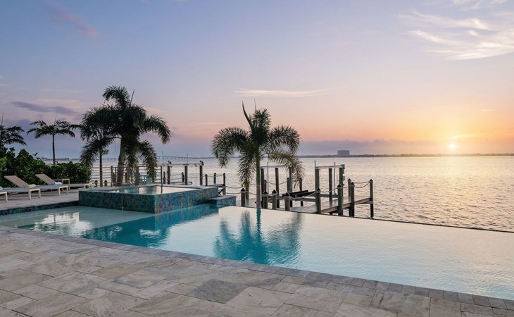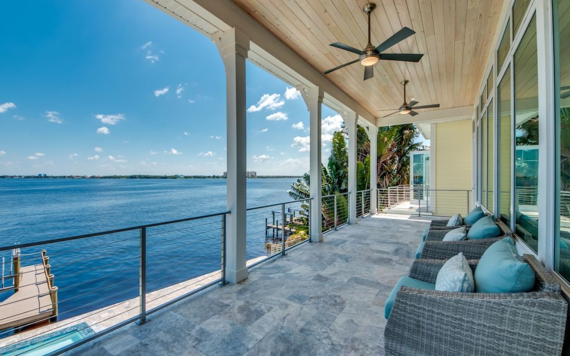 Von überall hat man einem grossartigen Blick auf den Aussenbereich mit Pool, sowie auf den dahinter liegenden Kanal.