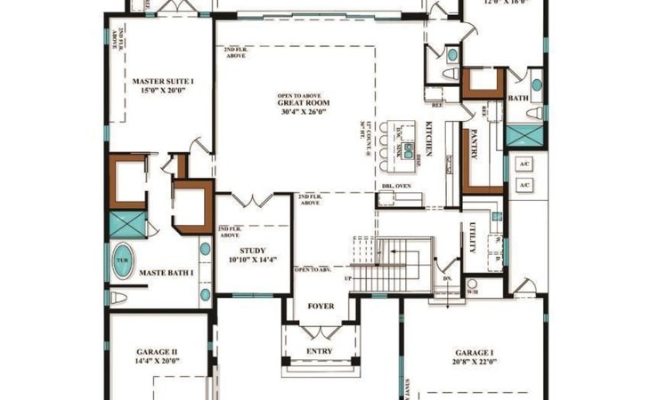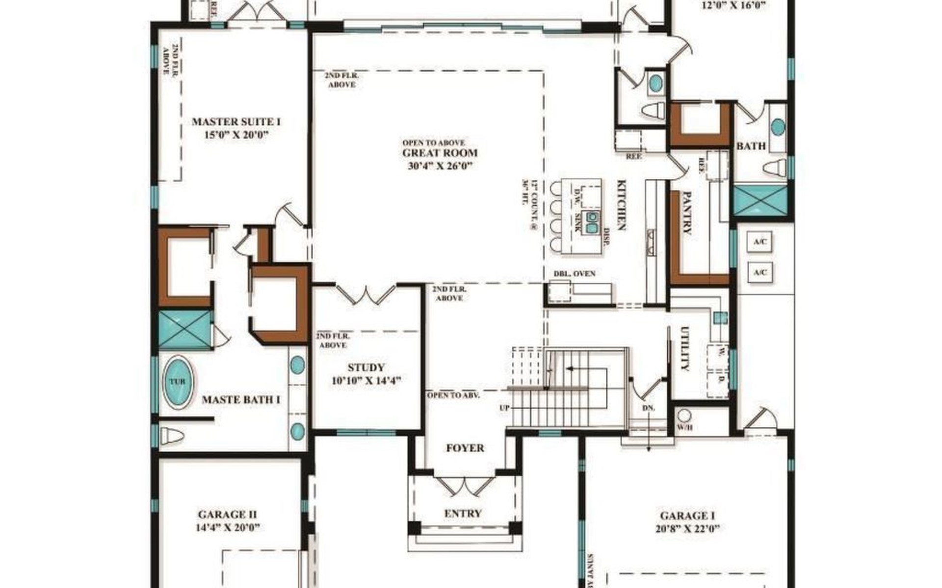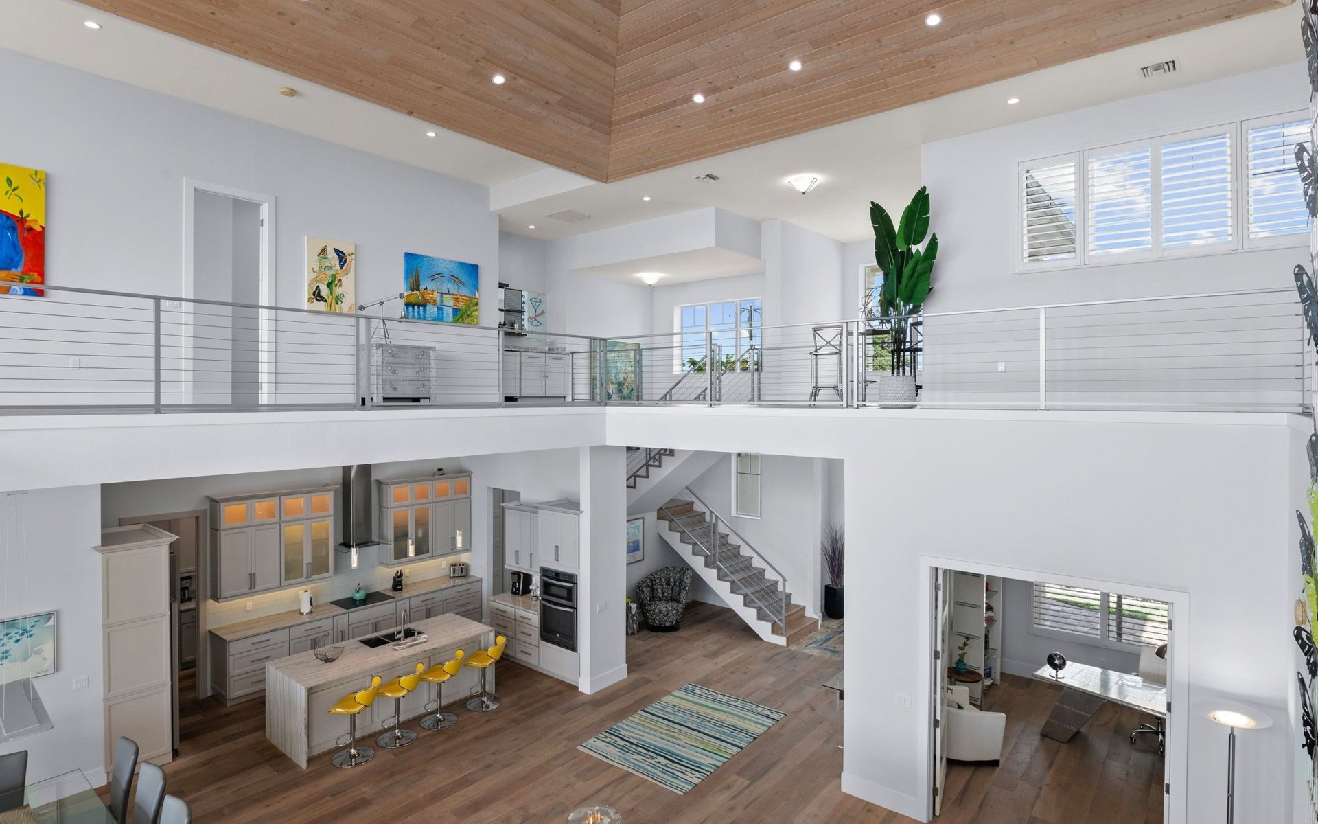 Erdgeschoss: das EG beinhaltet 2 Schlafzimmer mit Ensuite Bädern und Zugang zur Terrasse (Riverview), einen geräumigen und nach oben offenen Wohnbereich mit Küche, Essplatz, zusätzlicher Speisekammer, Büro und Hauswirtschaftsraum.