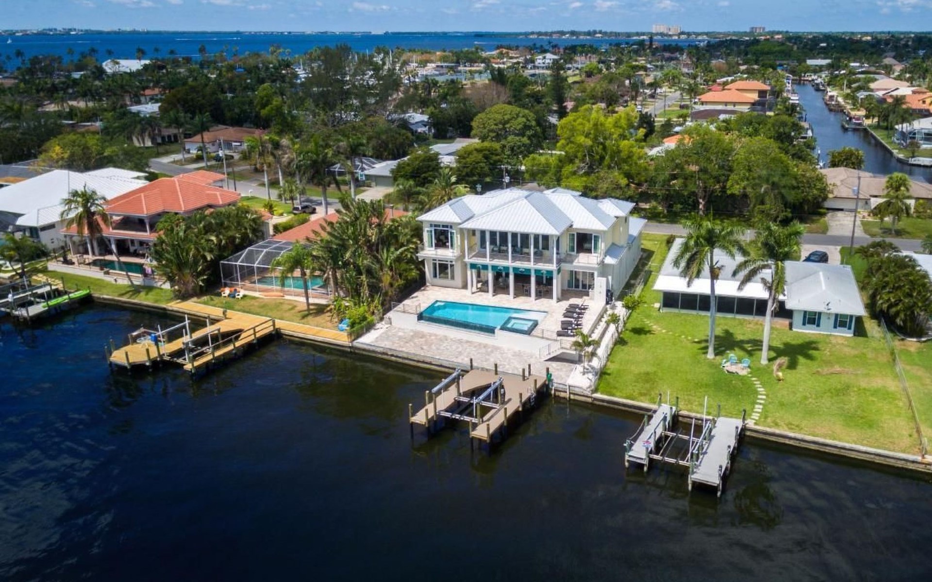 Fast 470 Quadratmeter, 8 Schlafplätze, wunderschöner Pool und Spa, direkter Zugang zum Fluss vom privaten Dock aus.