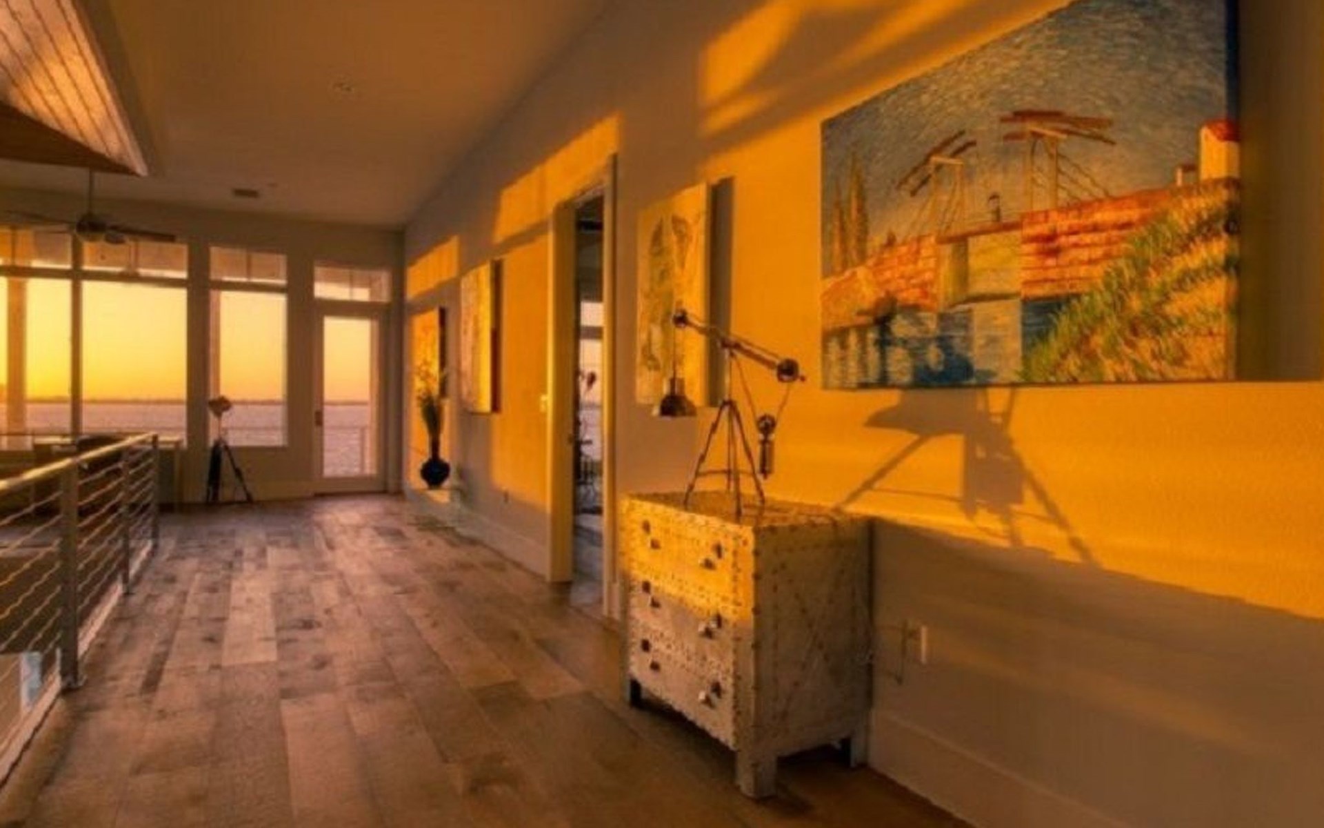Obergeschoss: 2 Schlafzimmer mit Ensuite Bädern und direktem Zugang zum Balkon (Riverview) sowie eine grosszügige Galerie mit einem Kühlschrank und Waschbecken.