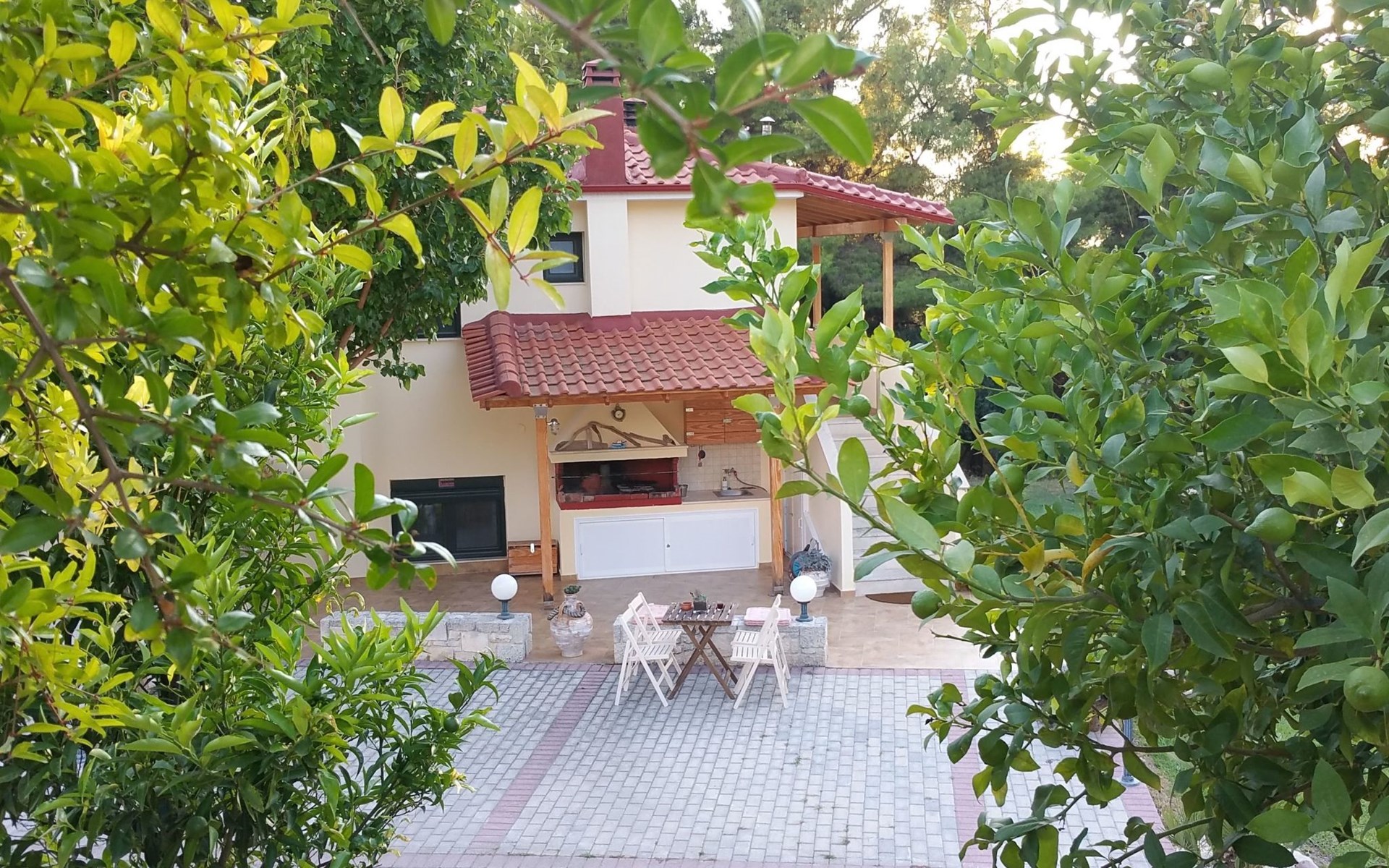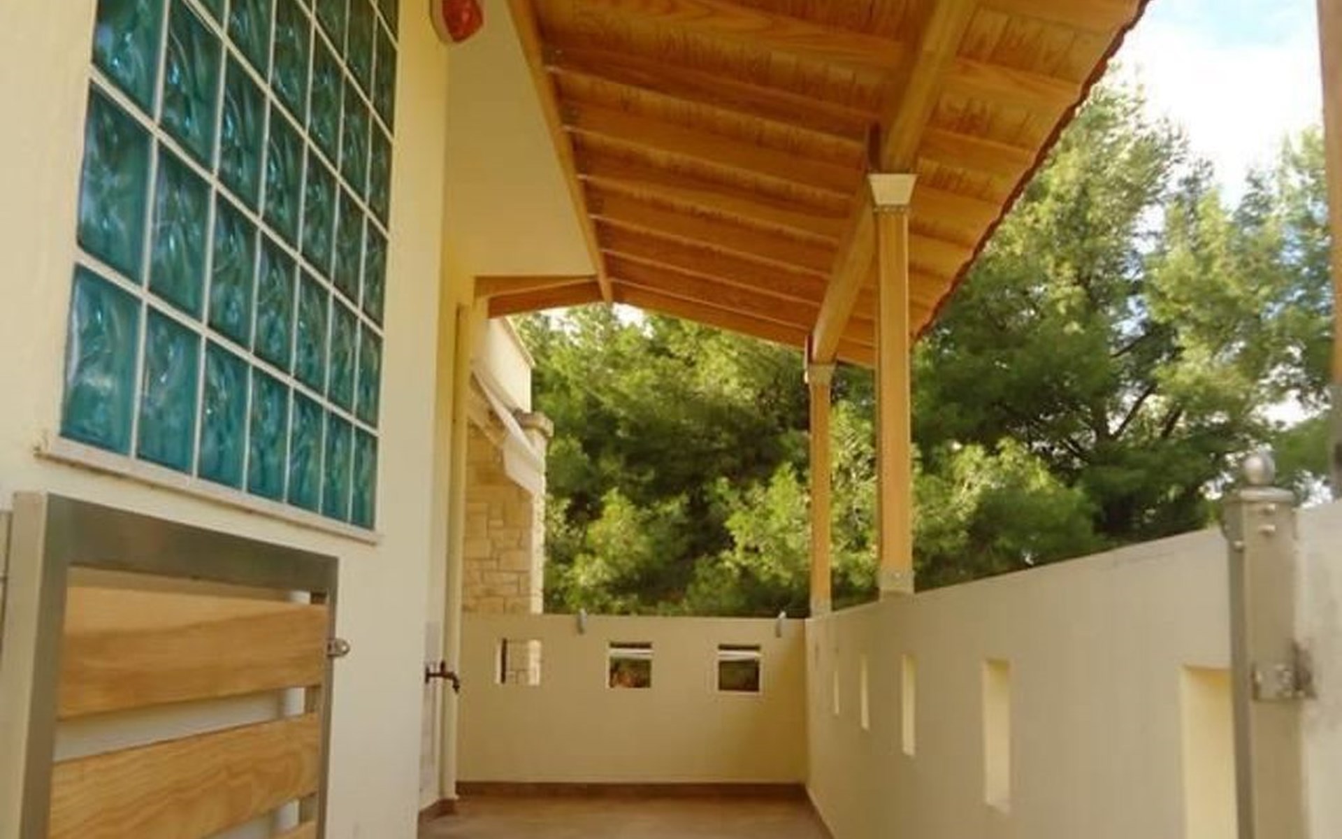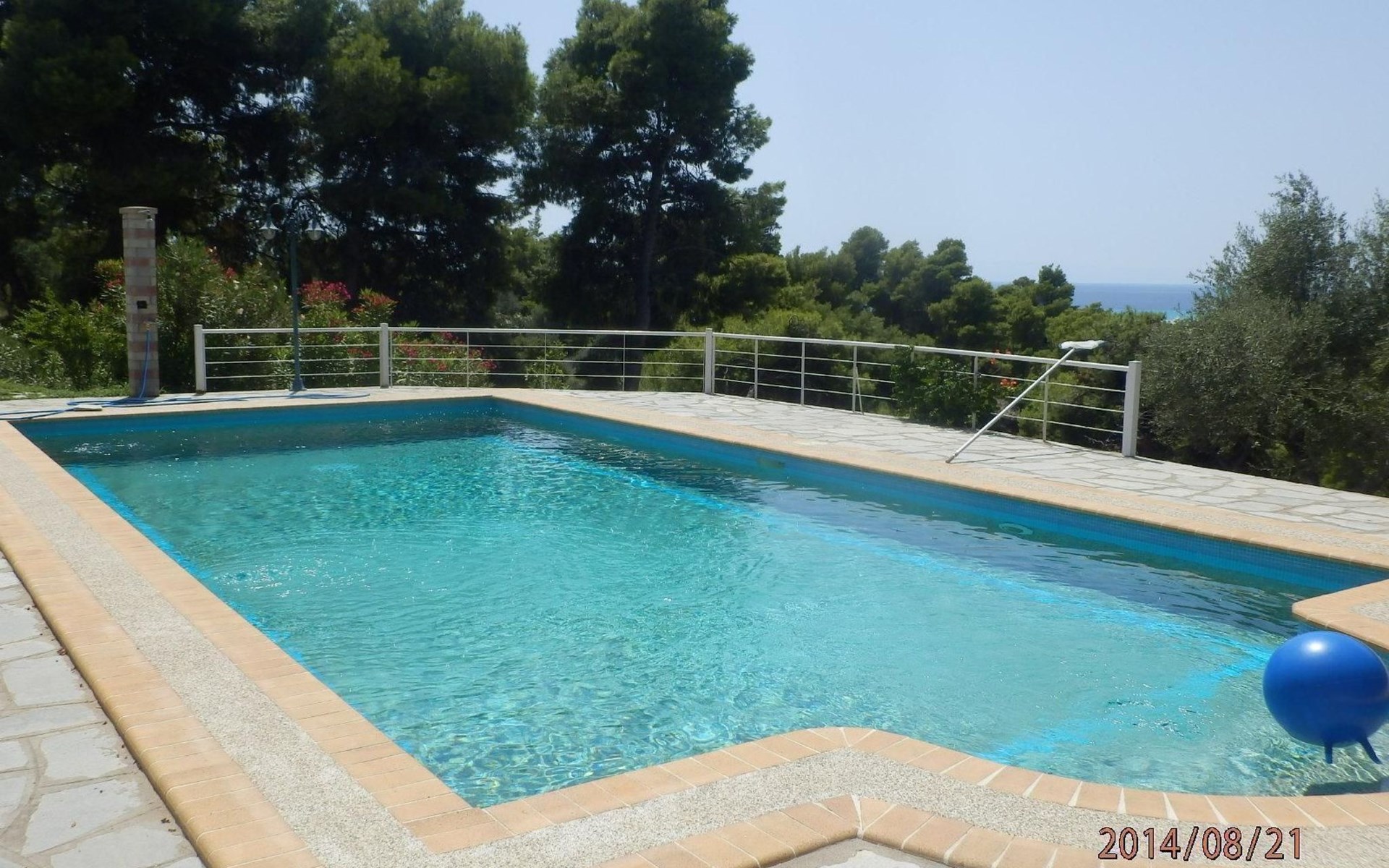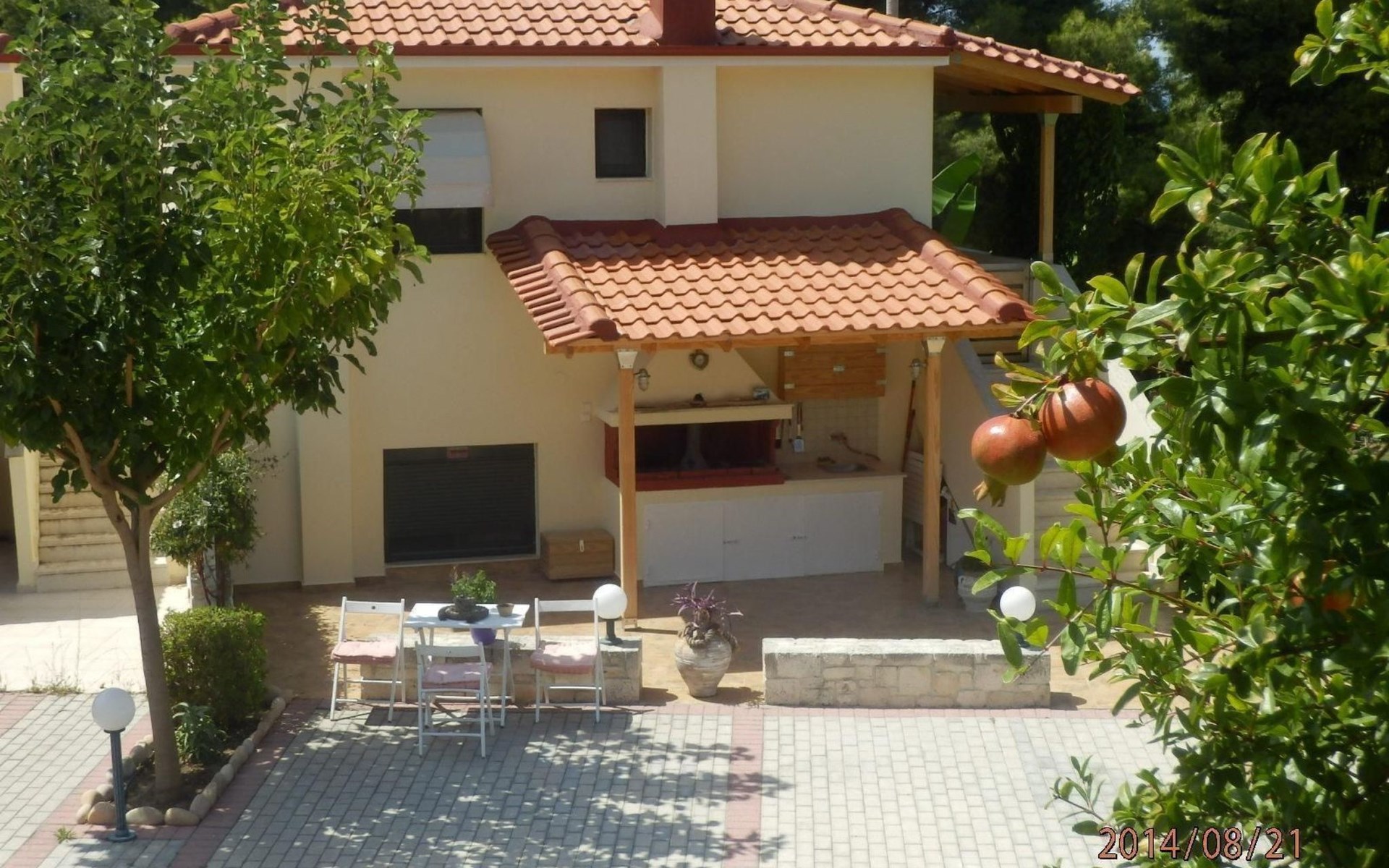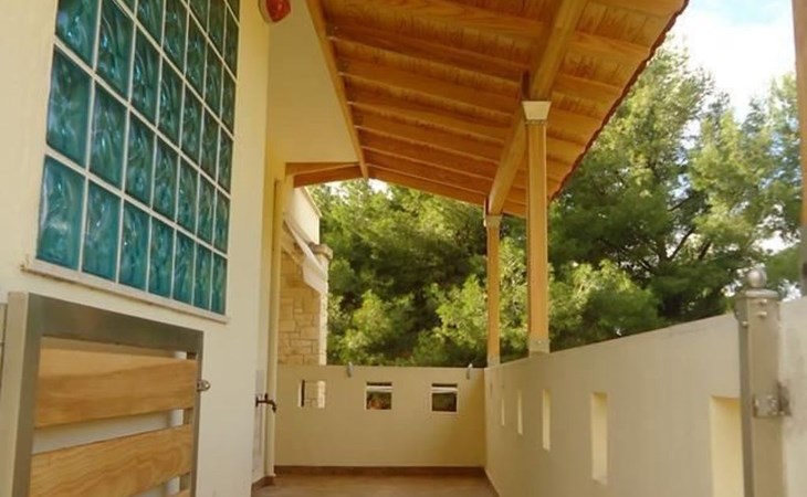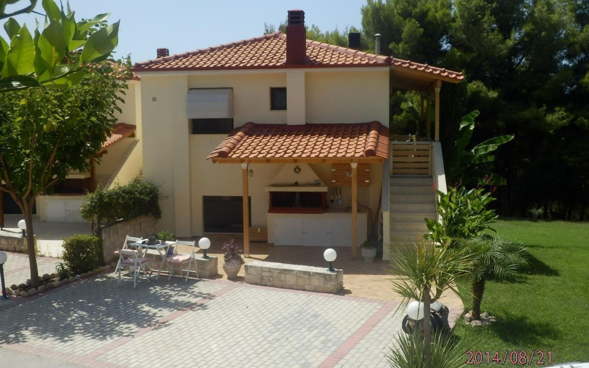 Das sehr geschmackvolle und komfortable Ferienhaus liegt am Ortsrand von Possidi am traumhaften Sandstrand. Es ist das Endhaus einer Häuserreihe und liegt direkt auf einem kleinen Hügel, umgeben von vielen Bäumen des angrenzenden Waldes und vielen Pflanzen. Das Haus ist 100m² groß und hat zwei Etagen. Auf der unteren befinden sich die drei Schlafzimmer, die im Sommer 2021 frisch renoviert wurden. Eins davon ist mit zwei Einzelbetten und je einem Kleiderschrank ausgestattet. In den anderen beiden Schlafzimmer steht je ein Doppelbett. Für alle Betten steht je ein Satz Wechselbettwäsche zur Verfügung. Auf dieser Etage finden Sie das Badezimmer mit WC, Waschbecken und einer modernen Dusch- und Dampfkabine. Handtücher sowie die Waschmaschine stehen hier zur Verfügung. Im Flur befindet sich eine kleine Minibar mit Kühlschrank, in welcher Sie Ihre Getränke unterbringen können. Die obere Etage des Hauses besteht aus dem Wohn- und Küchenbereich. Im großen Wohnraum steht ein gemütliches Ledersofa. An kühleren Abenden kann man hier entspannt vor dem Kamin sitzen. Die offene Küche ist modern ausgestattet mit E-Herd (Ceran-Platte), Backofen, Toaster, Wasserkocher und großem Kühlschrank mit Gefrierfach. Am runden Tisch können vier Personen sitzen. Auf dieser Etage befindet sich das zweite Badezimmer mit WC, Waschbecken und Dusche. Alle Fenster des Hauses sind mit Mückenschutzgitter versehen. Der große Balkon gibt dem Haus eine besondere Note, denn hier kann man beim Duft der Nadelbäume den Ausblick auf den Wald bis hin zum Meer genießen. Ein eigener Grill sowie Parkplätze für bis zu drei Autos stehen zur Verfügung. Der Pool der Wohnanlage kann mitbenutzt werden. Dieser wird mit 5 weiteren Ferienhäusern geteilt. Possidi befindet sich auf dem ersten Finger der Halbinsel Chalkidiki. Der Ort verfügt über herrliche Sandstrände, auf denen man die Sonnenuntergänge mit einem bezaubernden Blick auf den Götterberg Olymp genießen kann. Kleine Tavernen direkt am Strand, Pizzerien, Fast-Food-Läden, Bars sowie Souvenirshops und ein kleiner Supermarkt sind fußläufig in ca. 15 Minuten zu erreichen, der Strand in 10 Minuten. Wer mit dem Auto unterwegs ist findet überall Parkmöglichkeiten. Die Anreise vom nächsten Flughafen von Thessaloniki dauert mit dem Mietwagen ca. 1 Stunde und 15 Minuten.