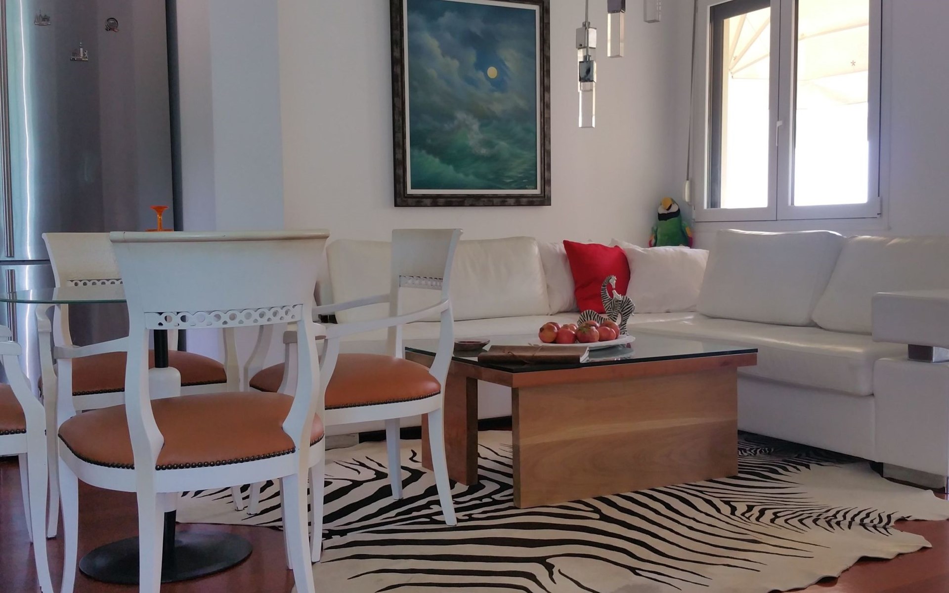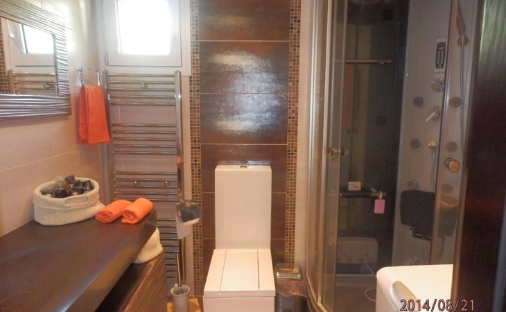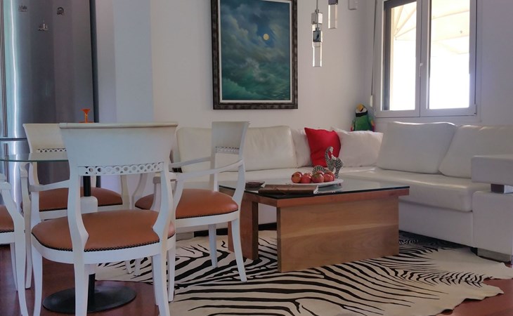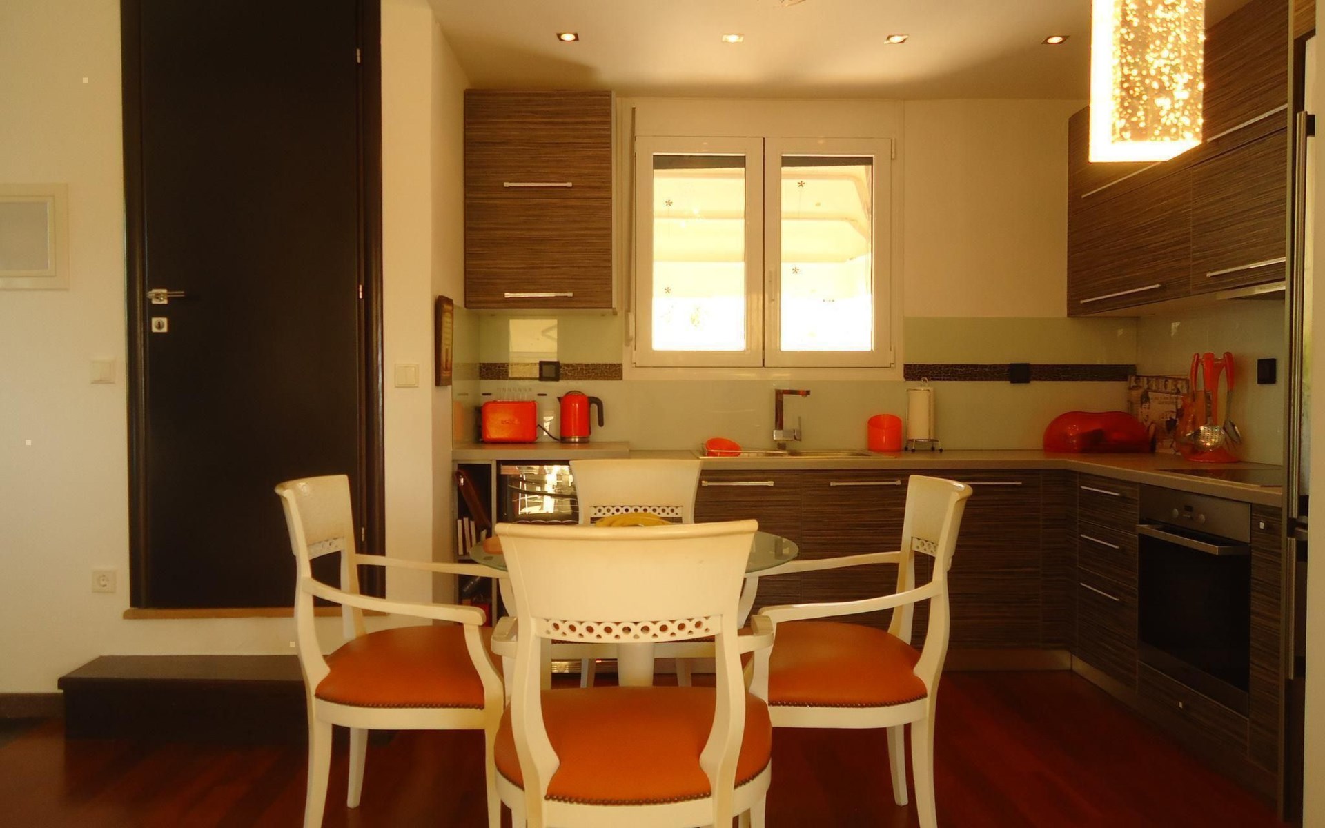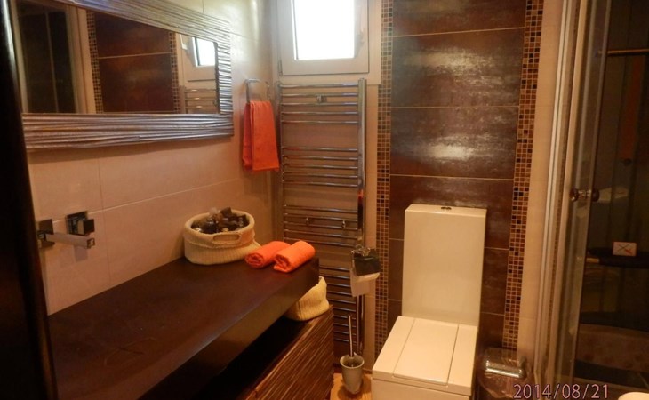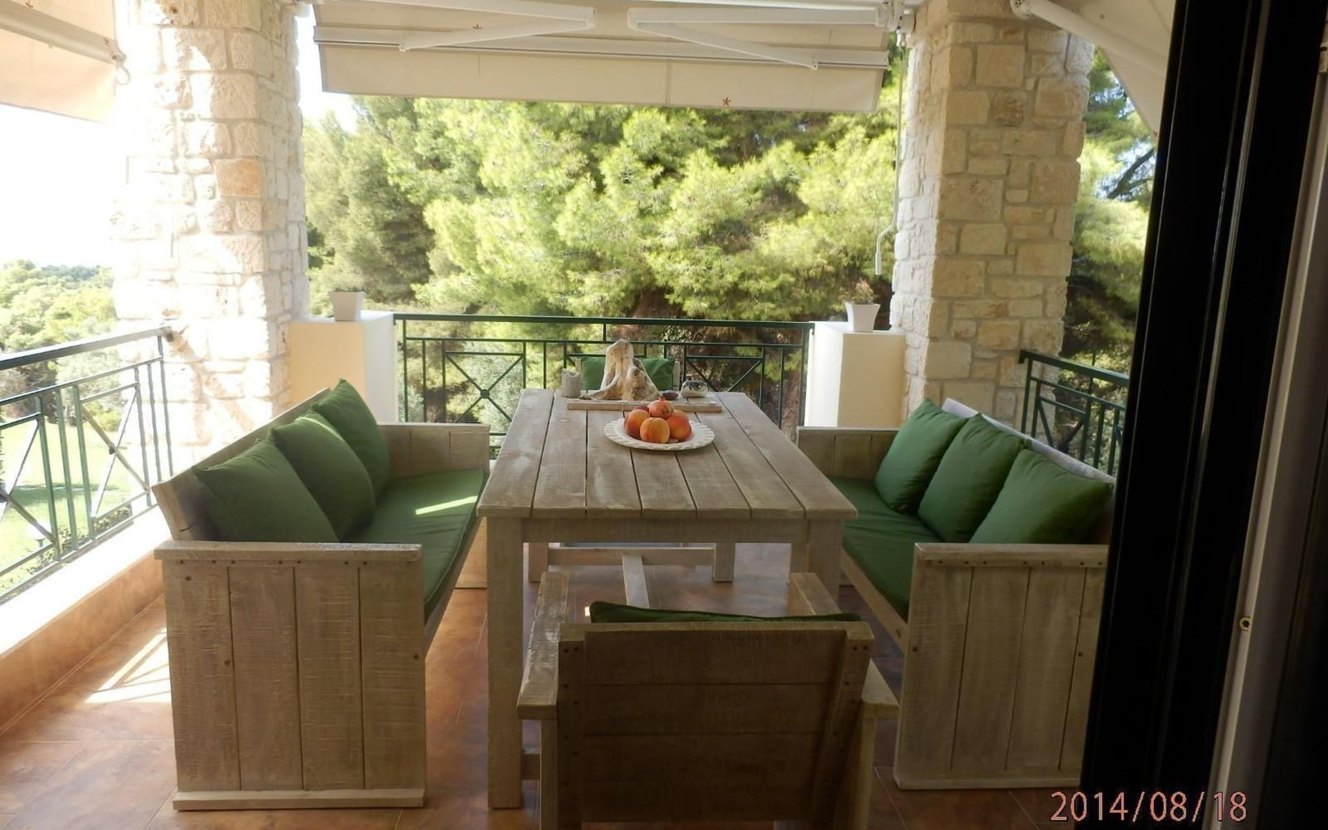 Das sehr geschmackvolle und komfortable Ferienhaus liegt am Ortsrand von Possidi am traumhaften Sandstrand. Es ist das Endhaus einer Häuserreihe und liegt direkt auf einem kleinen Hügel, umgeben von vielen Bäumen des angrenzenden Waldes und vielen Pflanzen. Das Haus ist 100m² groß und hat zwei Etagen. Auf der unteren befinden sich die drei Schlafzimmer, die im Sommer 2021 frisch renoviert wurden. Eins davon ist mit zwei Einzelbetten und je einem Kleiderschrank ausgestattet. In den anderen beiden Schlafzimmer steht je ein Doppelbett. Für alle Betten steht je ein Satz Wechselbettwäsche zur Verfügung. Auf dieser Etage finden Sie das Badezimmer mit WC, Waschbecken und einer modernen Dusch- und Dampfkabine. Handtücher sowie die Waschmaschine stehen hier zur Verfügung. Im Flur befindet sich eine kleine Minibar mit Kühlschrank, in welcher Sie Ihre Getränke unterbringen können. Die obere Etage des Hauses besteht aus dem Wohn- und Küchenbereich. Im großen Wohnraum steht ein gemütliches Ledersofa. An kühleren Abenden kann man hier entspannt vor dem Kamin sitzen. Die offene Küche ist modern ausgestattet mit E-Herd (Ceran-Platte), Backofen, Toaster, Wasserkocher und großem Kühlschrank mit Gefrierfach. Am runden Tisch können vier Personen sitzen. Auf dieser Etage befindet sich das zweite Badezimmer mit WC, Waschbecken und Dusche. Alle Fenster des Hauses sind mit Mückenschutzgitter versehen. Der große Balkon gibt dem Haus eine besondere Note, denn hier kann man beim Duft der Nadelbäume den Ausblick auf den Wald bis hin zum Meer genießen. Ein eigener Grill sowie Parkplätze für bis zu drei Autos stehen zur Verfügung. Der Pool der Wohnanlage kann mitbenutzt werden. Dieser wird mit 5 weiteren Ferienhäusern geteilt. Possidi befindet sich auf dem ersten Finger der Halbinsel Chalkidiki. Der Ort verfügt über herrliche Sandstrände, auf denen man die Sonnenuntergänge mit einem bezaubernden Blick auf den Götterberg Olymp genießen kann. Kleine Tavernen direkt am Strand, Pizzerien, Fast-Food-Läden, Bars sowie Souvenirshops und ein kleiner Supermarkt sind fußläufig in ca. 15 Minuten zu erreichen, der Strand in 10 Minuten. Wer mit dem Auto unterwegs ist findet überall Parkmöglichkeiten. Die Anreise vom nächsten Flughafen von Thessaloniki dauert mit dem Mietwagen ca. 1 Stunde und 15 Minuten.