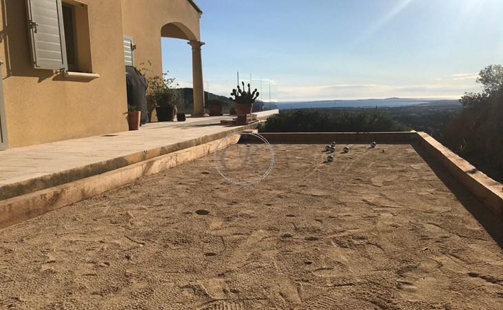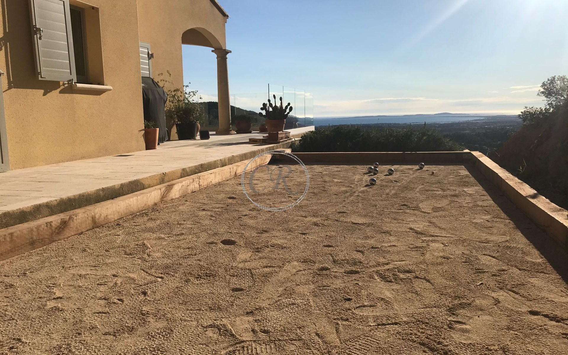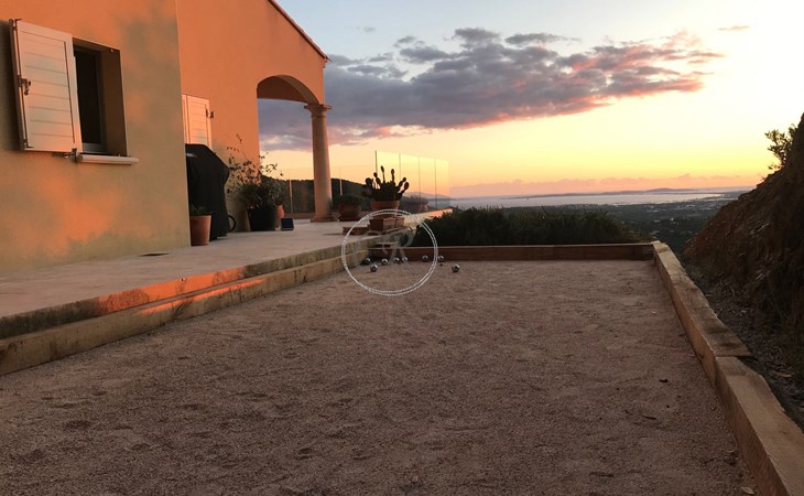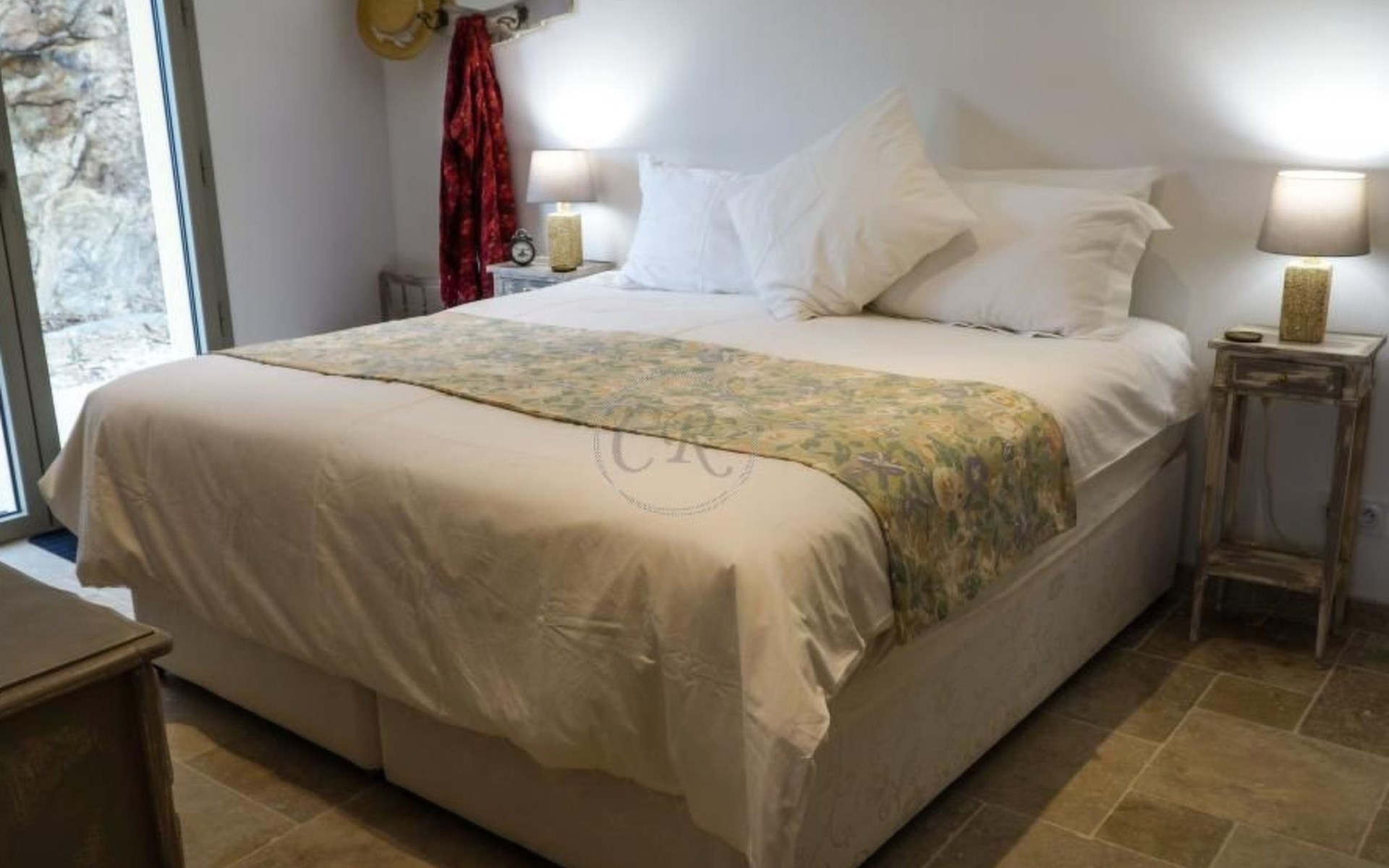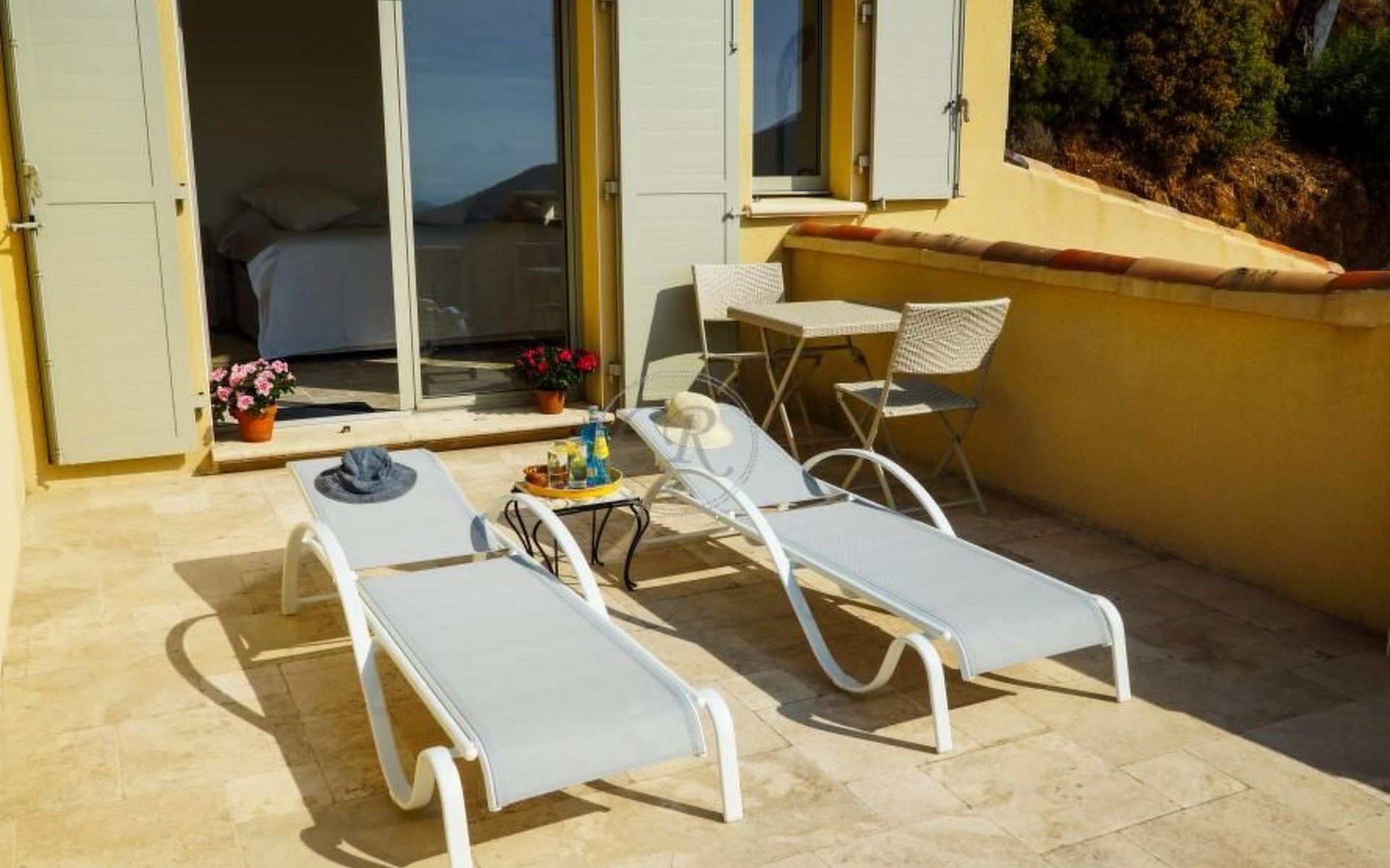Im Außenbereich können Sie die beiden Terrassen mit Blick auf das Meer und den Infinity-Pool genießen. Sie können auch von einem neuen Bouleplatz profitieren, der direkt neben der Terrasse angelegt wurde. Auf der ersten Ebene befinden sich das Wohnzimmer, die Küche und ein geräumiges Schlafzimmer, das sich auf die Terrasse erstreckt. Zur Essenszeit können Sie wahlweise drinnen oder im schattigen Teil der Außenterrasse essen. Ein zweites Schlafzimmer auf der gleichen Ebene bietet einen Blick auf den Obstgarten. Alle Zimmer haben ein eigenes Badezimmer. Auf der zweiten Ebene befindet sich eine Suite für 3 Personen mit Badezimmer und WC. Auf der dritten Ebene befindet sich das Hauptschlafzimmer mit einer großen Terrasse zwischen Himmel und Erde mit Panoramablick auf das Meer, einem Ankleidezimmer und einem Badezimmer mit Spa.