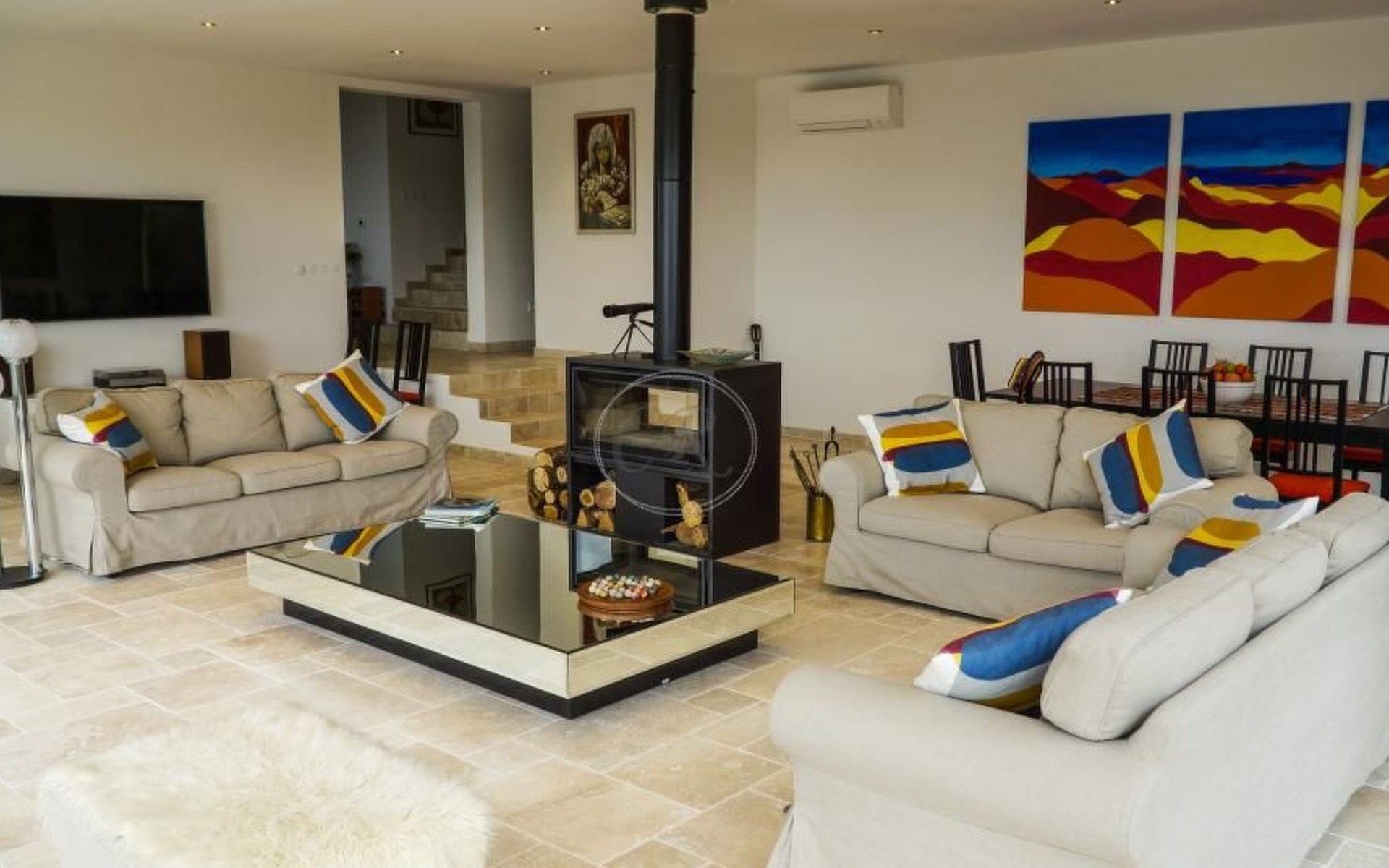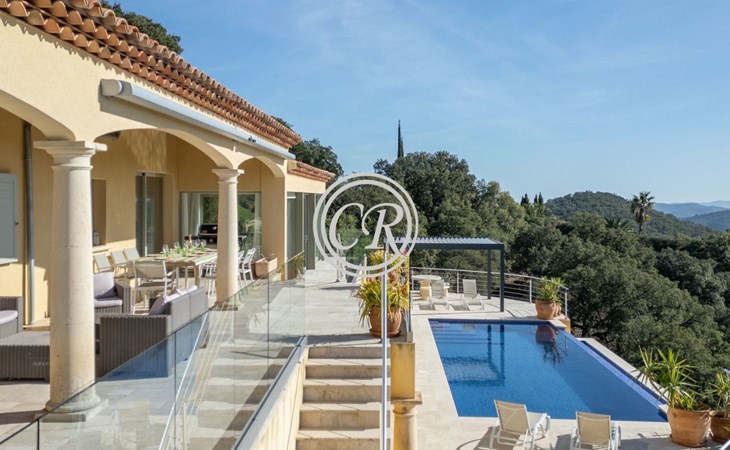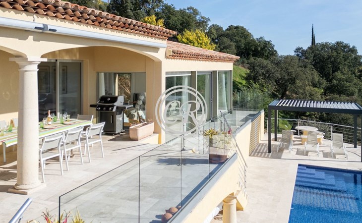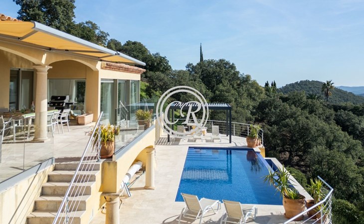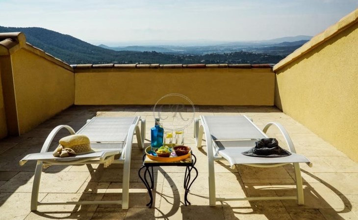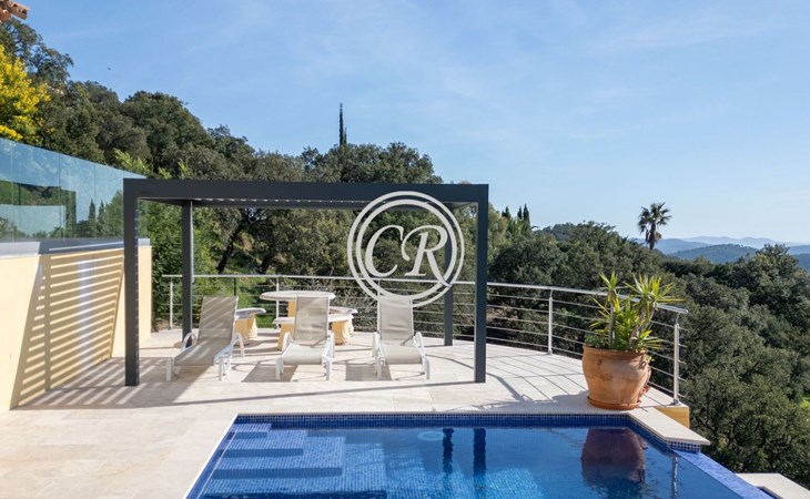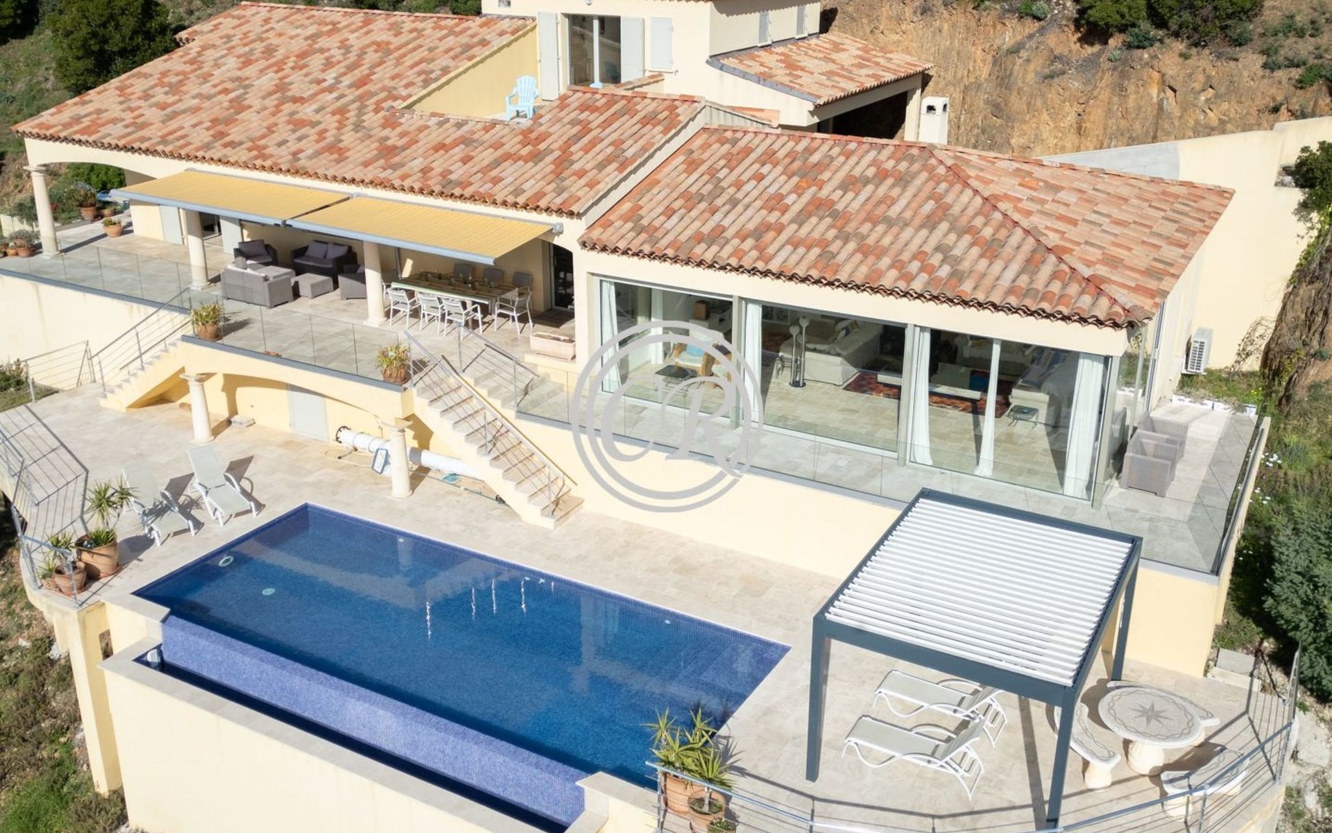 Im Außenbereich können Sie die beiden Terrassen mit Blick auf das Meer und den Infinity-Pool genießen. Sie können auch von einem neuen Bouleplatz profitieren, der direkt neben der Terrasse angelegt wurde. Auf der ersten Ebene befinden sich das Wohnzimmer, die Küche und ein geräumiges Schlafzimmer, das sich auf die Terrasse erstreckt. Zur Essenszeit können Sie wahlweise drinnen oder im schattigen Teil der Außenterrasse essen. Ein zweites Schlafzimmer auf der gleichen Ebene bietet einen Blick auf den Obstgarten. Alle Zimmer haben ein eigenes Badezimmer. Auf der zweiten Ebene befindet sich eine Suite für 3 Personen mit Badezimmer und WC. Auf der dritten Ebene befindet sich das Hauptschlafzimmer mit einer großen Terrasse zwischen Himmel und Erde mit Panoramablick auf das Meer, einem Ankleidezimmer und einem Badezimmer mit Spa.