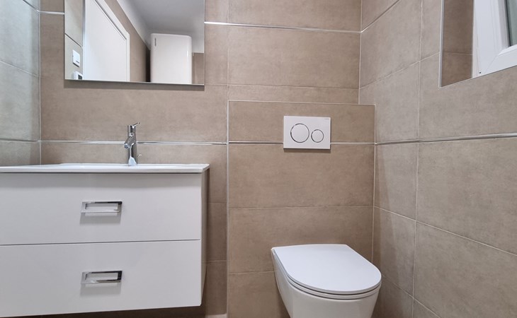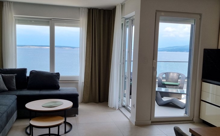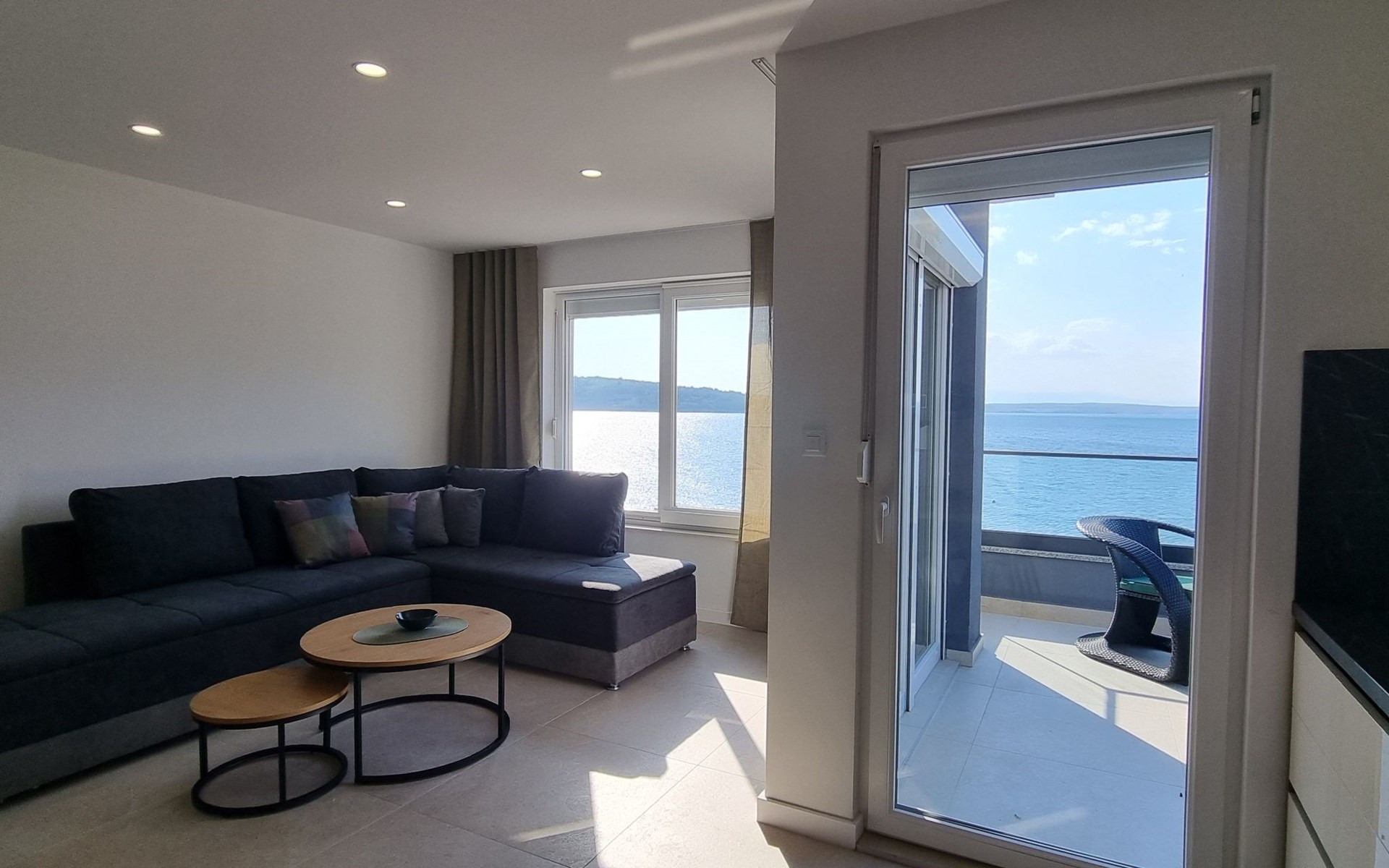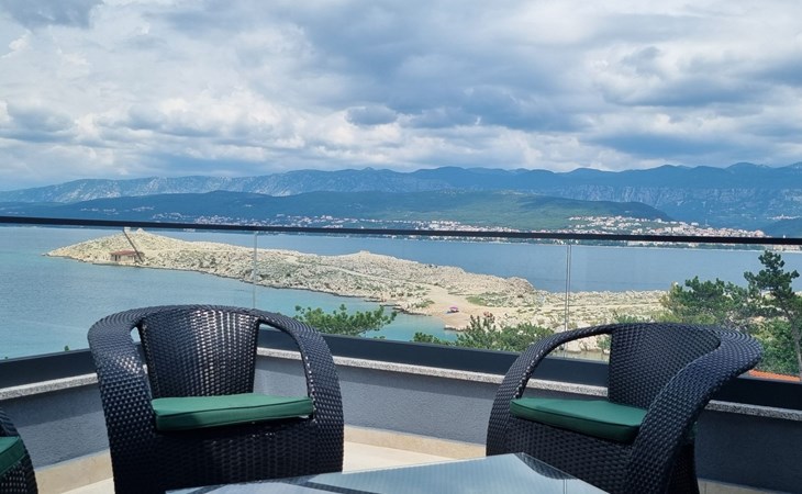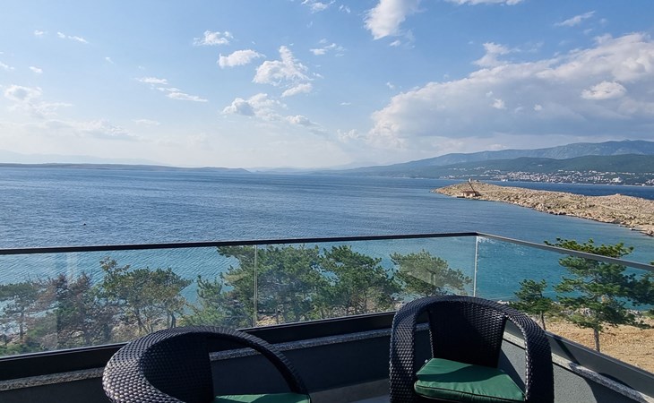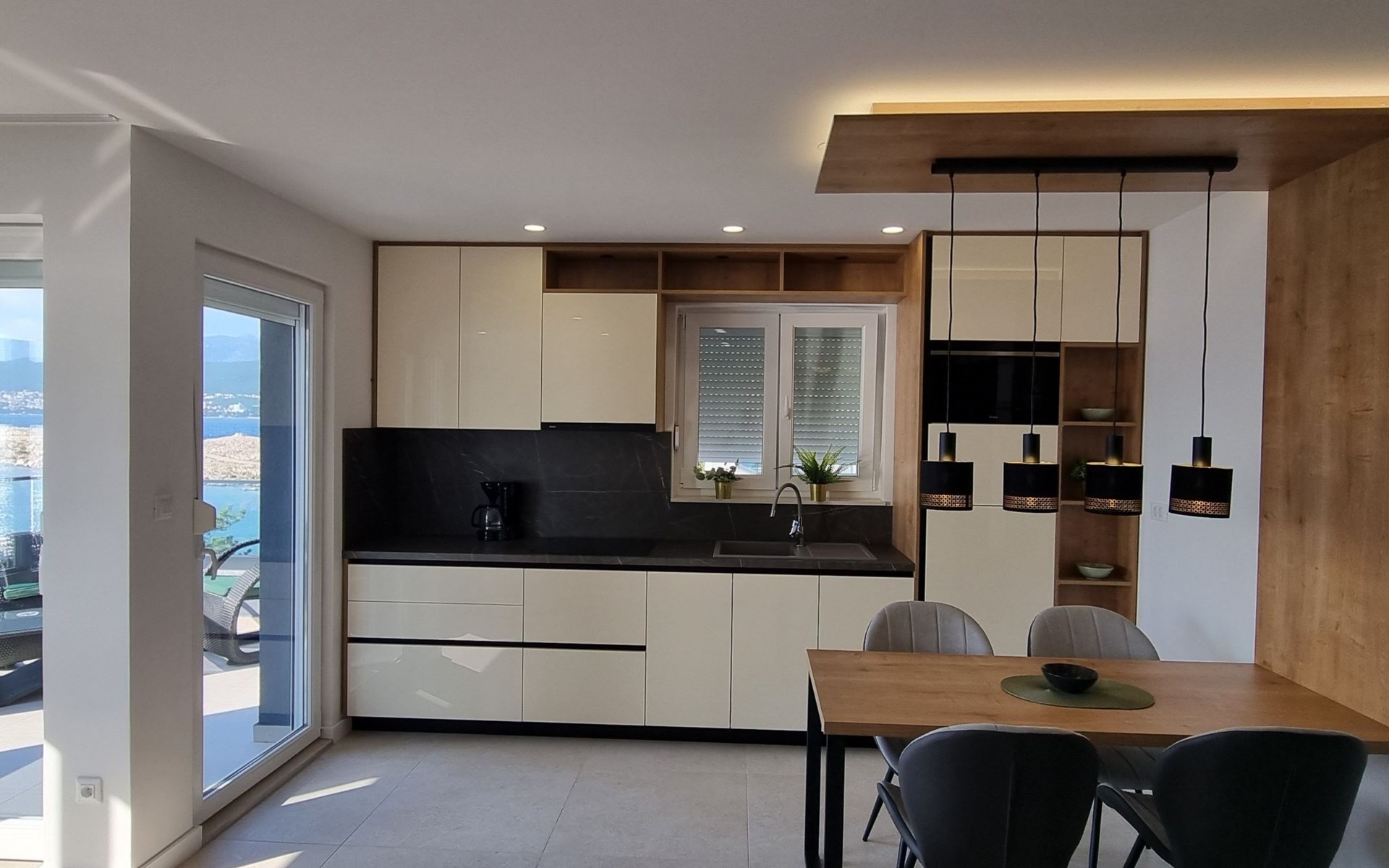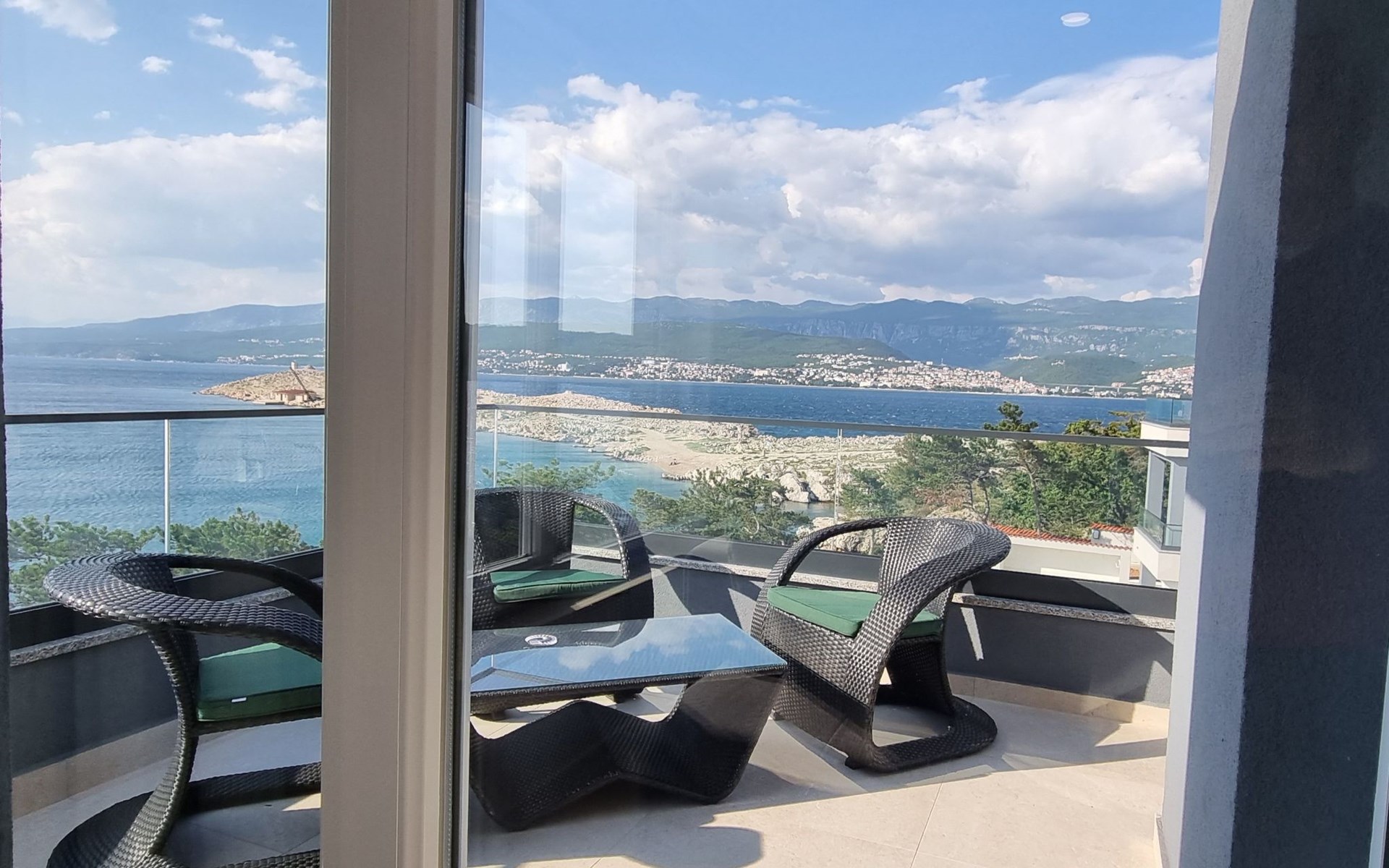 Der Balkon (10 m2) bietet eine wunderschöne Aussicht auf den Pool und das Meer. Der Poolbereich im Erdgeschoss ist mit Sonnenliegen, Sonnenschirmen und einer Außendusche ausgestattet und bietet direkten Zugang zum Meer zum bequemen Schwimmen. Ein gemeinsamer Waschraum im Erdgeschoss umfasst eine Waschmaschine, Waschkapseln/Waschmittel und ein Bügeleisen zur Nutzung durch die Gäste.