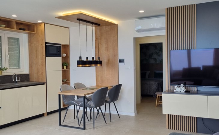 Der Apartmentkomplex liegt nur 1 km vom Stadtzentrum entfernt, was ein gemütlicher 15-minütiger Spaziergang entlang der Küste ist. In der Nähe finden Sie einen Kieselstrand mit einer Strandbar sowie einen Basketballplatz und einen Beachvolleyballplatz. Neben dem Komplex bietet ein Tauchzentrum Unterricht für Anfänger und geführte Tauchgänge für erfahrene Taucher. Dieses Zentrum beherbergt auch eines der besten Restaurants der Region, das eine Auswahl traditioneller mediterraner Gerichte serviert. Kostenlose Privatparkplätze stehen zur Verfügung und jedes Zimmer ist klimatisiert, um einen komfortablen Aufenthalt zu gewährleisten.aten, ...