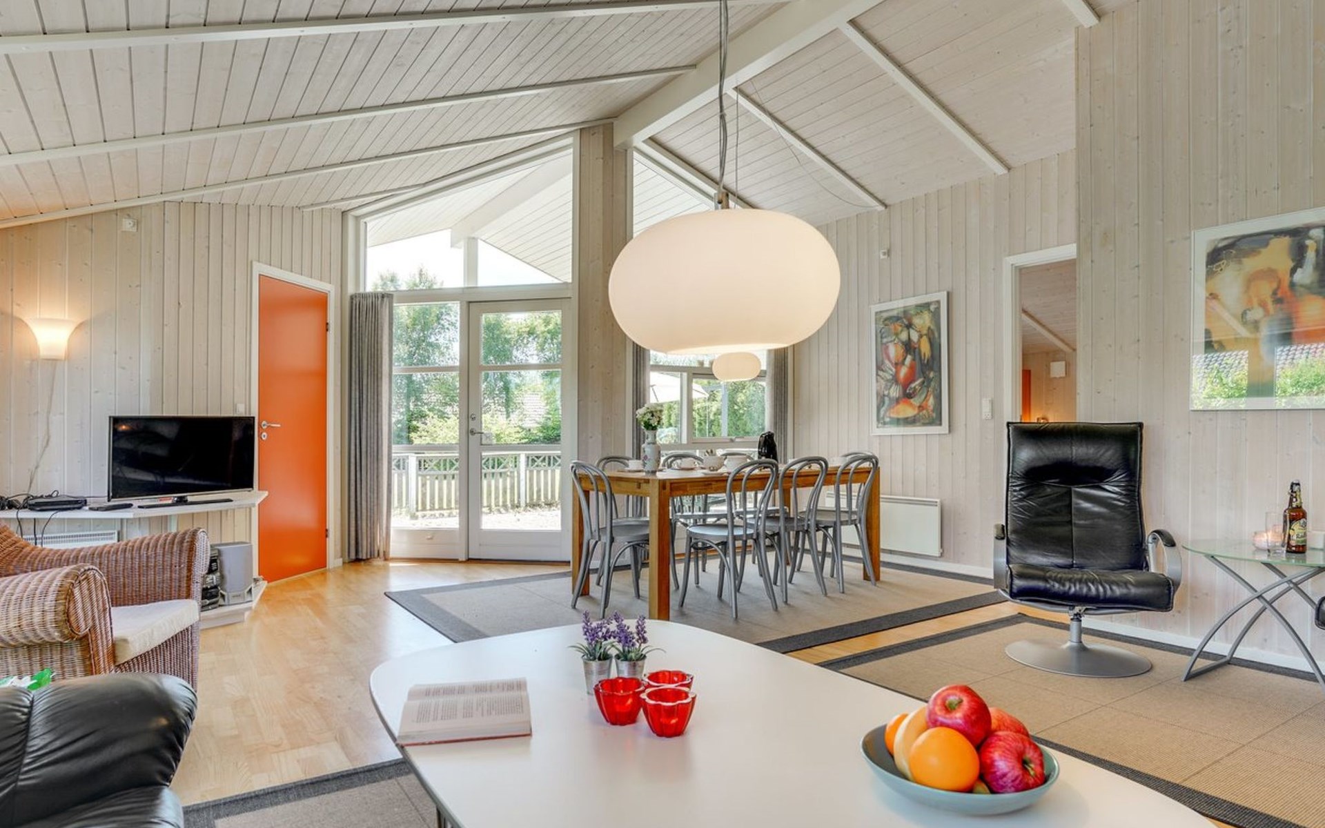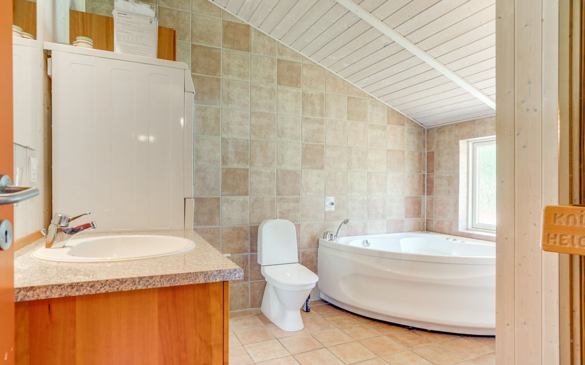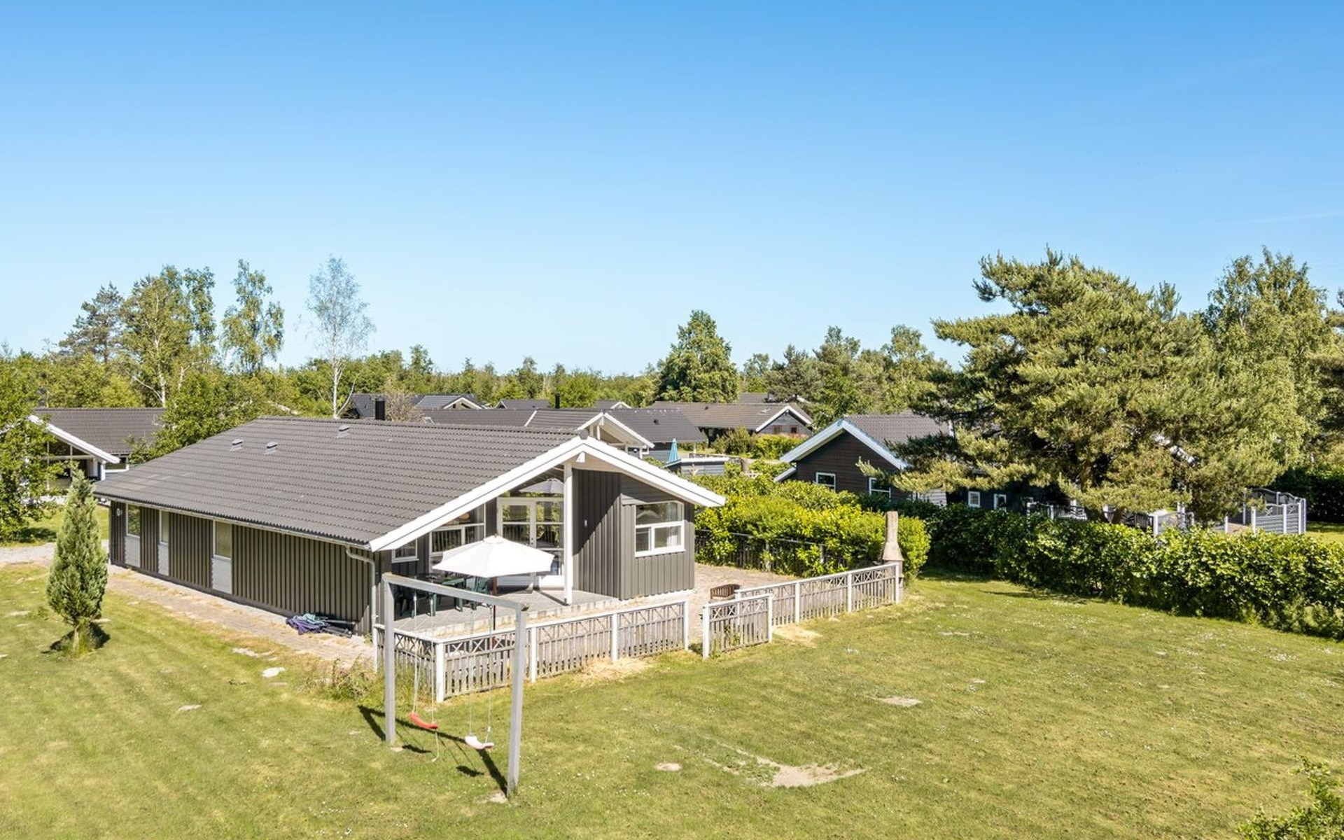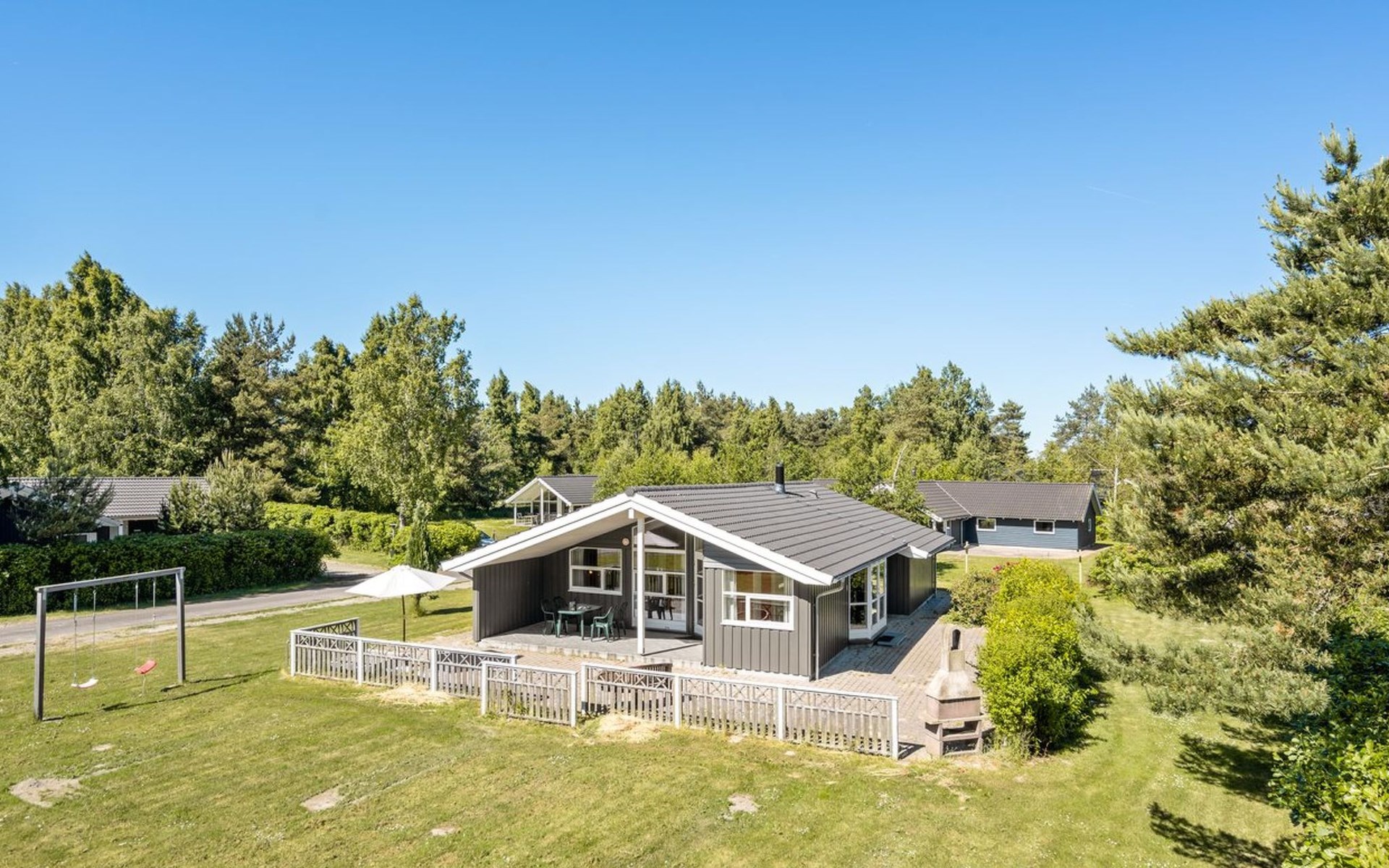 Einfamilienhaus, Baujahr 2005. 800 m vom Meer. Zur Alleinbenutzung: Grundstück 929 m2, gepflegter Garten. Terrasse (100 m2), Grill, Kinderspielplatz (Schaukel). Im Hause: Sauna, Waschmaschine, Wäschetrockner. Parkplatz beim Haus. Lebensmittelgeschäft 300 m. Golfplatz 2 km. Der Besitzer akzeptiert keine Jugendgruppen.