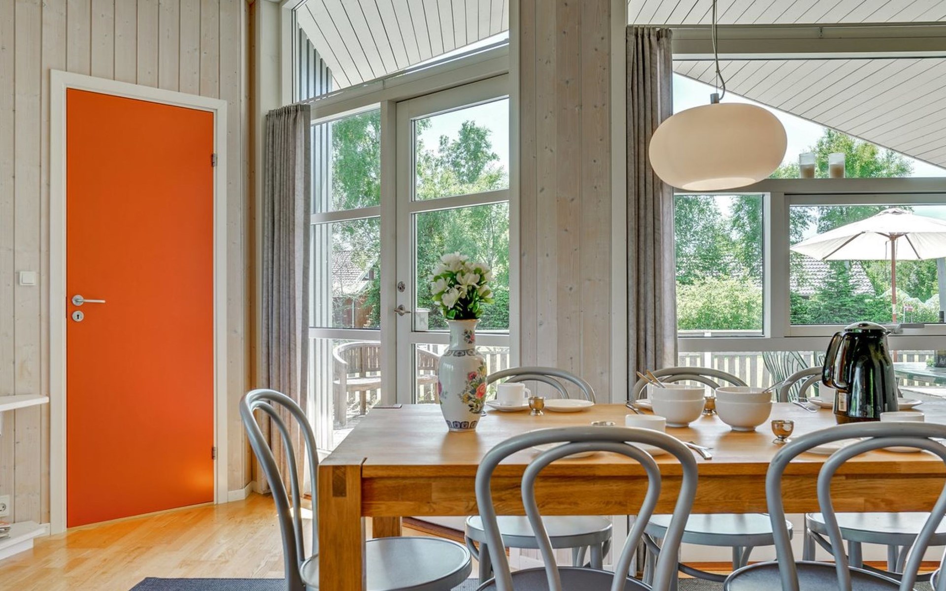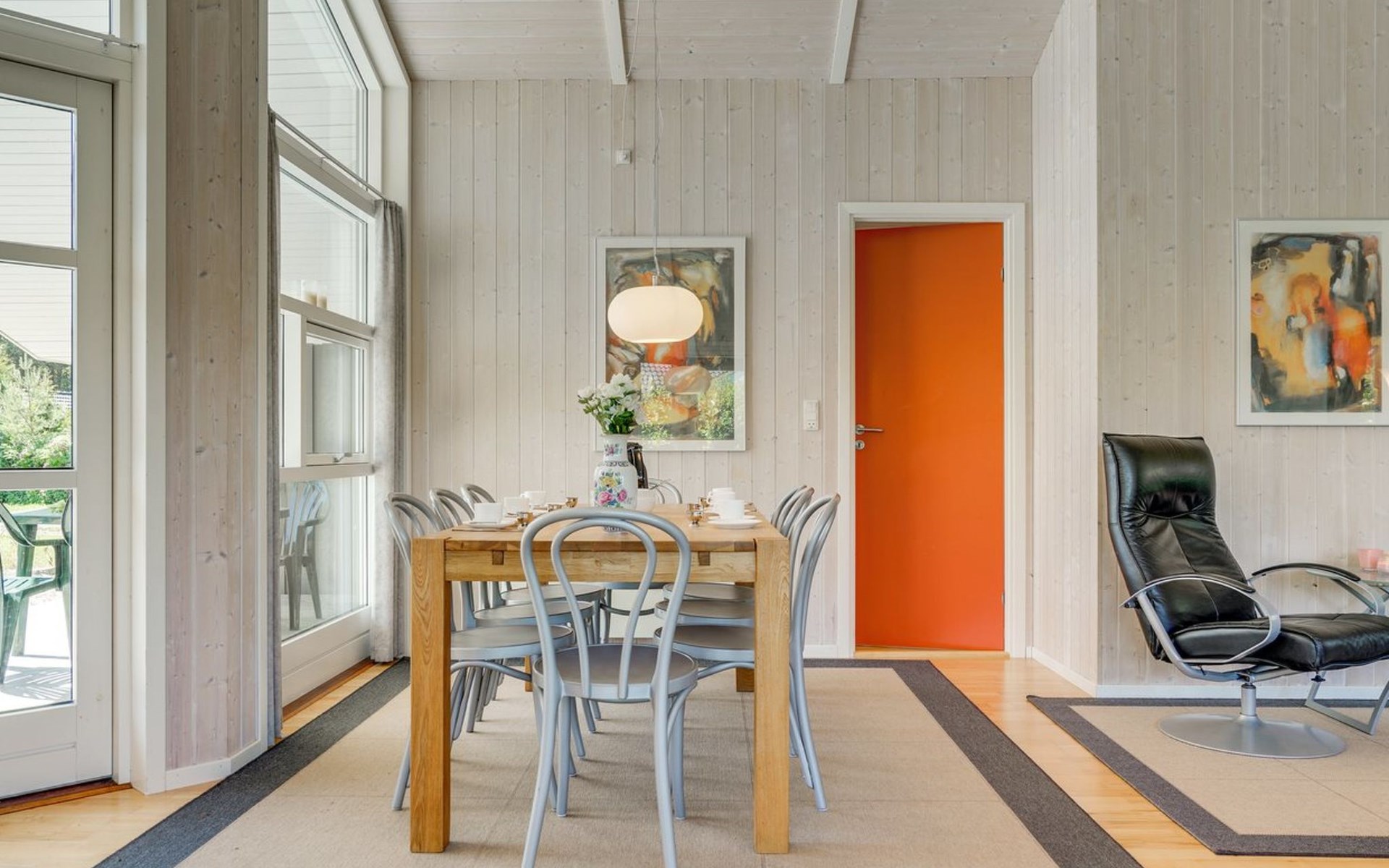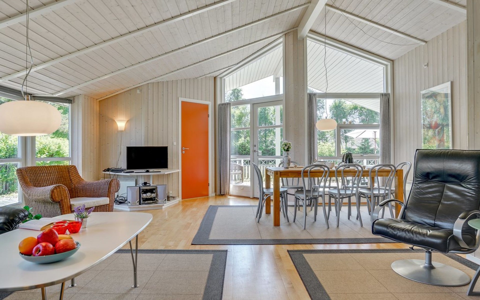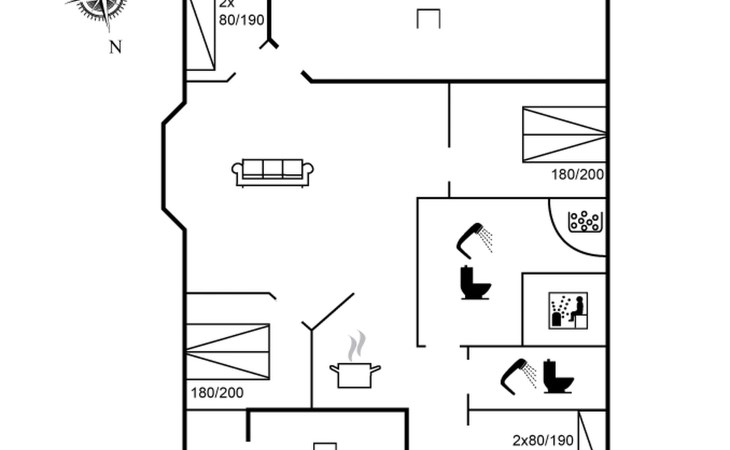 Einfamilienhaus, Baujahr 2005. 800 m vom Meer. Zur Alleinbenutzung: Grundstück 929 m2, gepflegter Garten. Terrasse (100 m2), Grill, Kinderspielplatz (Schaukel). Im Hause: Sauna, Waschmaschine, Wäschetrockner. Parkplatz beim Haus. Lebensmittelgeschäft 300 m. Golfplatz 2 km. Der Besitzer akzeptiert keine Jugendgruppen.