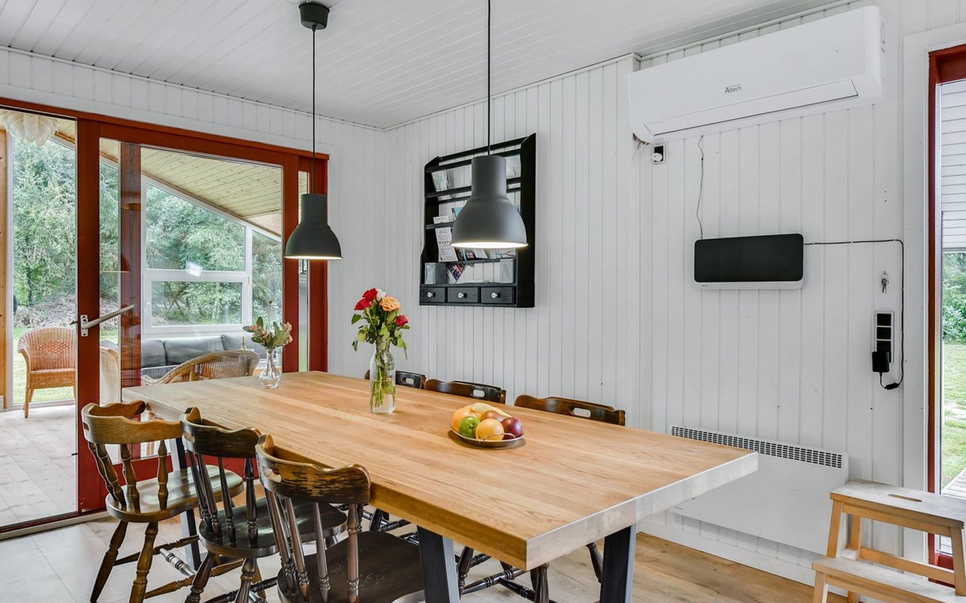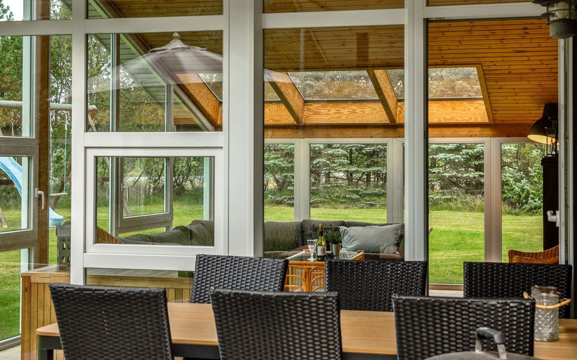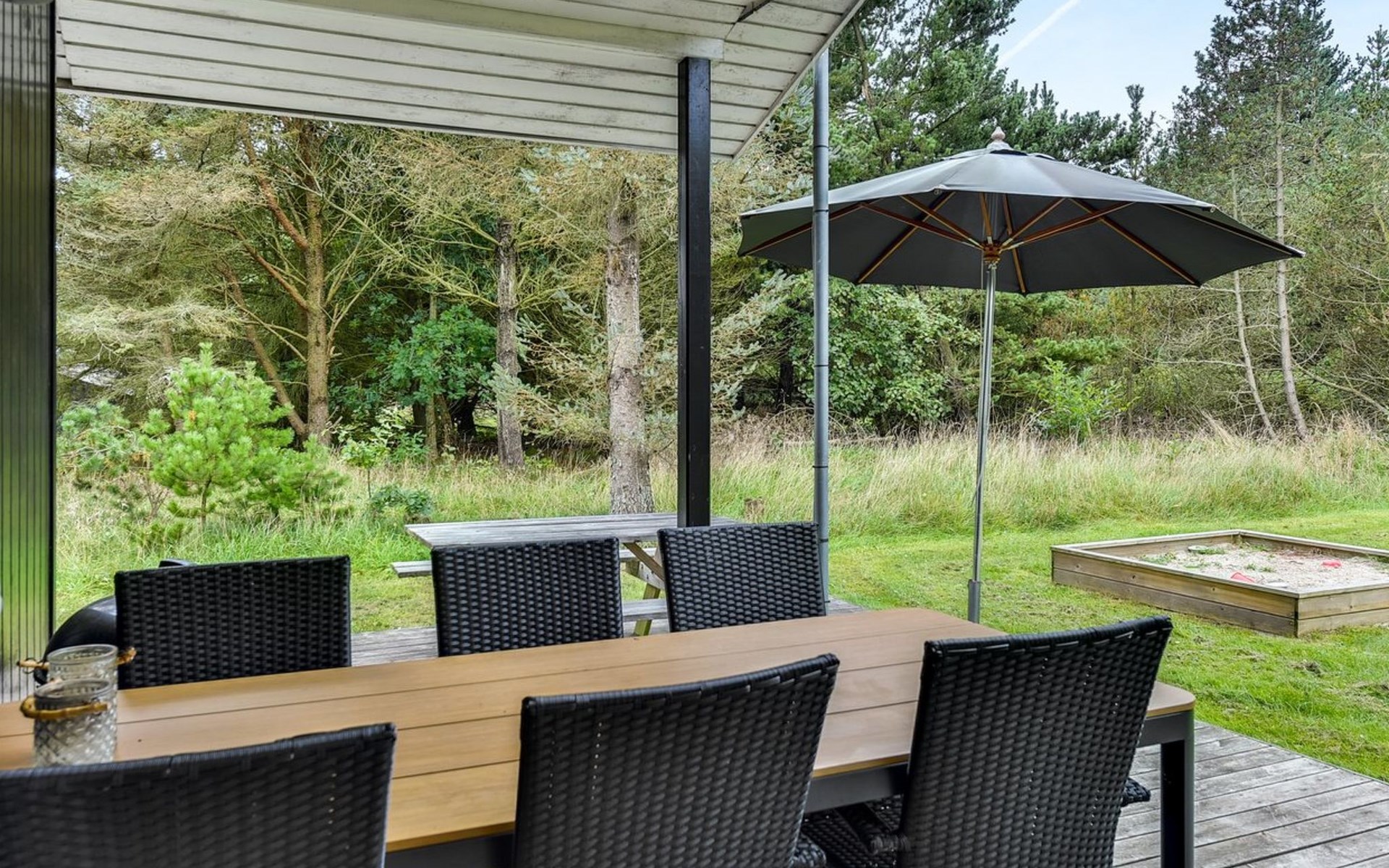 Einfamilienhaus, Baujahr 1977. 2.5 km vom Meer. Zur Alleinbenutzung: naturbelassenes Grundstück 2'900 m2. Terrasse (45 m2), Grill, Kinderspielplatz (Schaukel). Im Hause: Trampolin, Waschmaschine, Wäschetrockner. Carport. Lebensmittelgeschäft 2 km. Der Besitzer akzeptiert keine Jugendgruppen.