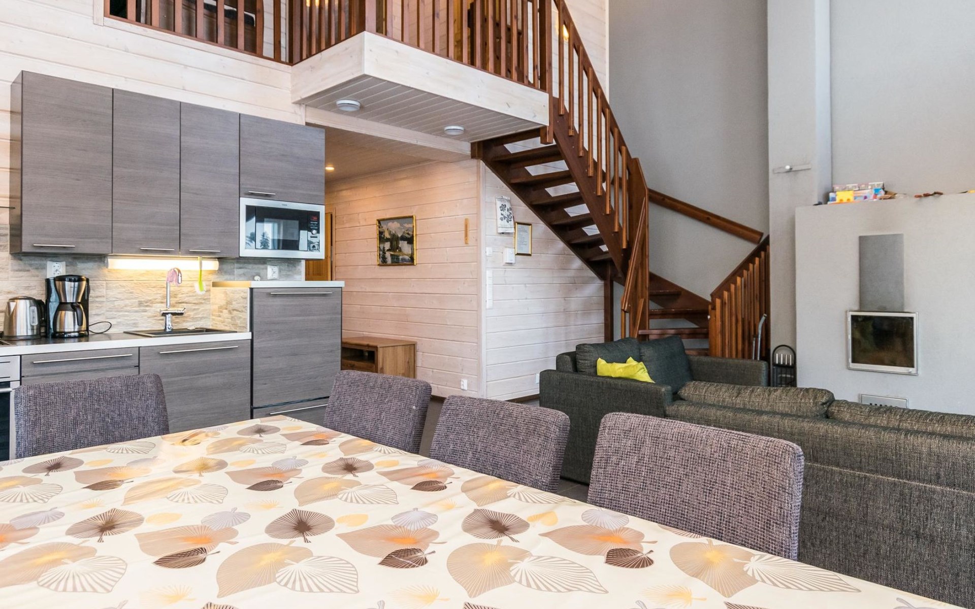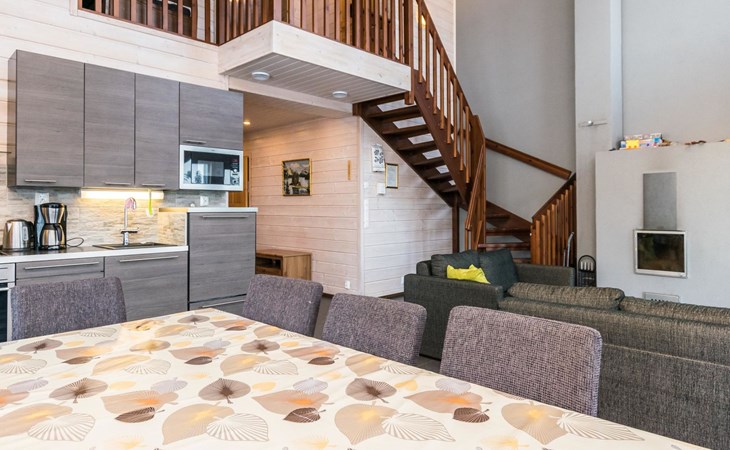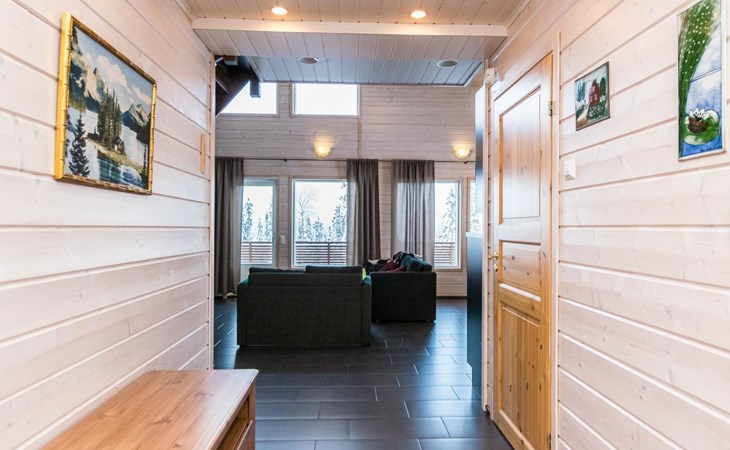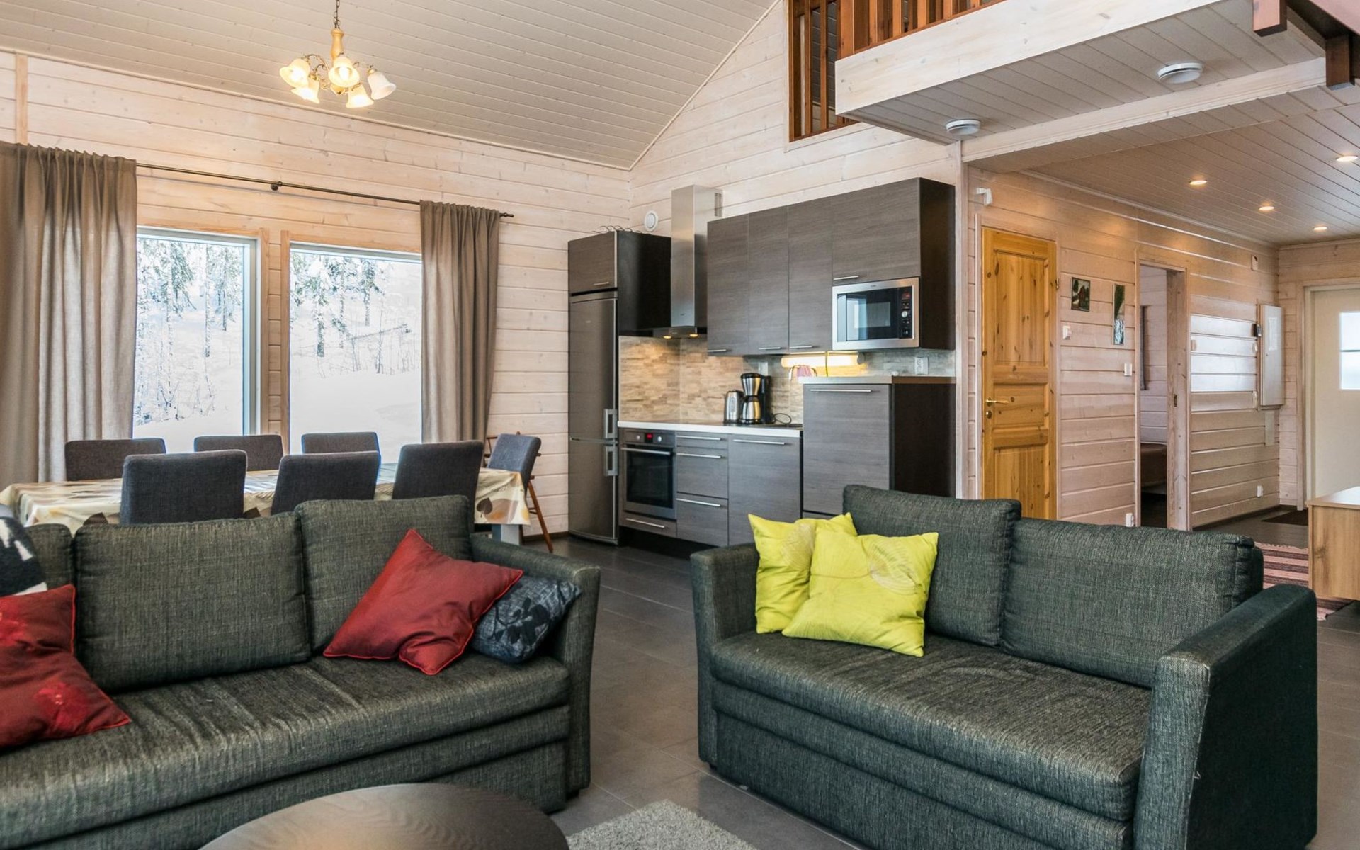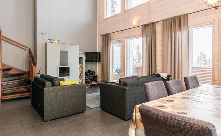 Doppelhaushälfte, im Tourismuszentrum Ukkohalla, Fläche 98 m2, für 12 Personen, Baujahr 2012. Küche, 2 Schlafzimmer (ein weiteres Obergeschoss), Sauna, Duschbad (2 Duschen), 2 separate Toiletten (eine weitere im Obergeschoss), Zimmer für Kleidung, Terrasse, Kamin und Brennholz. Schlafzimmer mit Doppelbett im Erdgeschoss, Wohnzimmer mit zwei Schlafsofas, Schlafzimmer mit Doppelbett und 2 Betten (80 cm) im Obergeschoss, Dachboden-Lobby mit Schlafsofa. Ukkohalla: Tourismuszentrum am See Syväjärvi, Informationszentrum, Geschäft, Restaurant, Spa, Pistenzentrum, Schneemobilpisten, Skipisten, Programmservice, Strand (weitere Informationen unter www.ukkohalla.fi). Entfernung zu den Ukkohalla-Diensten 0,1 km. Flughafen Kajaani 86 km, Oulu 170 km, Helsinki 650 km, Bushaltestelle Hyrynsalmi 18 km, Bahnhof Kontiomäki 66 km. Haustiere verboten, Blick über den See Syväjärvi. Zur Piste nur 0,05km. Das Ferienhaus steht am Anreisetag ab 16.00 Uhr bis 12.00 Uhr am Abreisetag zur Verfügung.