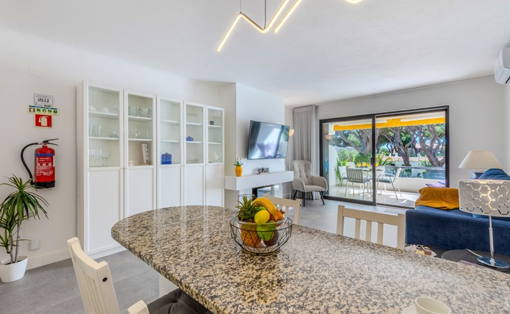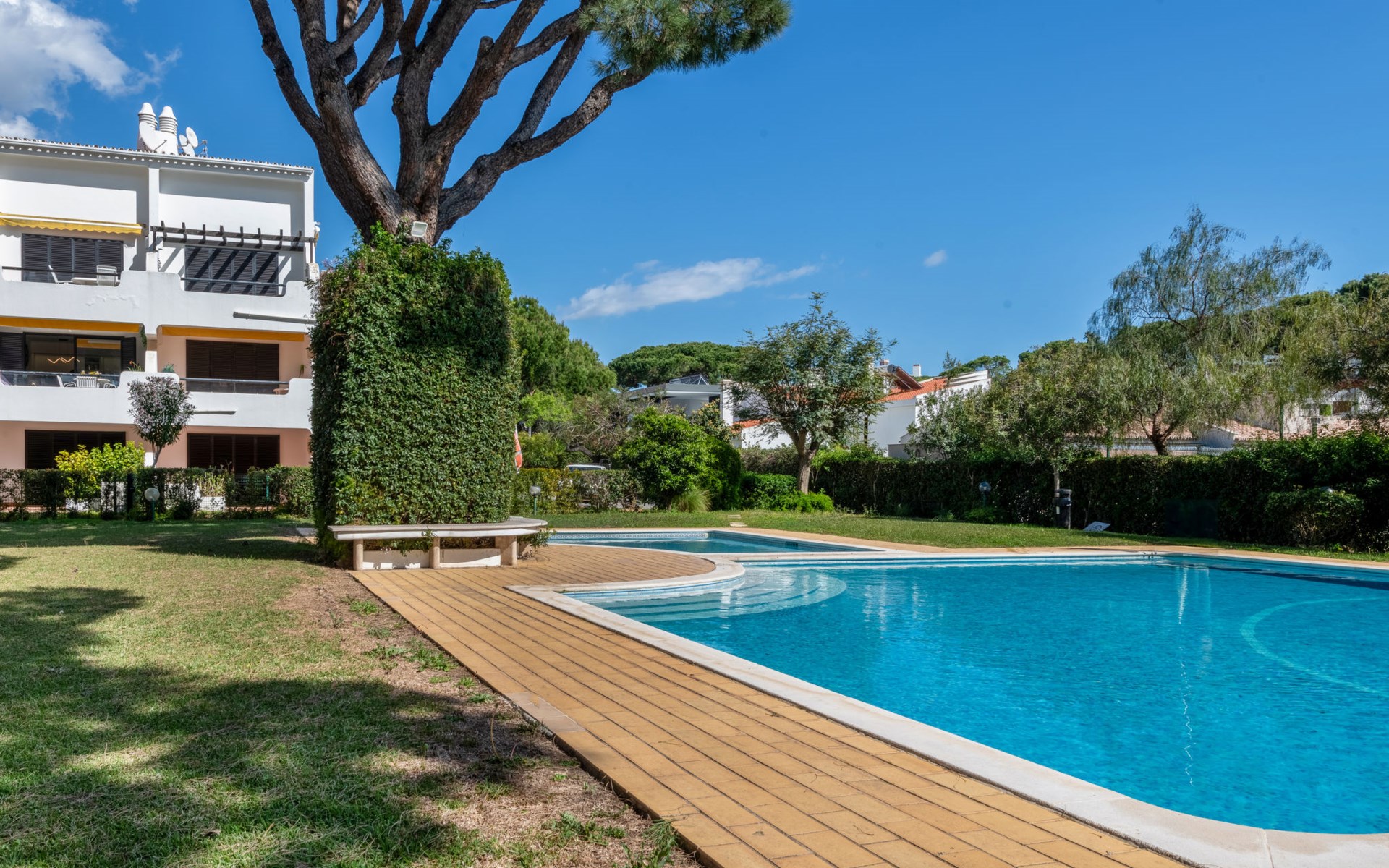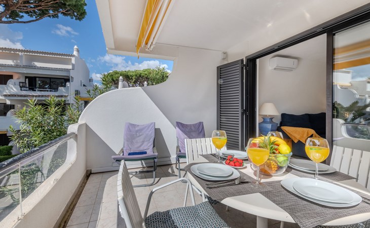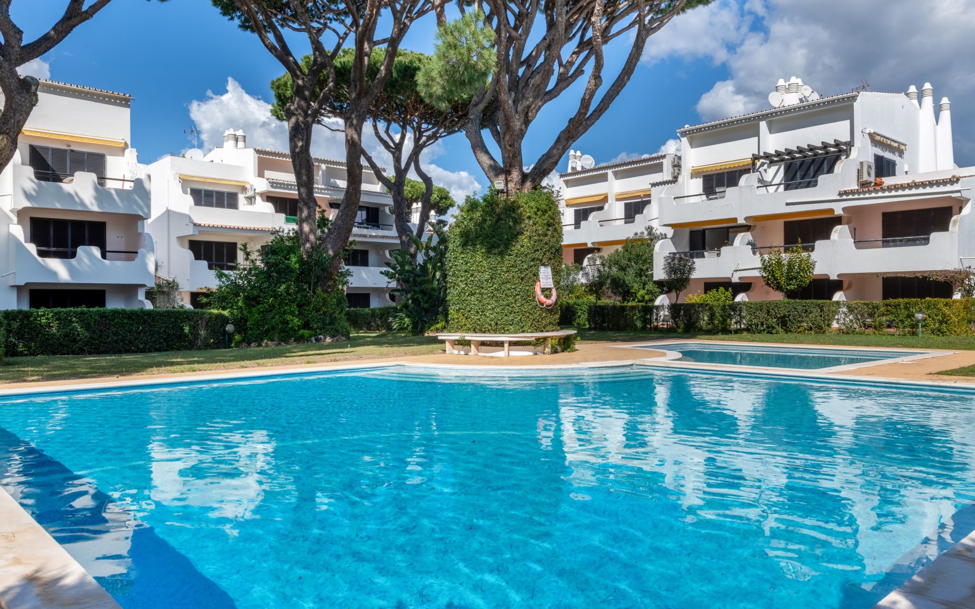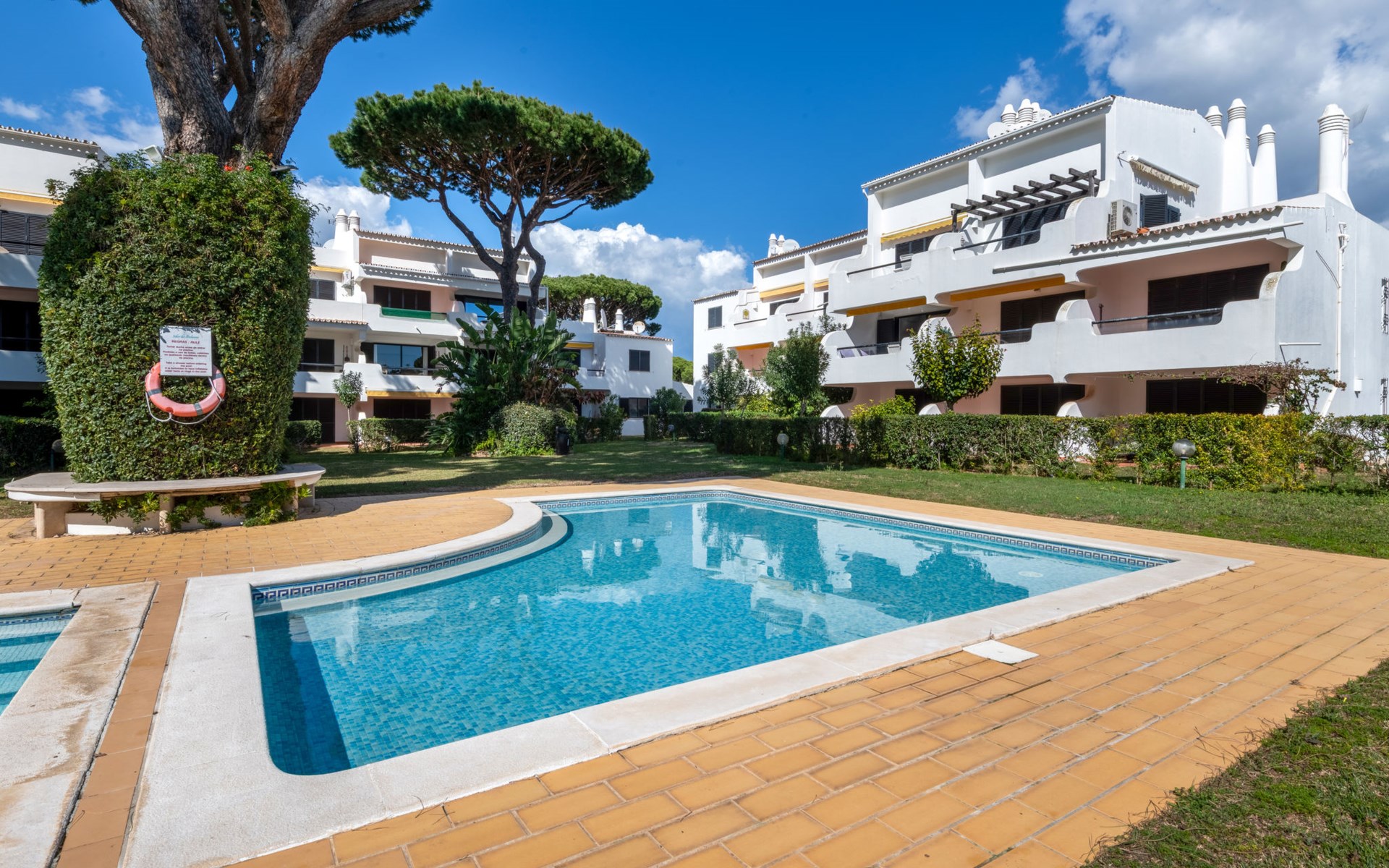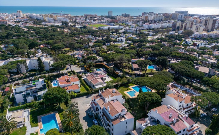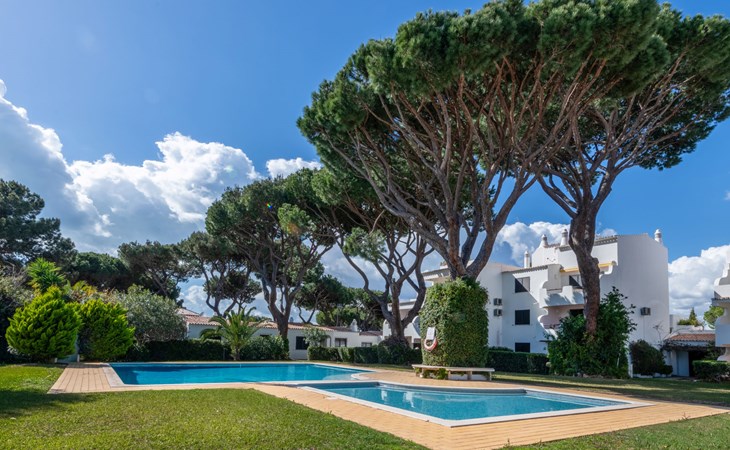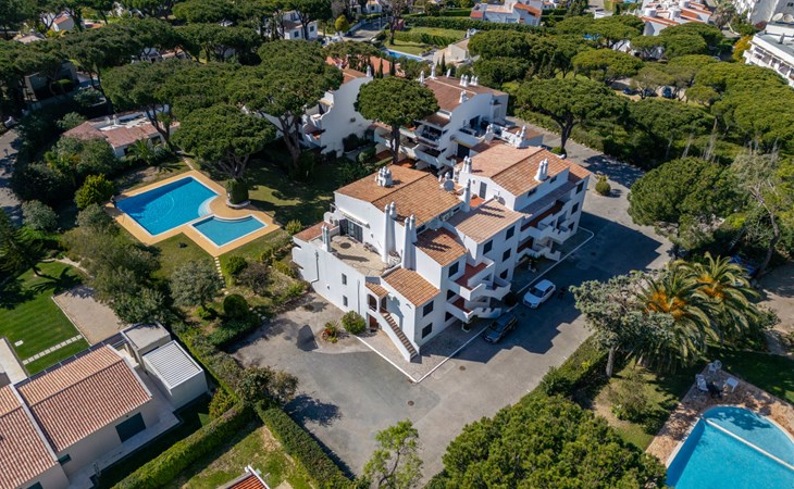 Quarteira - Vilamoura: Sehr gemütliches Appartementhaus "Brisa dos Pinheiros". Ausserhalb des Ortes, 1.5 km vom Zentrum von Vilamoura, im Villenviertel, 2.5 km vom Meer. Zur Mitbenutzung: wunderschöner Garten zum Entspannen, Schwimmbad eckig (5 x 12 m, 90 - 190 cm tief, saisonale Verfügbarkeit: 01.Jan. - 31.Dez.). Im Hause: Wireless LAN. Lebensmittelgeschäft 1 km, Supermarkt 1.5 km, Einkaufszentrum 1.9 km, Restaurant 900 m, Bar 2.3 km, Bäckerei 1 km, Café 1 km, Bushaltestelle 1.5 km, Sandstrand "Praia de Quarteira" 2.2 km. Jacht-Hafen 3.6 km, Golfplatz (18 Loch) 4.6 km, Surfschule 3.4 km, Tennis 1.2 km, Reitstall 14.8 km. Nahe gelegene Sehenswürdigkeiten: Aquashow 5.5 km, Casino de Vilamoura 2 km, Karting de Almancil 9.7 km, Algarve Seafaris 2.5 km, Cerro da Vila Estação Arqueológica 1.9 km, Family Golf Park 1.6 km. Bitte beachten: kein Fahrstuhl vorhanden.