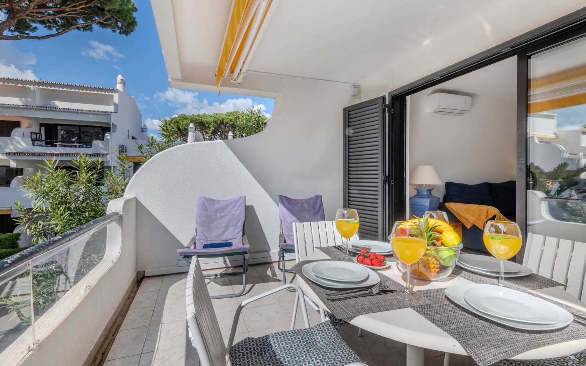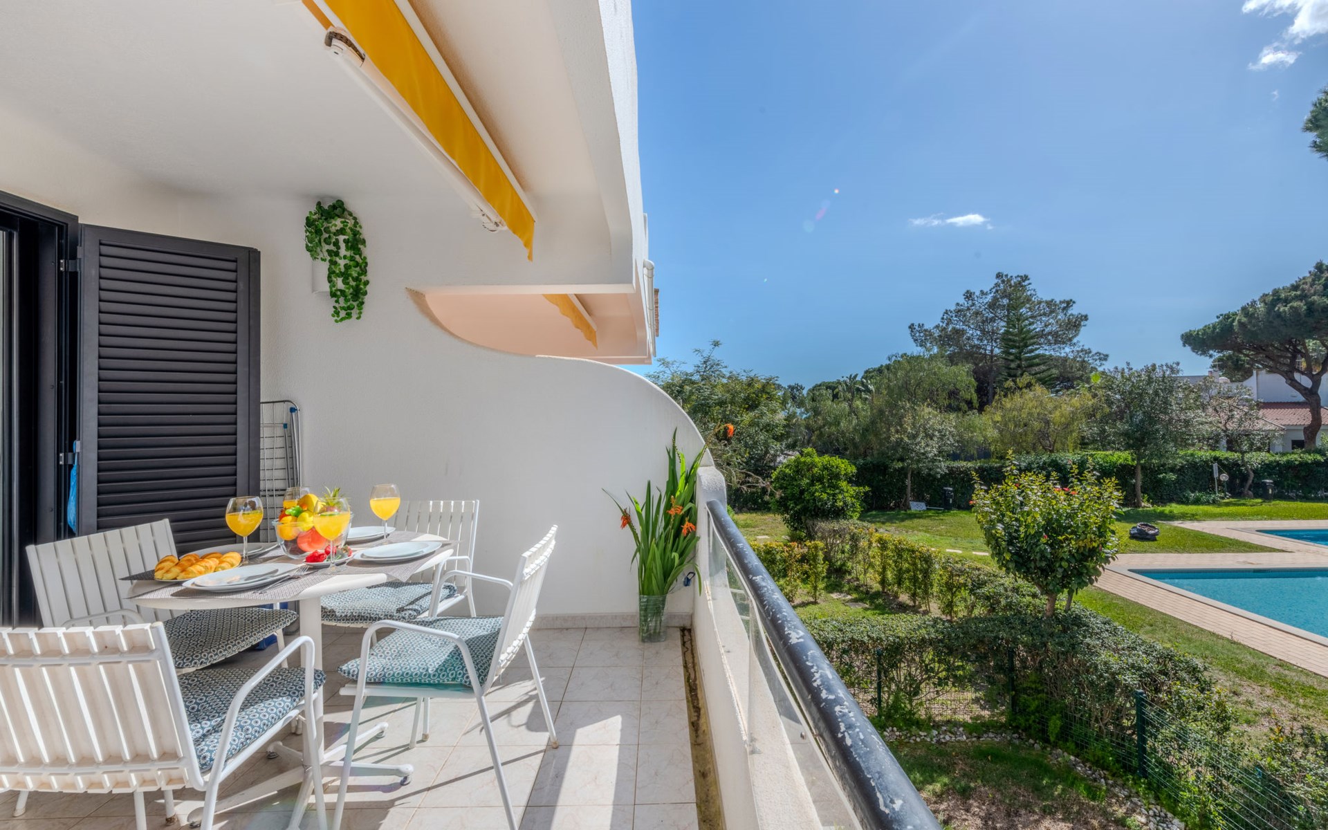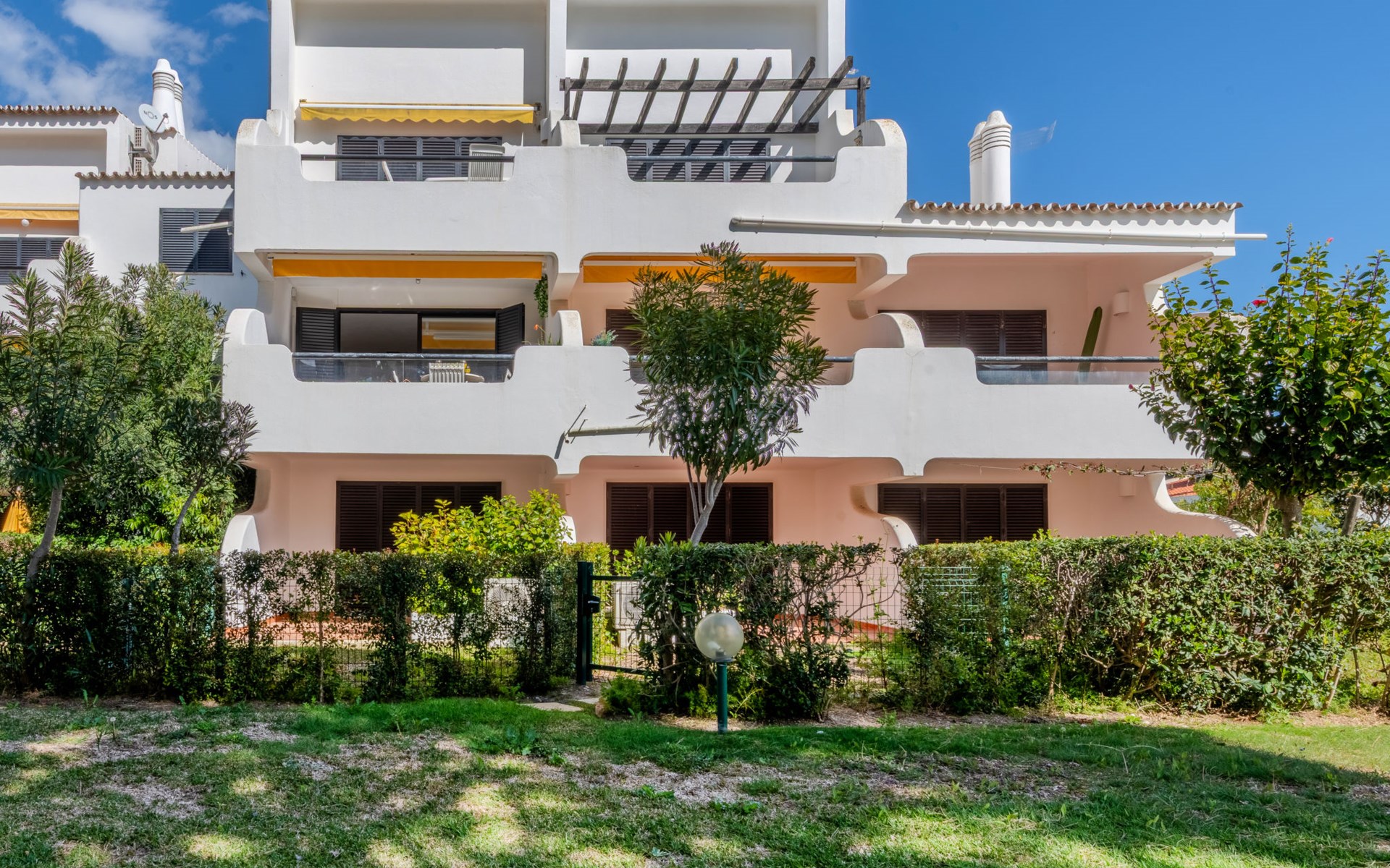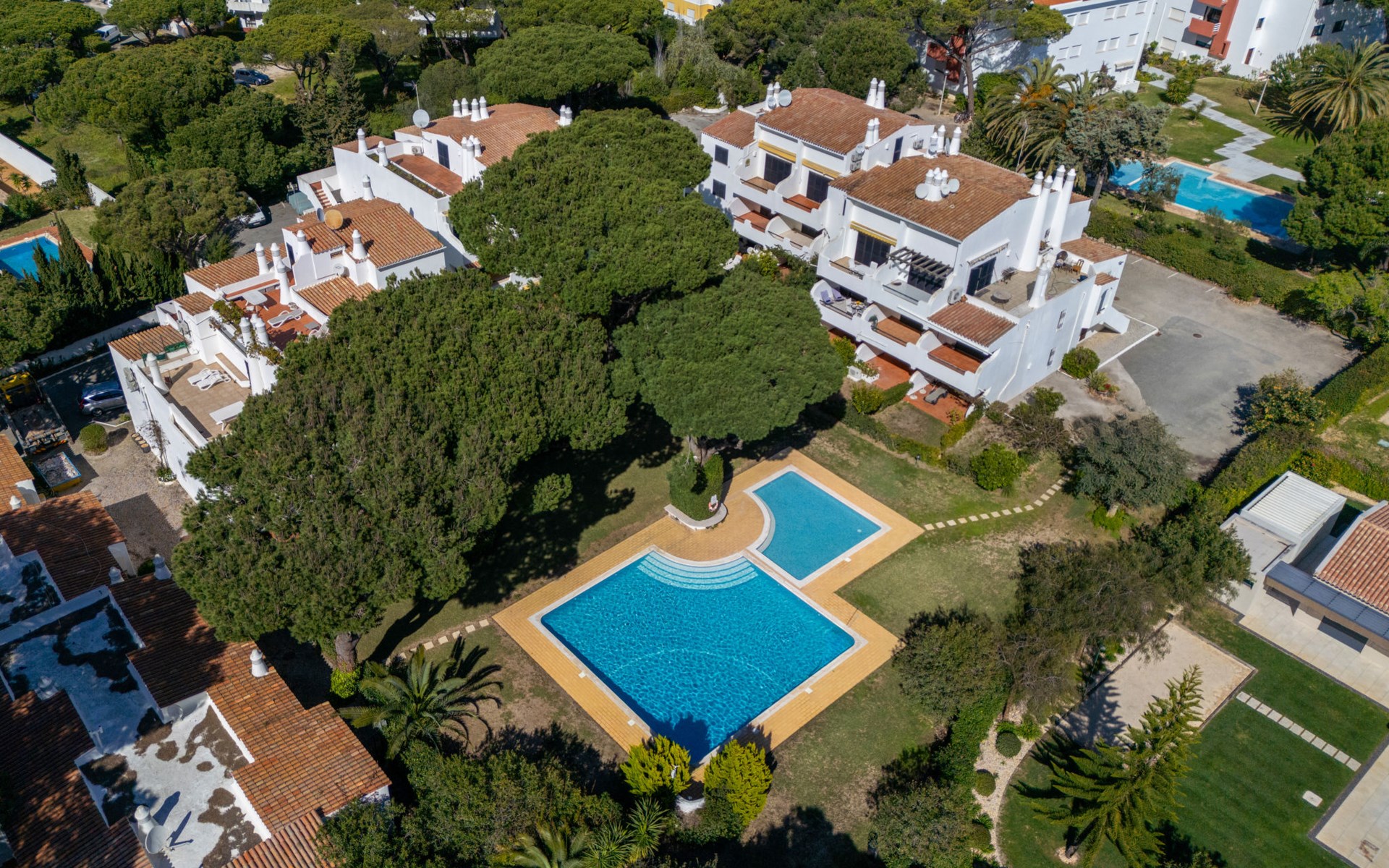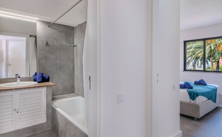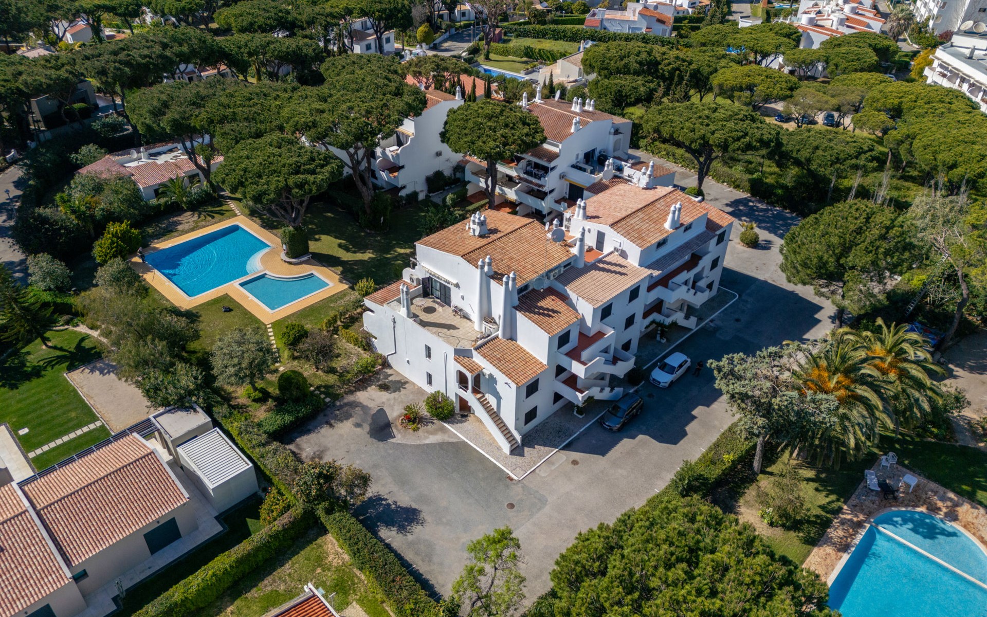 Quarteira - Vilamoura: Sehr gemütliches Appartementhaus "Brisa dos Pinheiros". Ausserhalb des Ortes, 1.5 km vom Zentrum von Vilamoura, im Villenviertel, 2.5 km vom Meer. Zur Mitbenutzung: wunderschöner Garten zum Entspannen, Schwimmbad eckig (5 x 12 m, 90 - 190 cm tief, saisonale Verfügbarkeit: 01.Jan. - 31.Dez.). Im Hause: Wireless LAN. Lebensmittelgeschäft 1 km, Supermarkt 1.5 km, Einkaufszentrum 1.9 km, Restaurant 900 m, Bar 2.3 km, Bäckerei 1 km, Café 1 km, Bushaltestelle 1.5 km, Sandstrand "Praia de Quarteira" 2.2 km. Jacht-Hafen 3.6 km, Golfplatz (18 Loch) 4.6 km, Surfschule 3.4 km, Tennis 1.2 km, Reitstall 14.8 km. Nahe gelegene Sehenswürdigkeiten: Aquashow 5.5 km, Casino de Vilamoura 2 km, Karting de Almancil 9.7 km, Algarve Seafaris 2.5 km, Cerro da Vila Estação Arqueológica 1.9 km, Family Golf Park 1.6 km. Bitte beachten: kein Fahrstuhl vorhanden.
