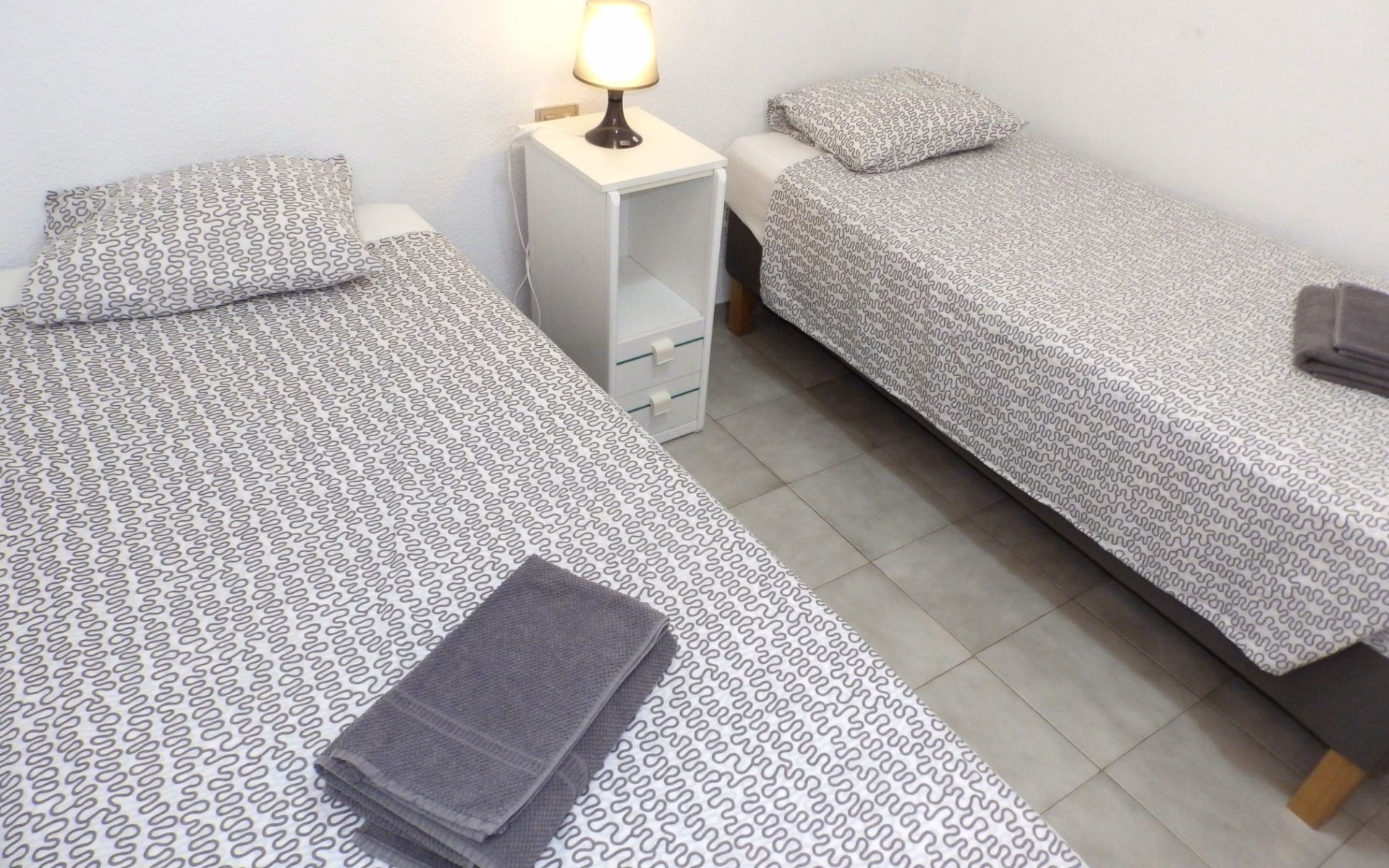 Das Innere der Wohnung ist sorgfältig eingerichtet und für Ihren Komfort ausgestattet. Sie verfügt über zwei gemütliche Schlafzimmer mit je 2 Einzelbetten, die einen erholsamen Schlaf garantieren. Außerdem gibt es ein komplettes Badezimmer mit Dusche und Badewanne, damit Sie sich wohlfühlen. Das Wohnzimmer verfügt über ein bequemes Sofa, einen Fernseher und einen kostenlosen WLAN-Anschluss, die alle in eine voll ausgestattete Küchenzeile mit Kaffeemaschine, Wasserkocher und allen notwendigen Utensilien integriert sind, die einen praktischen und angenehmen Aufenthalt gewährleisten.