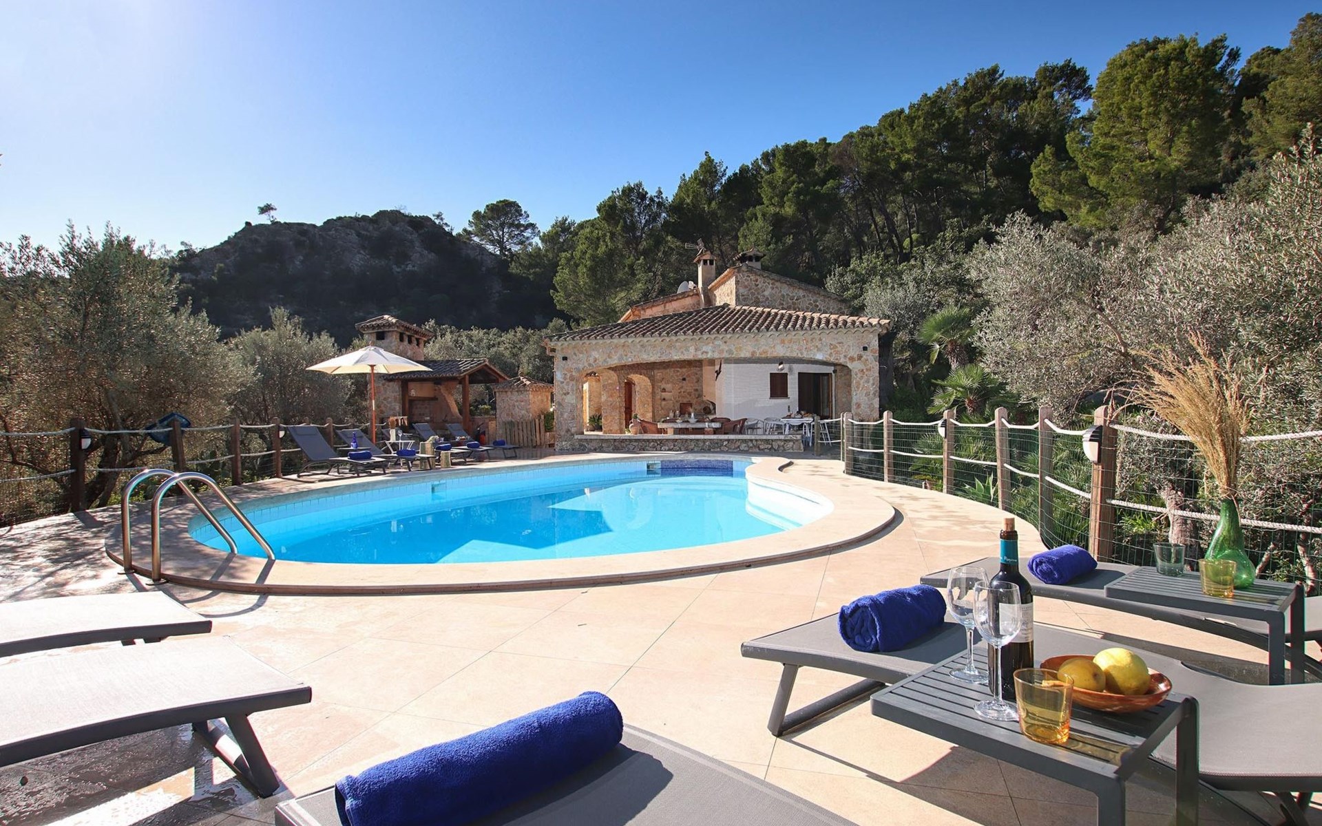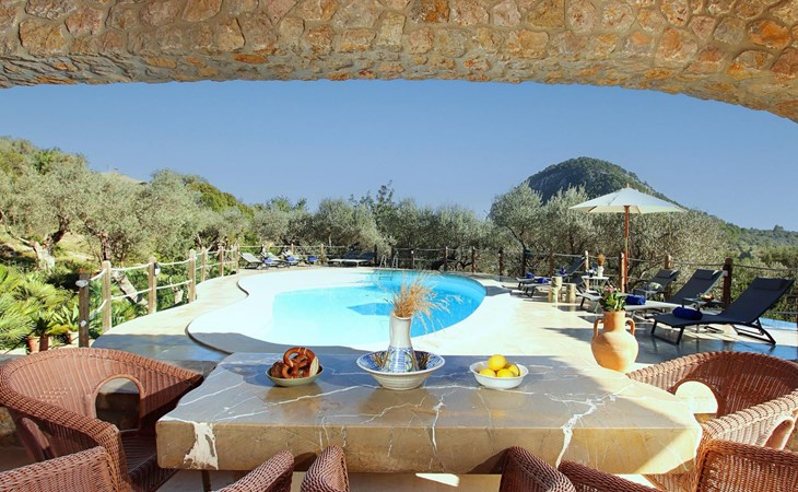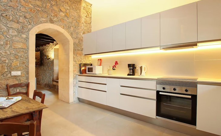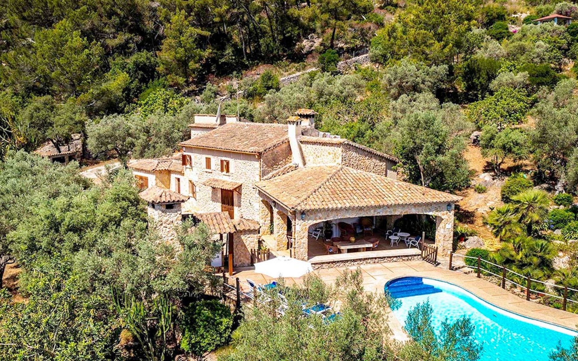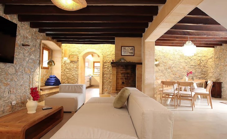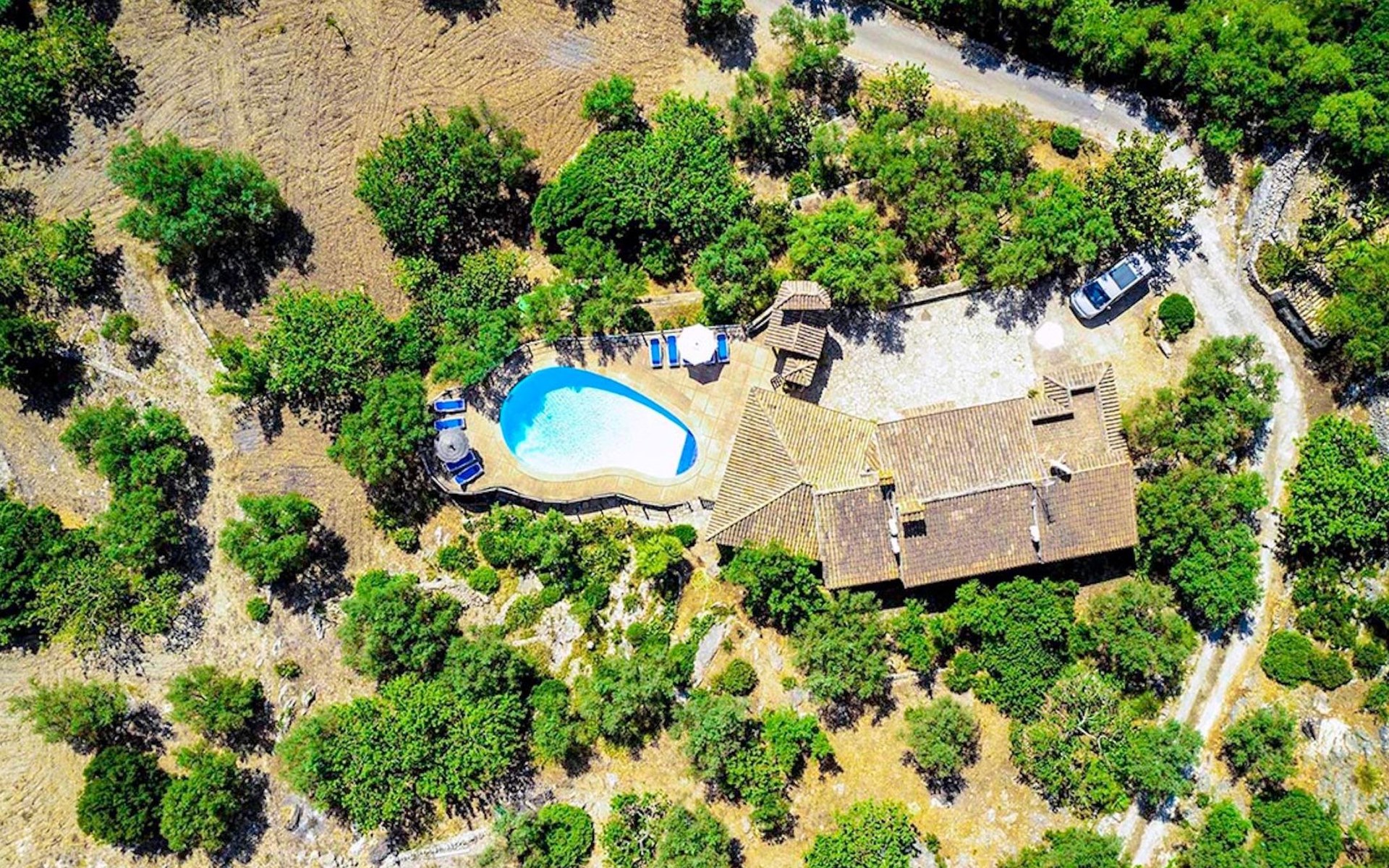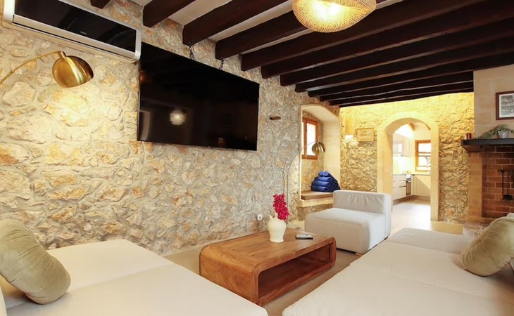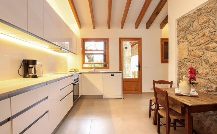 Das Haus ist über eine schmale private Zufahrt zu erreichen. Beim Betreten des Hauses finden Sie eine große Eingangshalle und einen Marés-Bogen, der das geräumige Wohn-/Esszimmer mit Steinwänden, einem großen Kamin und TV/DVD trennt. Die Küche ist komplett ausgestattet mit Mikrowelle, Geschirrspüler, Elektroherd, Kühl-/Gefrierschrank und einer Speisekammer. In der Küche befindet sich auch eine Tür, die nach draußen führt, und zwar auf die überdachte Terrasse, von der aus man direkt zum Poolbereich gelangt. Vom Wohnzimmer aus gibt es einen weiteren inneren Torbogen, der Zugang zu einem Doppelschlafzimmer mit eigenem Bad bietet, und neben dem Wohnzimmer gibt es ein weiteres Badezimmer mit einer halben Badewanne. Eine Treppe führt in das Obergeschoss, wo sich die restlichen Schlafzimmer befinden. Diese bestehen aus zwei Doppelschlafzimmern (eines mit eigenem Duschbad) und zwei schönen Zweibettzimmern. Am oberen Ende der Treppe befindet sich ein weiteres Badezimmer mit Dusche. Auf dieser Etage befindet sich auch eine Terrasse, von der aus man einen spektakulären Blick auf die umliegenden Berge und Täler genießen kann. Der Poolbereich und die Terrassen sind komplett mit Gartenmöbeln ausgestattet. Draußen gibt es auch einen Grill, ideal für die Zubereitung von Abendessen oder Mahlzeiten im Freien, umgeben von einer völlig natürlichen, ruhigen und friedlichen Umgebung. Schließlich ist es erwähnenswert, dass die Villa Alordes über einen kostenlosen Internetanschluss via Wi-Fi verfügt. -