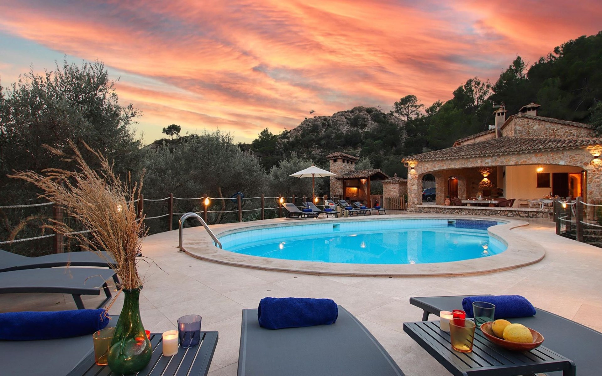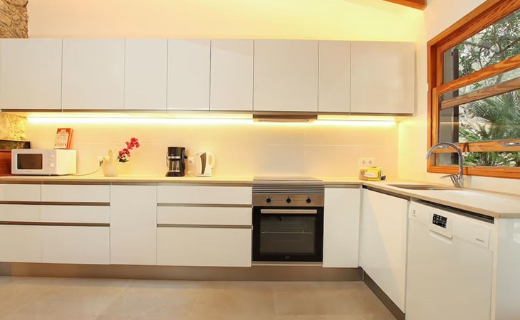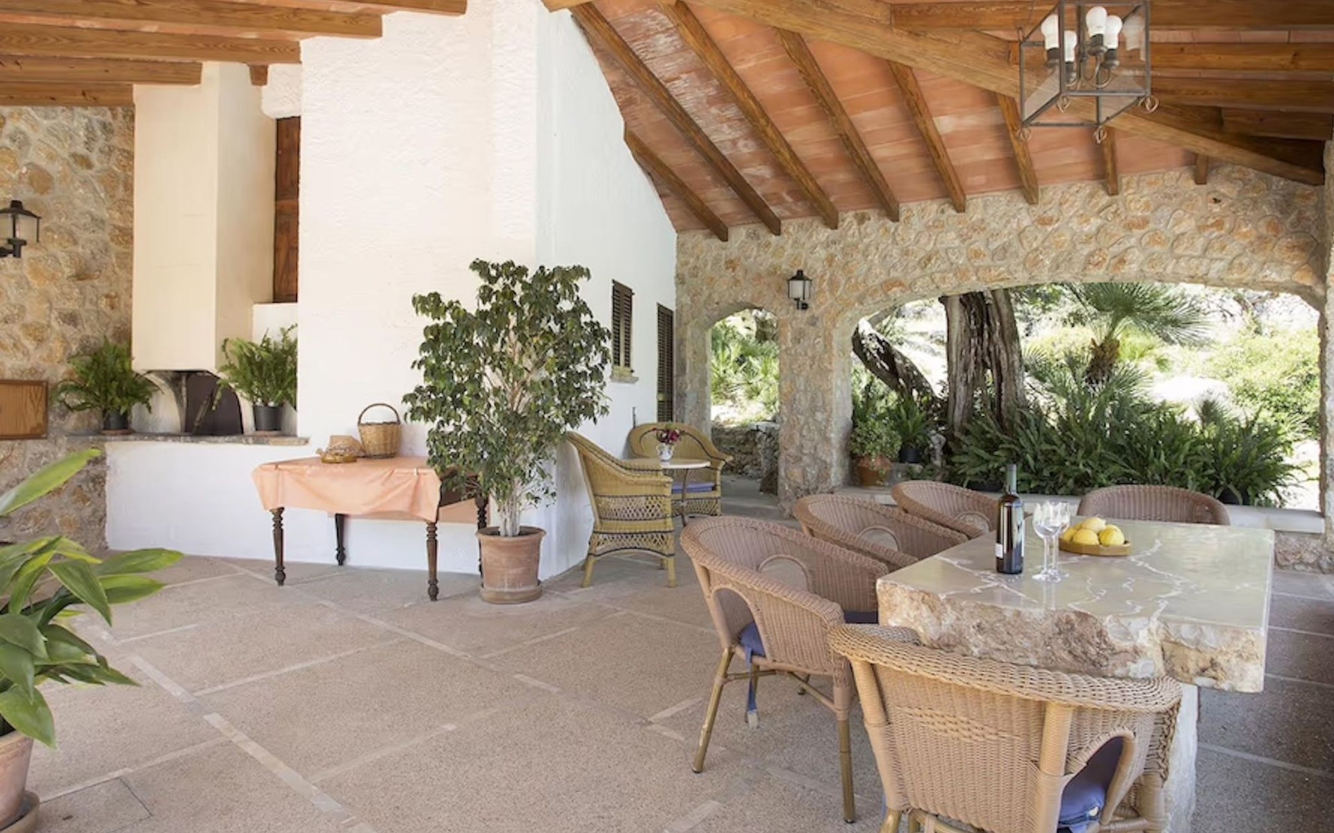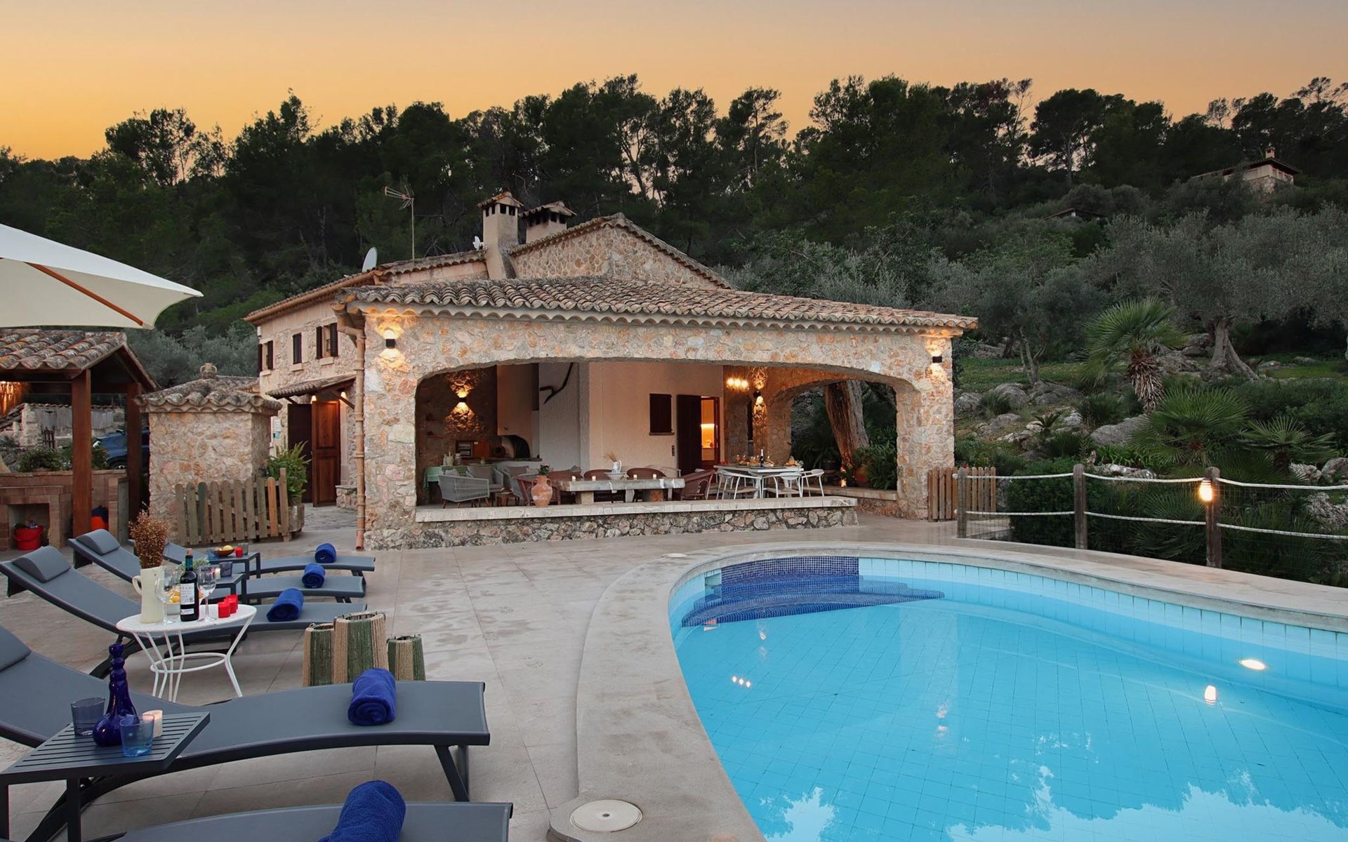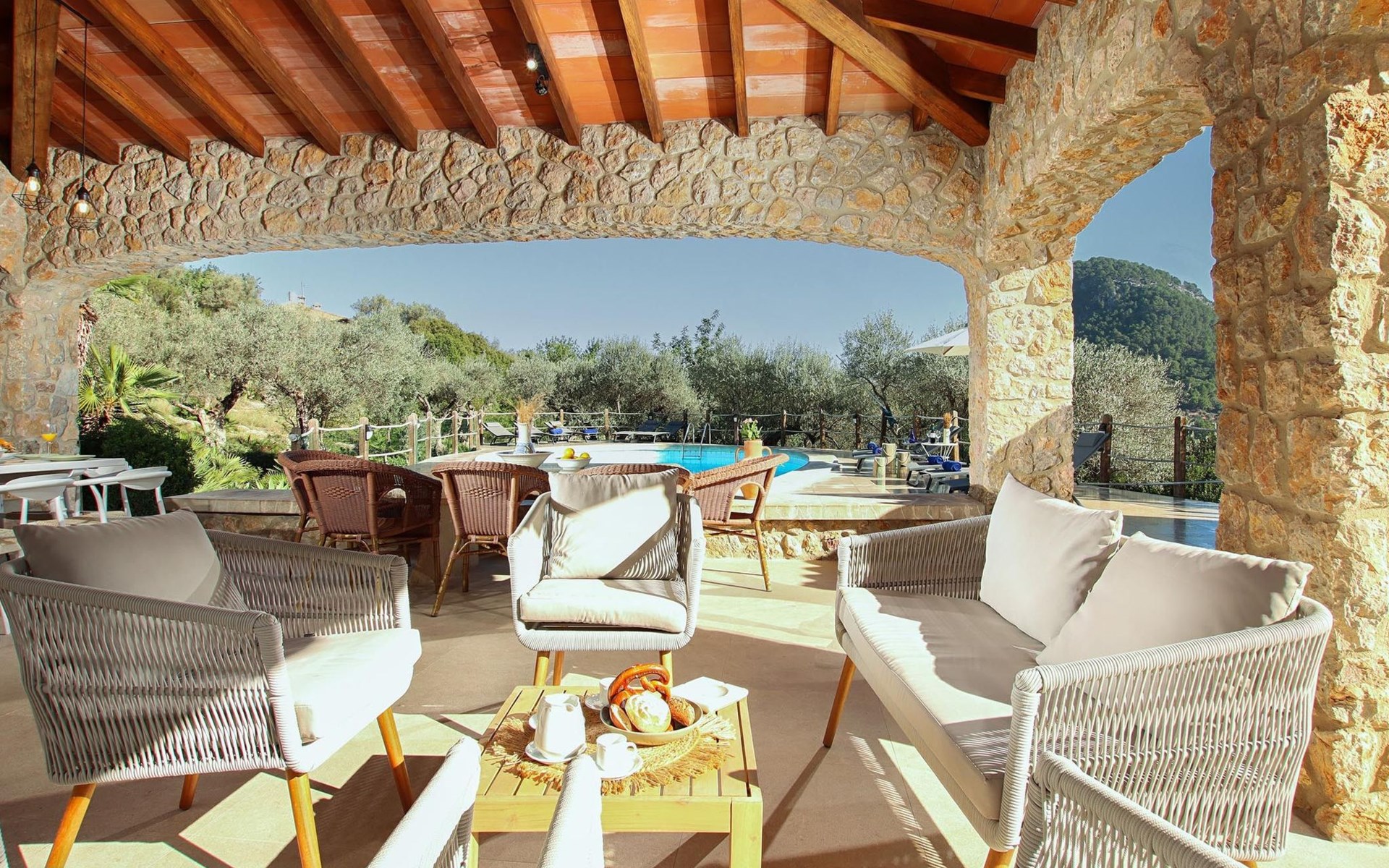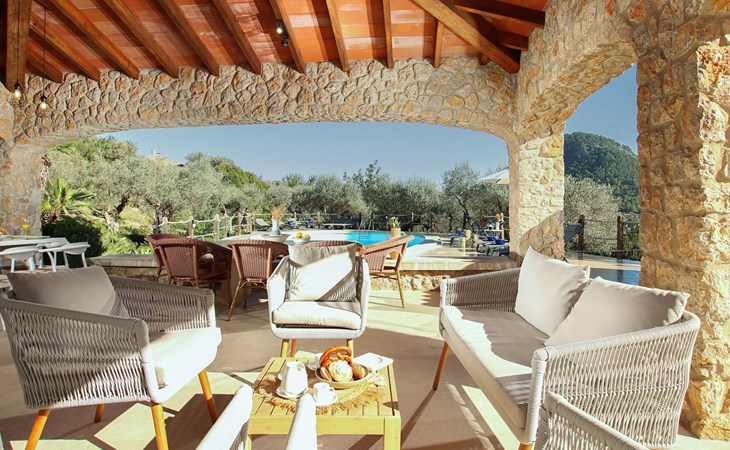 Das Haus ist über eine schmale private Zufahrt zu erreichen. Beim Betreten des Hauses finden Sie eine große Eingangshalle und einen Marés-Bogen, der das geräumige Wohn-/Esszimmer mit Steinwänden, einem großen Kamin und TV/DVD trennt. Die Küche ist komplett ausgestattet mit Mikrowelle, Geschirrspüler, Elektroherd, Kühl-/Gefrierschrank und einer Speisekammer. In der Küche befindet sich auch eine Tür, die nach draußen führt, und zwar auf die überdachte Terrasse, von der aus man direkt zum Poolbereich gelangt. Vom Wohnzimmer aus gibt es einen weiteren inneren Torbogen, der Zugang zu einem Doppelschlafzimmer mit eigenem Bad bietet, und neben dem Wohnzimmer gibt es ein weiteres Badezimmer mit einer halben Badewanne. Eine Treppe führt in das Obergeschoss, wo sich die restlichen Schlafzimmer befinden. Diese bestehen aus zwei Doppelschlafzimmern (eines mit eigenem Duschbad) und zwei schönen Zweibettzimmern. Am oberen Ende der Treppe befindet sich ein weiteres Badezimmer mit Dusche. Auf dieser Etage befindet sich auch eine Terrasse, von der aus man einen spektakulären Blick auf die umliegenden Berge und Täler genießen kann. Der Poolbereich und die Terrassen sind komplett mit Gartenmöbeln ausgestattet. Draußen gibt es auch einen Grill, ideal für die Zubereitung von Abendessen oder Mahlzeiten im Freien, umgeben von einer völlig natürlichen, ruhigen und friedlichen Umgebung. Schließlich ist es erwähnenswert, dass die Villa Alordes über einen kostenlosen Internetanschluss via Wi-Fi verfügt. -