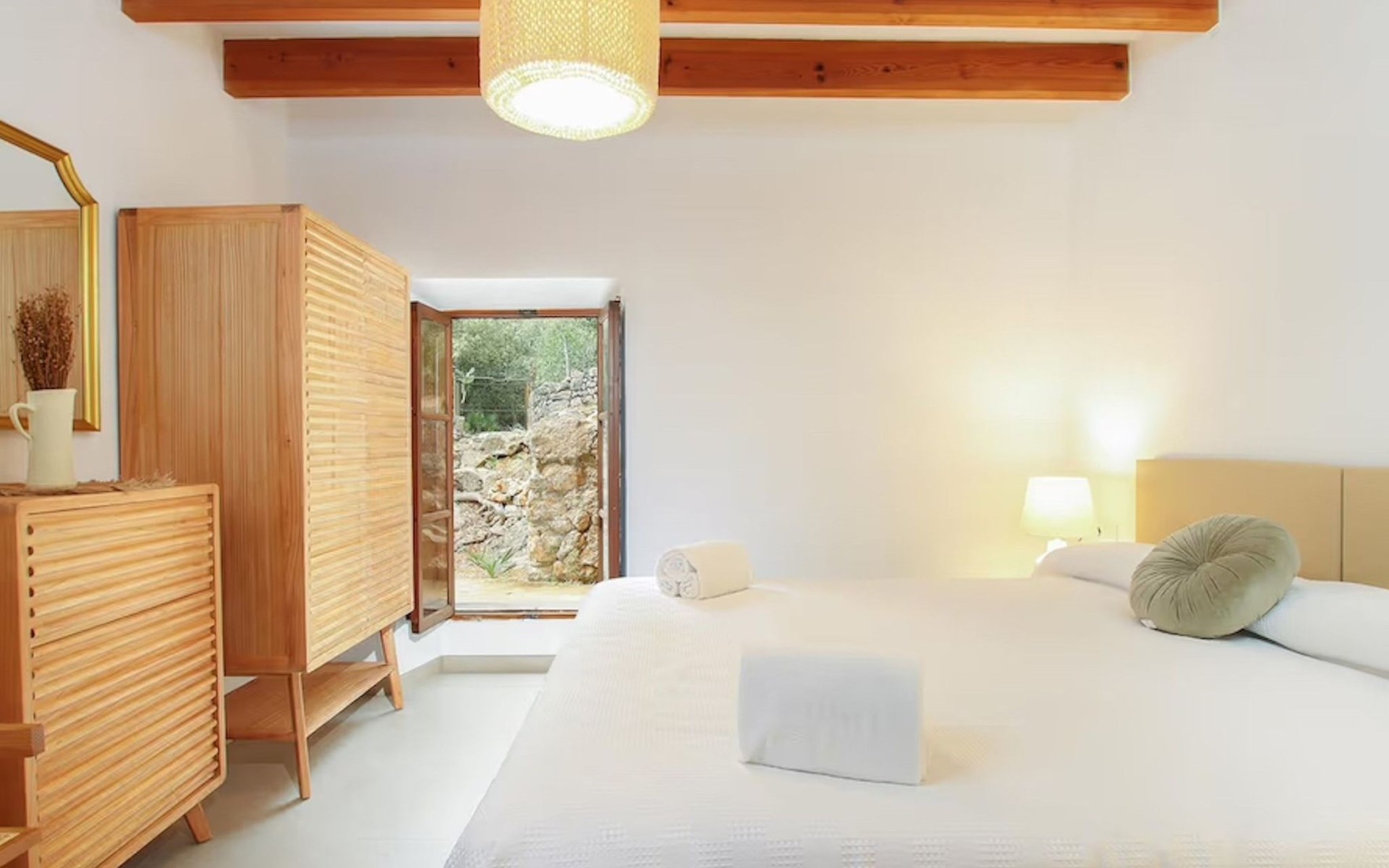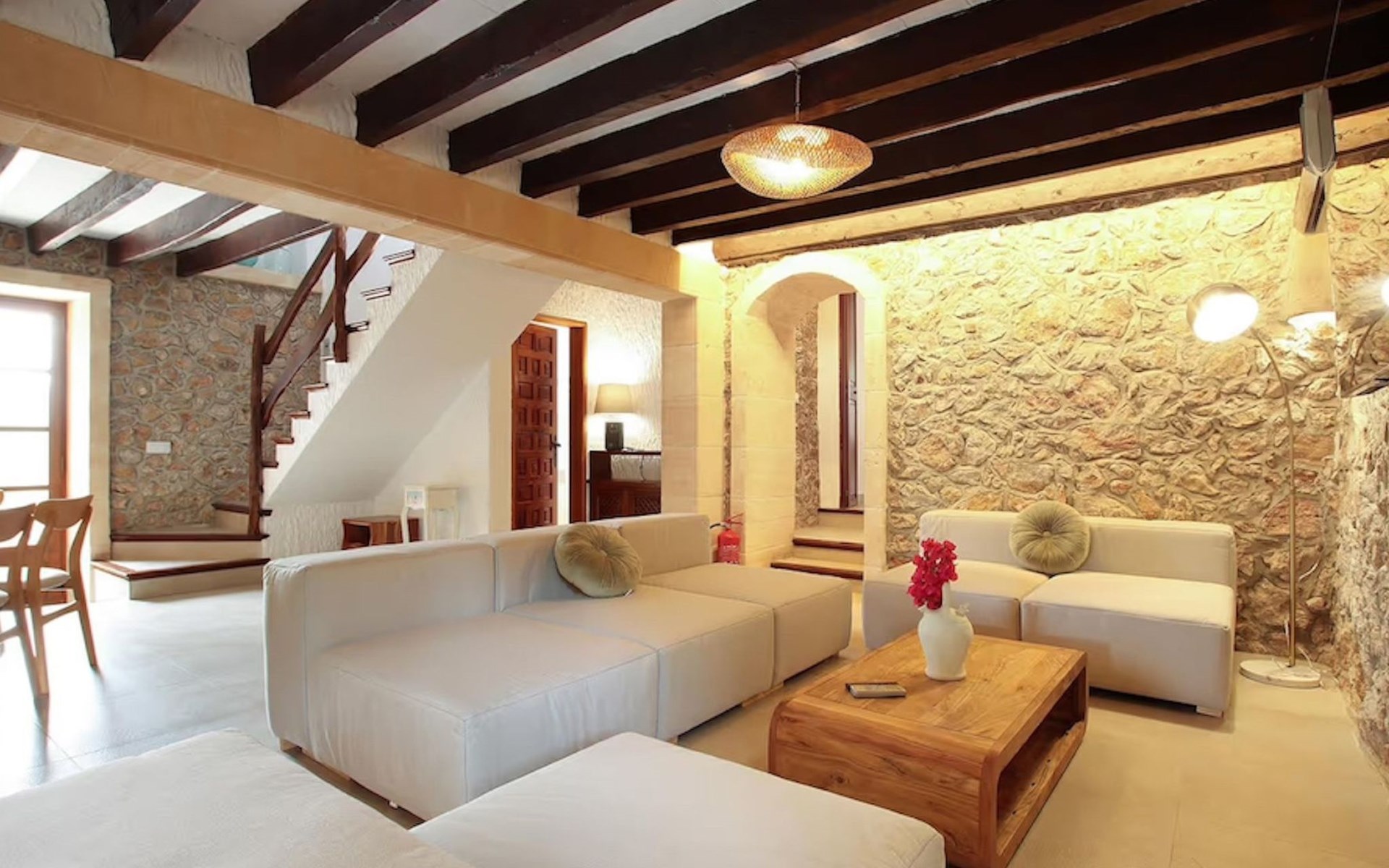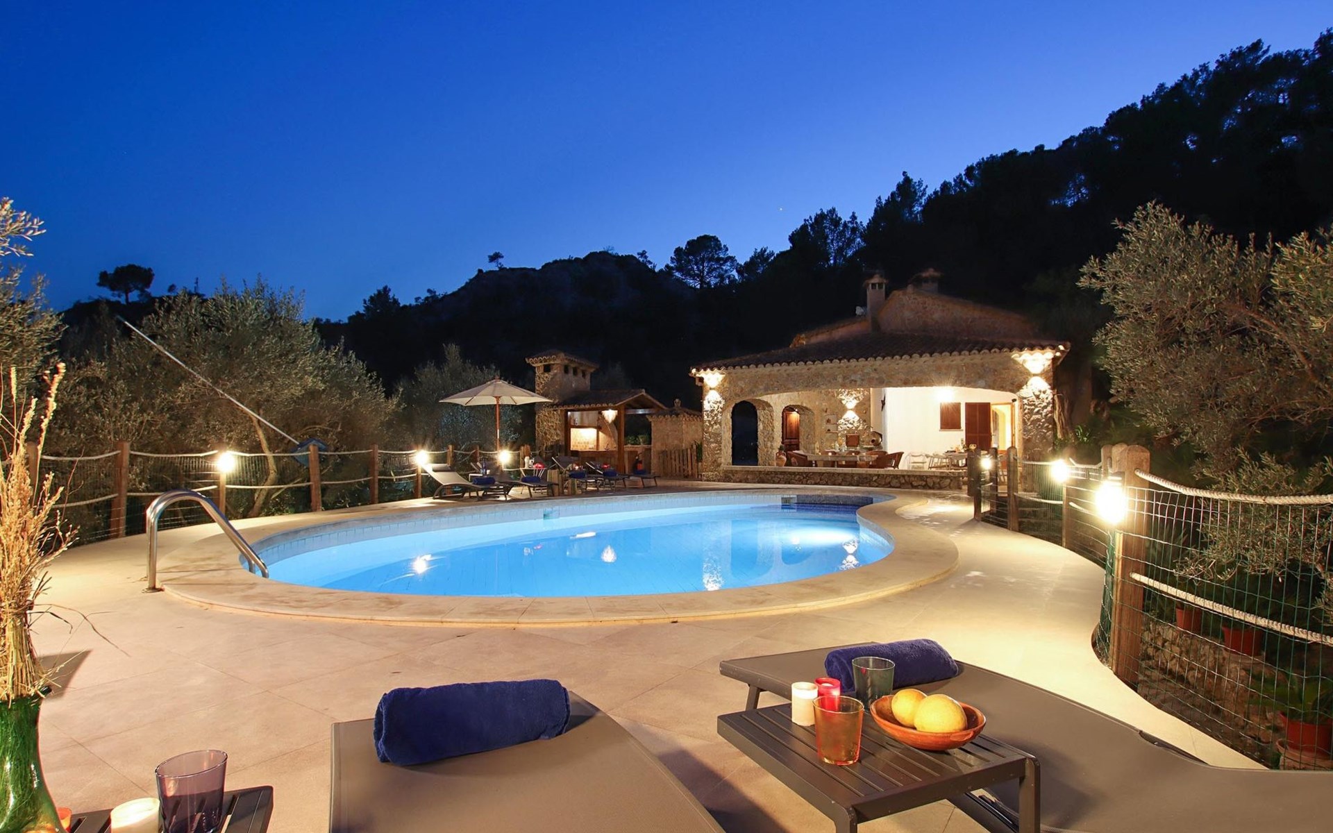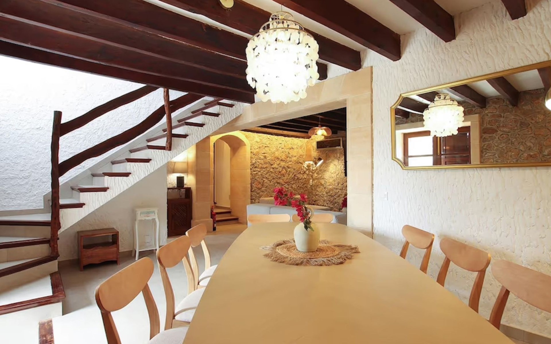 Das Haus ist über eine schmale private Zufahrt zu erreichen. Beim Betreten des Hauses finden Sie eine große Eingangshalle und einen Marés-Bogen, der das geräumige Wohn-/Esszimmer mit Steinwänden, einem großen Kamin und TV/DVD trennt. Die Küche ist komplett ausgestattet mit Mikrowelle, Geschirrspüler, Elektroherd, Kühl-/Gefrierschrank und einer Speisekammer. In der Küche befindet sich auch eine Tür, die nach draußen führt, und zwar auf die überdachte Terrasse, von der aus man direkt zum Poolbereich gelangt. Vom Wohnzimmer aus gibt es einen weiteren inneren Torbogen, der Zugang zu einem Doppelschlafzimmer mit eigenem Bad bietet, und neben dem Wohnzimmer gibt es ein weiteres Badezimmer mit einer halben Badewanne. Eine Treppe führt in das Obergeschoss, wo sich die restlichen Schlafzimmer befinden. Diese bestehen aus zwei Doppelschlafzimmern (eines mit eigenem Duschbad) und zwei schönen Zweibettzimmern. Am oberen Ende der Treppe befindet sich ein weiteres Badezimmer mit Dusche. Auf dieser Etage befindet sich auch eine Terrasse, von der aus man einen spektakulären Blick auf die umliegenden Berge und Täler genießen kann. Der Poolbereich und die Terrassen sind komplett mit Gartenmöbeln ausgestattet. Draußen gibt es auch einen Grill, ideal für die Zubereitung von Abendessen oder Mahlzeiten im Freien, umgeben von einer völlig natürlichen, ruhigen und friedlichen Umgebung. Schließlich ist es erwähnenswert, dass die Villa Alordes über einen kostenlosen Internetanschluss via Wi-Fi verfügt. -