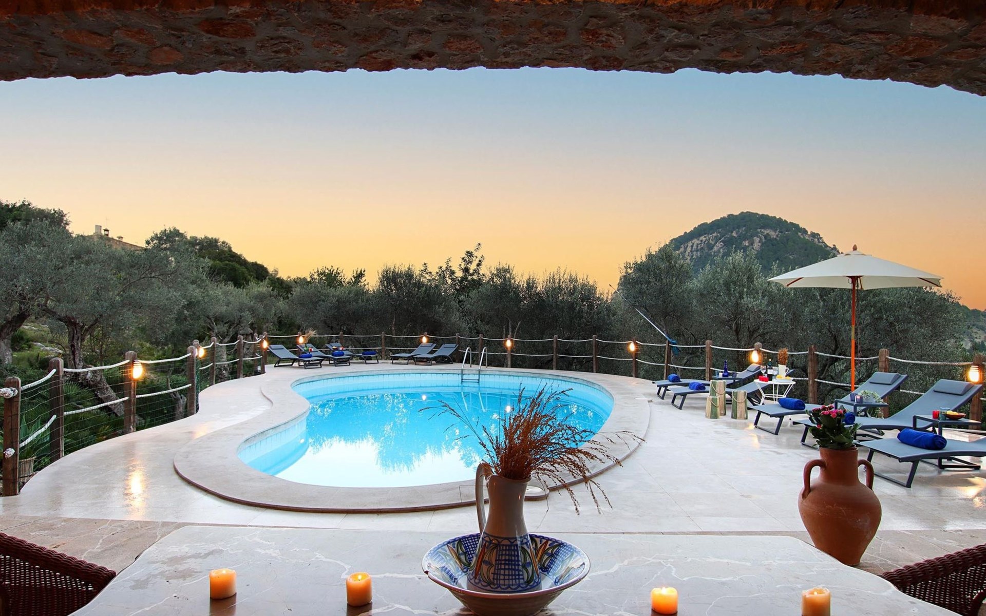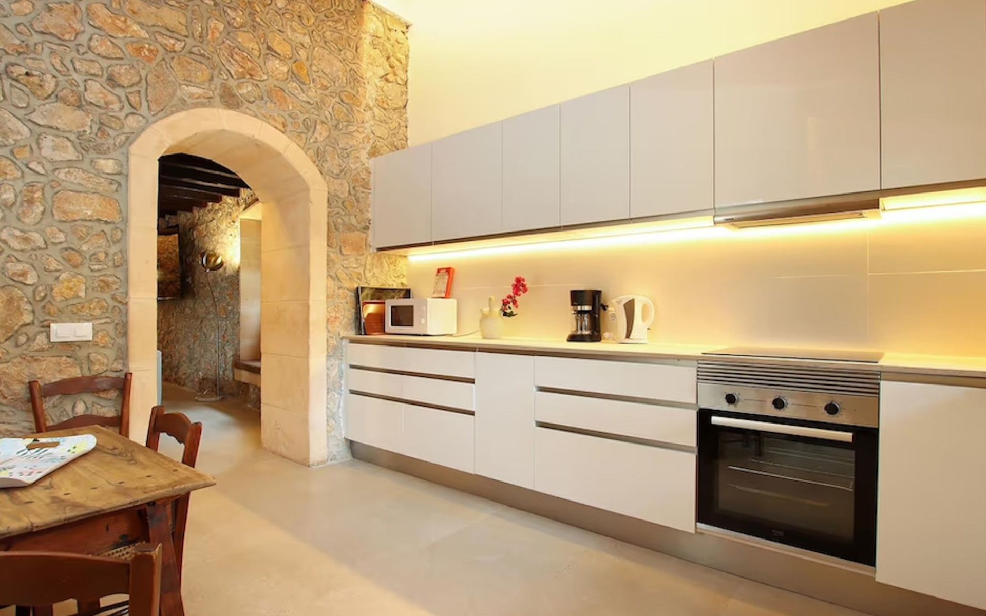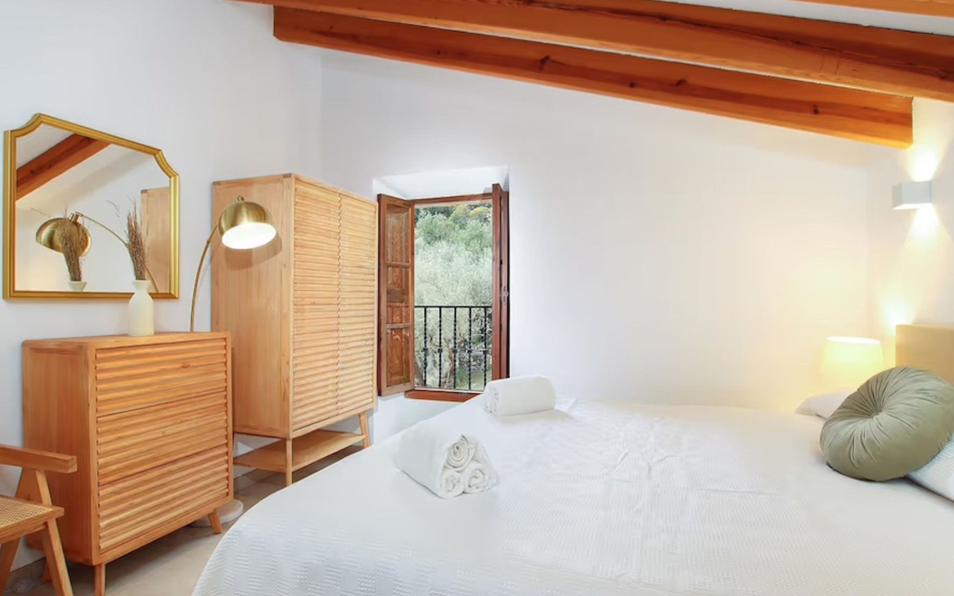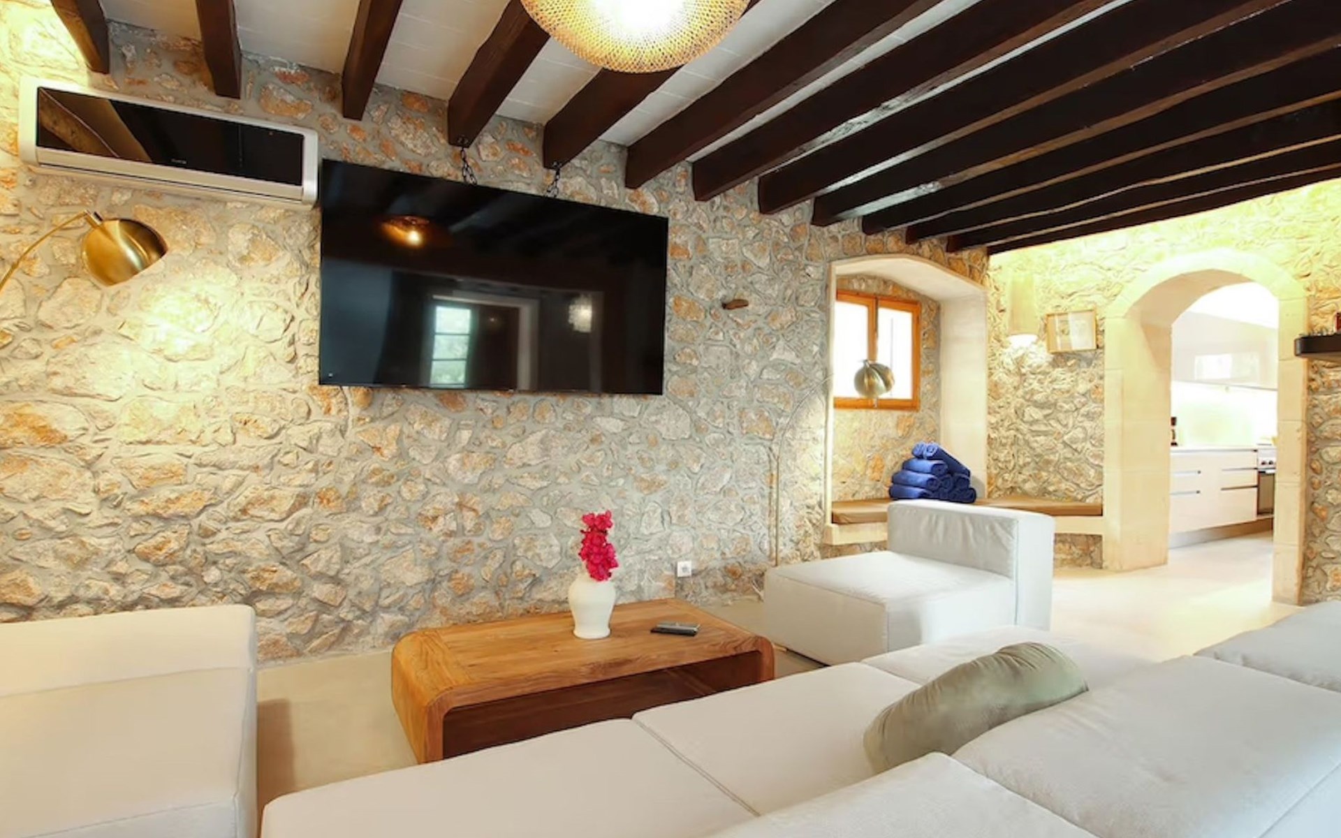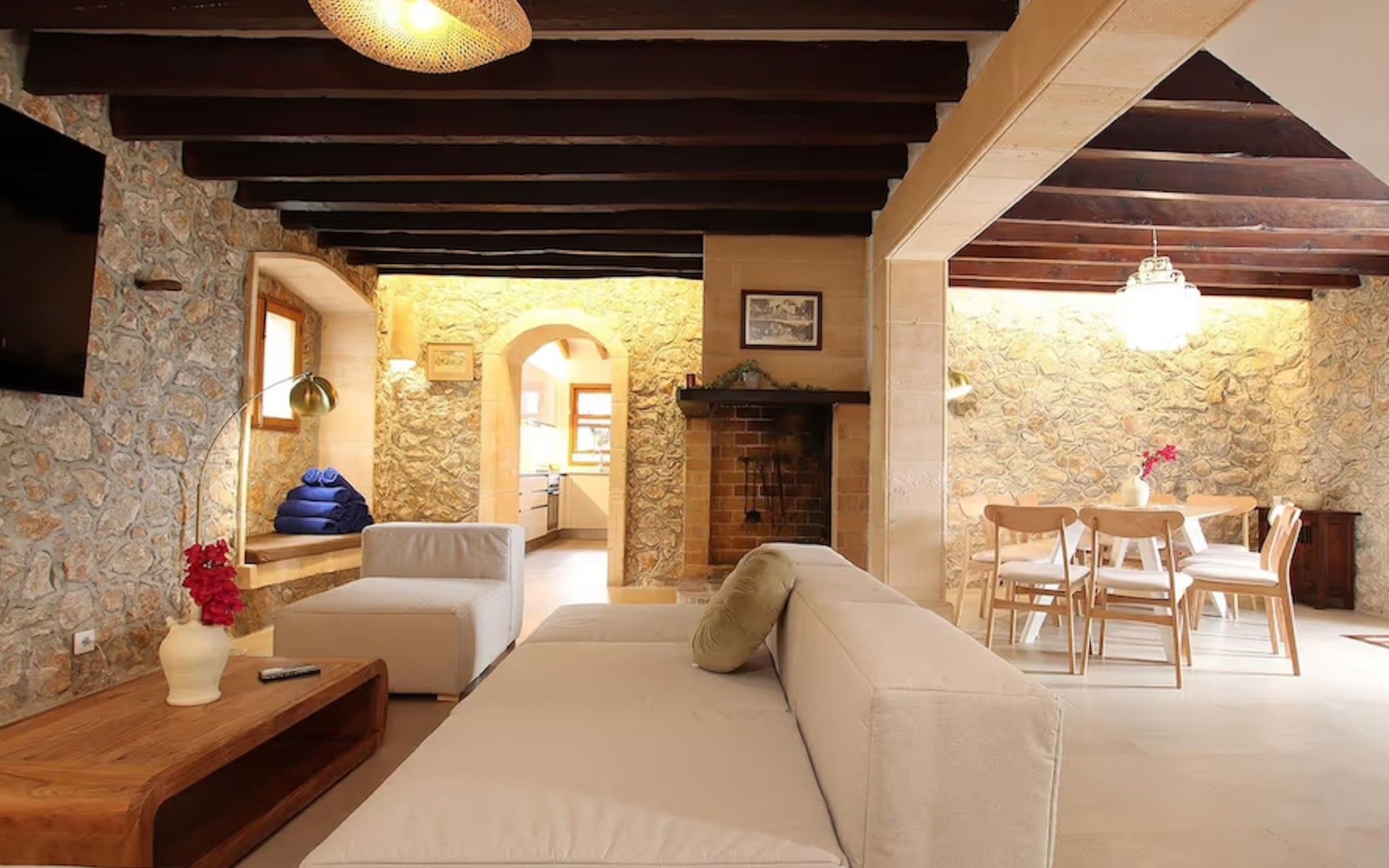 Das Haus ist über eine schmale private Zufahrt zu erreichen. Beim Betreten des Hauses finden Sie eine große Eingangshalle und einen Marés-Bogen, der das geräumige Wohn-/Esszimmer mit Steinwänden, einem großen Kamin und TV/DVD trennt. Die Küche ist komplett ausgestattet mit Mikrowelle, Geschirrspüler, Elektroherd, Kühl-/Gefrierschrank und einer Speisekammer. In der Küche befindet sich auch eine Tür, die nach draußen führt, und zwar auf die überdachte Terrasse, von der aus man direkt zum Poolbereich gelangt. Vom Wohnzimmer aus gibt es einen weiteren inneren Torbogen, der Zugang zu einem Doppelschlafzimmer mit eigenem Bad bietet, und neben dem Wohnzimmer gibt es ein weiteres Badezimmer mit einer halben Badewanne. Eine Treppe führt in das Obergeschoss, wo sich die restlichen Schlafzimmer befinden. Diese bestehen aus zwei Doppelschlafzimmern (eines mit eigenem Duschbad) und zwei schönen Zweibettzimmern. Am oberen Ende der Treppe befindet sich ein weiteres Badezimmer mit Dusche. Auf dieser Etage befindet sich auch eine Terrasse, von der aus man einen spektakulären Blick auf die umliegenden Berge und Täler genießen kann. Der Poolbereich und die Terrassen sind komplett mit Gartenmöbeln ausgestattet. Draußen gibt es auch einen Grill, ideal für die Zubereitung von Abendessen oder Mahlzeiten im Freien, umgeben von einer völlig natürlichen, ruhigen und friedlichen Umgebung. Schließlich ist es erwähnenswert, dass die Villa Alordes über einen kostenlosen Internetanschluss via Wi-Fi verfügt. -