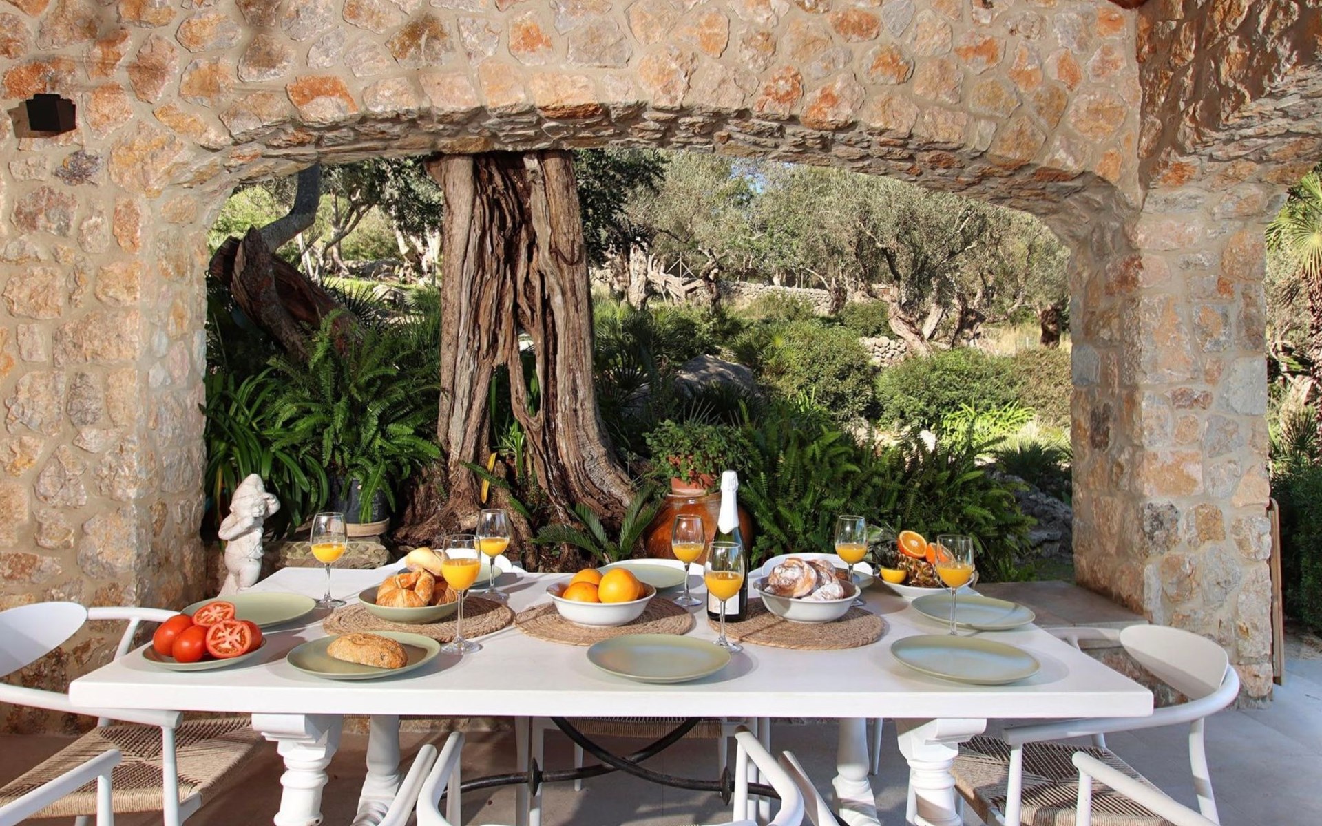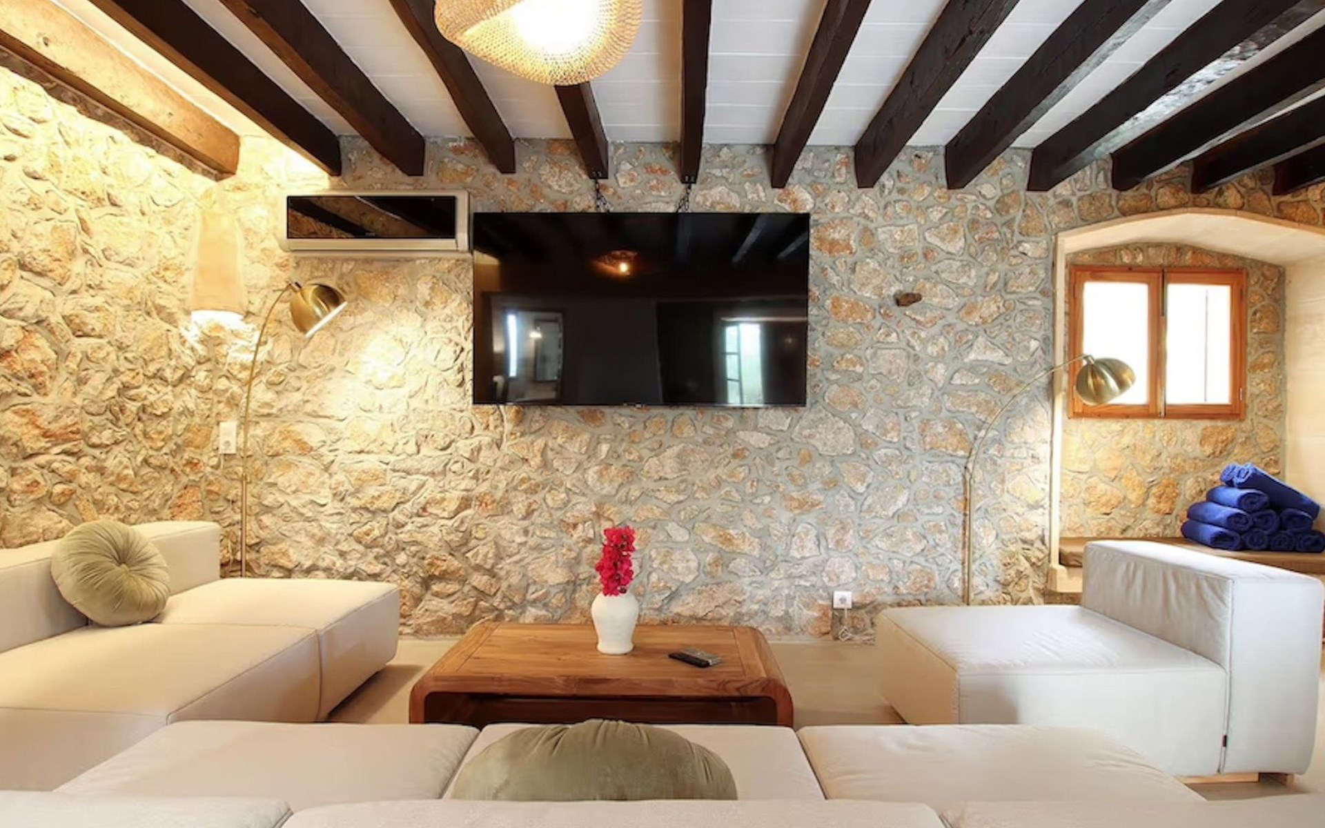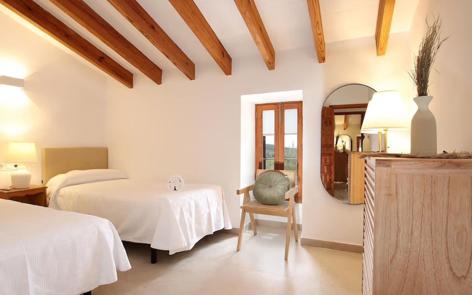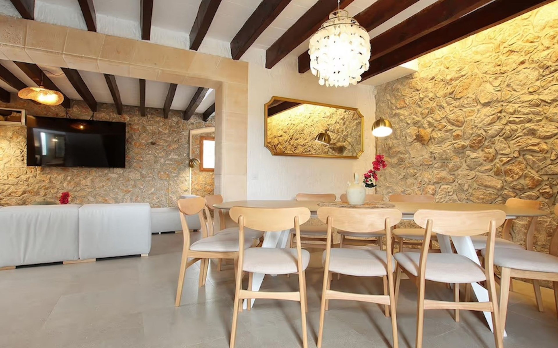 Das Haus ist über eine schmale private Zufahrt zu erreichen. Beim Betreten des Hauses finden Sie eine große Eingangshalle und einen Marés-Bogen, der das geräumige Wohn-/Esszimmer mit Steinwänden, einem großen Kamin und TV/DVD trennt. Die Küche ist komplett ausgestattet mit Mikrowelle, Geschirrspüler, Elektroherd, Kühl-/Gefrierschrank und einer Speisekammer. In der Küche befindet sich auch eine Tür, die nach draußen führt, und zwar auf die überdachte Terrasse, von der aus man direkt zum Poolbereich gelangt. Vom Wohnzimmer aus gibt es einen weiteren inneren Torbogen, der Zugang zu einem Doppelschlafzimmer mit eigenem Bad bietet, und neben dem Wohnzimmer gibt es ein weiteres Badezimmer mit einer halben Badewanne. Eine Treppe führt in das Obergeschoss, wo sich die restlichen Schlafzimmer befinden. Diese bestehen aus zwei Doppelschlafzimmern (eines mit eigenem Duschbad) und zwei schönen Zweibettzimmern. Am oberen Ende der Treppe befindet sich ein weiteres Badezimmer mit Dusche. Auf dieser Etage befindet sich auch eine Terrasse, von der aus man einen spektakulären Blick auf die umliegenden Berge und Täler genießen kann. Der Poolbereich und die Terrassen sind komplett mit Gartenmöbeln ausgestattet. Draußen gibt es auch einen Grill, ideal für die Zubereitung von Abendessen oder Mahlzeiten im Freien, umgeben von einer völlig natürlichen, ruhigen und friedlichen Umgebung. Schließlich ist es erwähnenswert, dass die Villa Alordes über einen kostenlosen Internetanschluss via Wi-Fi verfügt. -