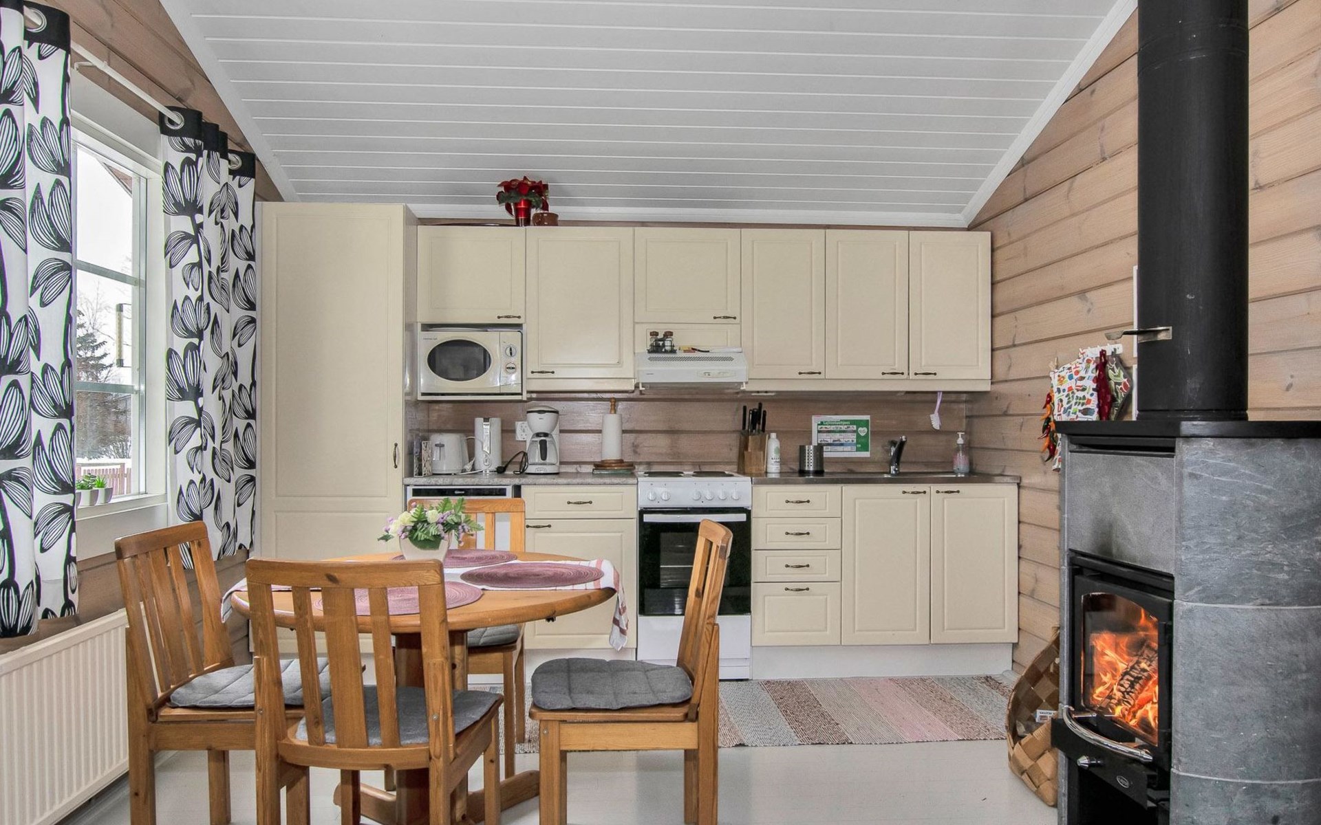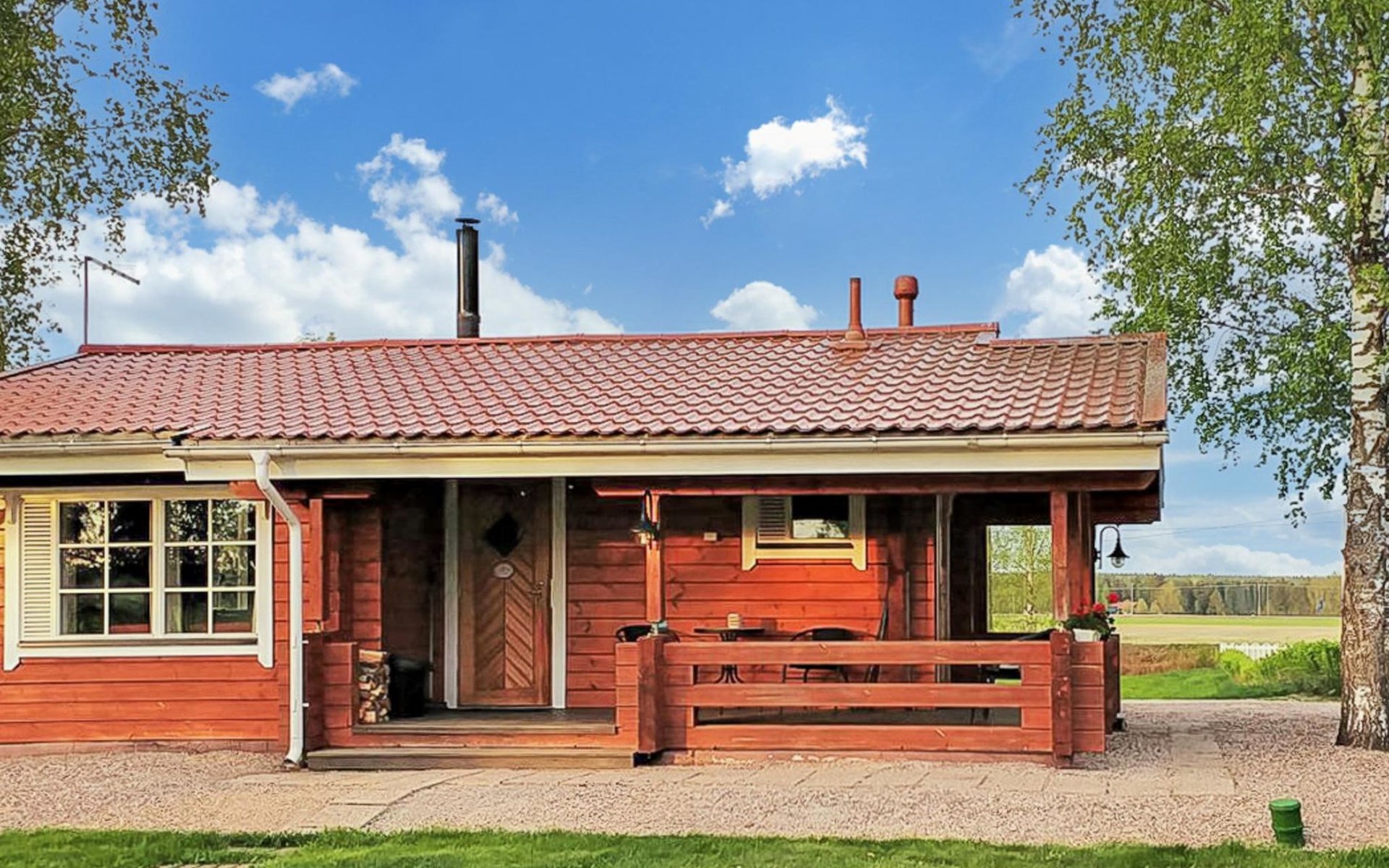 In the yard, spacious cooking hut with a barbecue (use charcoal for barbecuing). Villa Henna’s terrace offers a nice view overlooking the sunset. Villa Henna got a new interior look when the pine walls and ceiling and floor were painted in 2018.