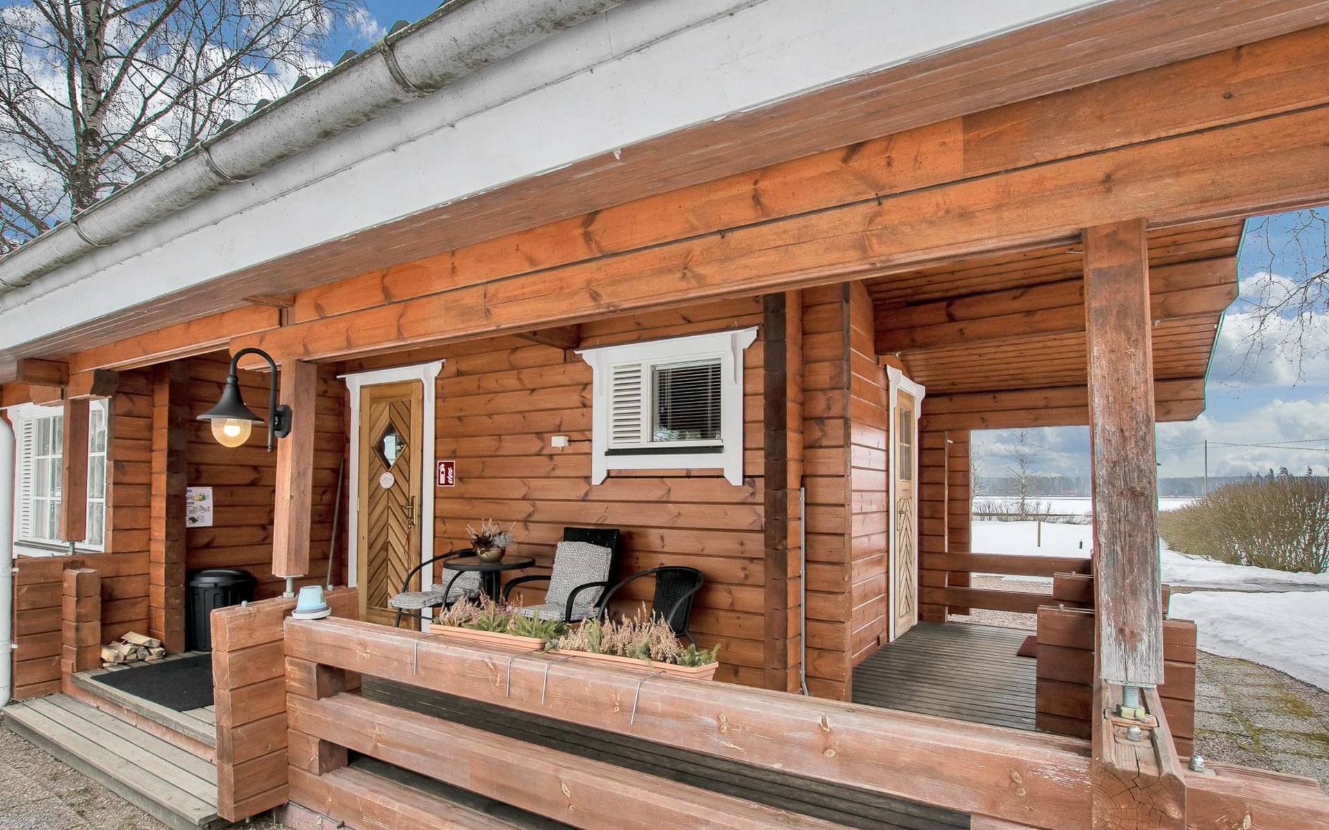 In connection with the cabin, covered terrace with furniture.