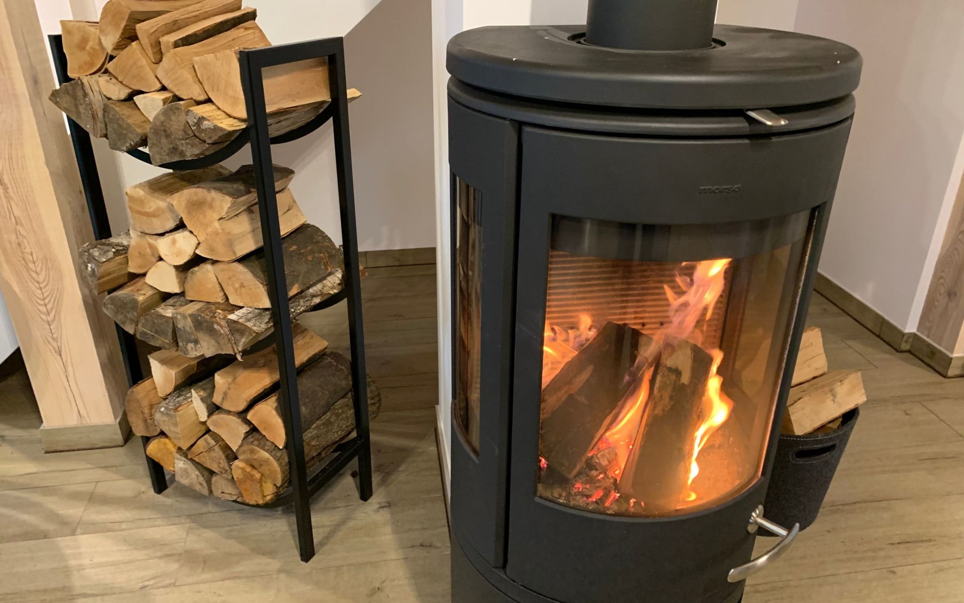 Im Inneren des Hauses erwarten Sie moderner Komfort und Gemütlichkeit. Im Erdgeschoss befinden sich ein einladendes Wohnzimmer, ein Esszimmer, eine voll ausgestattete Küche mit Geschirrspüler, Backofen und Induktionsherd sowie ein Gäste-WC mit Dusche. Der Wohnraum wird durch einen Holzofen zusätzlich erwärmt. Das Obergeschoss bietet ein geräumiges Duschbad mit zwei Waschbecken und drei behagliche Schlafzimmer, die Platz für insgesamt 6 Personen bieten: Ein Elternschlafzimmer mit Doppelbett, ein Gästezimmer mit Doppelbett und ein Kinderzimmer mit zwei Einzelbetten.
