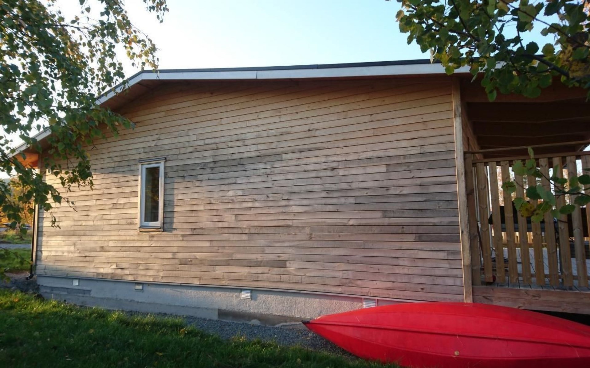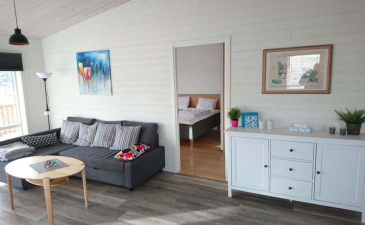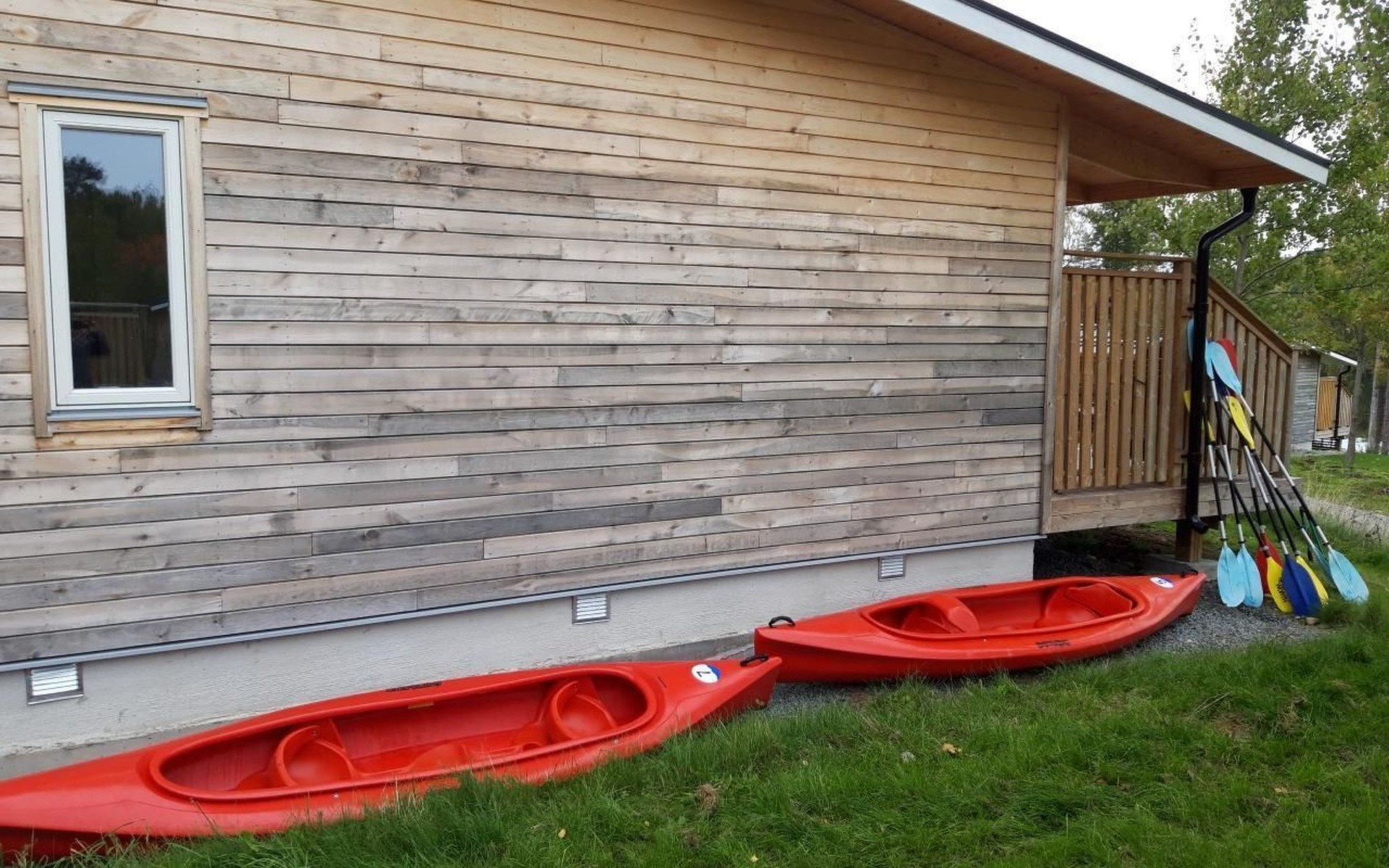 Die Wohnfläche des Ferienhauses beträgt ca. 65 qm und verteilt sich auf eine Ebene. Über die teilüberdachte Terrasse geht es zum Hauseingang. Du befindest dich direkt im großen, hellen Wohn- und Küchenbereich. Der Wohnbereich, mit einem gemütlichen Sofa und einem TV mit internationalen und schwedischen Programmen. Vom Wohnbereich aus kannst du bereits den See sehen! Die Küche verfügt unter anderem über eine Spülmaschine und einem 3-Platten-Cerankochfeld. Zwei Schlafzimmer und das Badezimmer sind jeweils über den großen und offenen Wohn- und Küchenbereich erreichbar. Das Badezimmer ist sehr geräumig und verfügt über ein WC, eine Dusche und eine Waschmaschine. Das erste Schlafzimmer ist mit zwei Einzelbetten eingerichtet, das zweite Schlafzimmer mit einem Doppelbett. Über das zweite Schlafzimmer erreichst du die Terrasse. Die Terrasse hat einen tollen Seeblick und verfügt über Terrassenmöbel und einen Grill. Im Mietpreis sind zwei zwei Personen Kajaks enthalten. Schwimmwesten in verschiedenen größen für Kinder und Erwachsene haben wir selbstverständlich auch.
