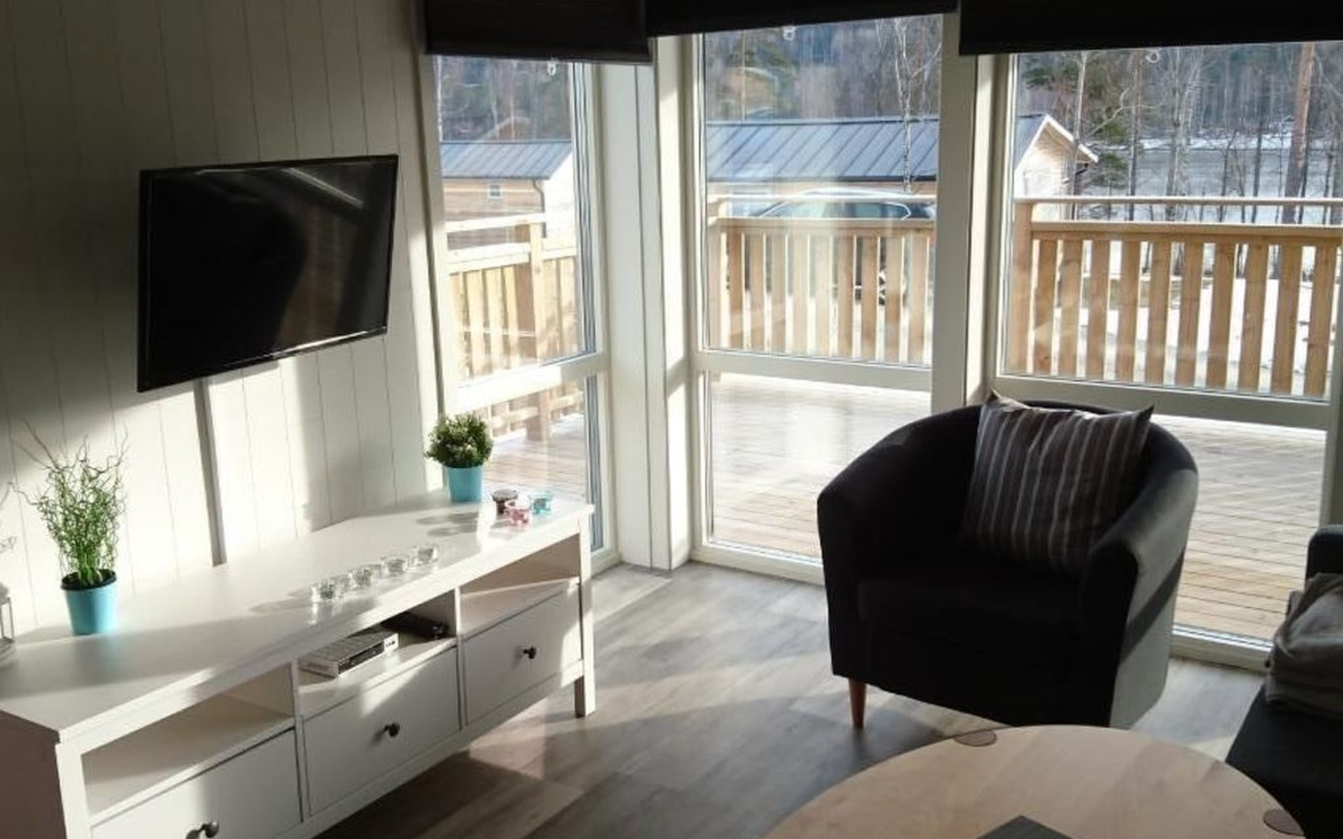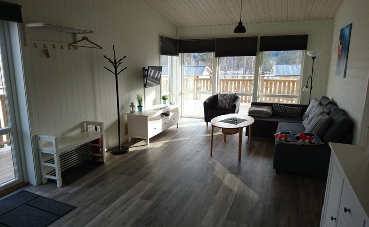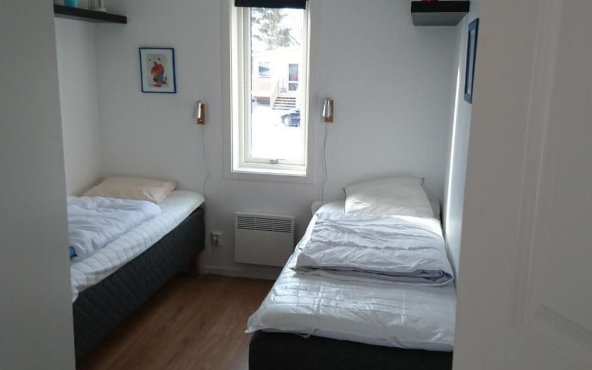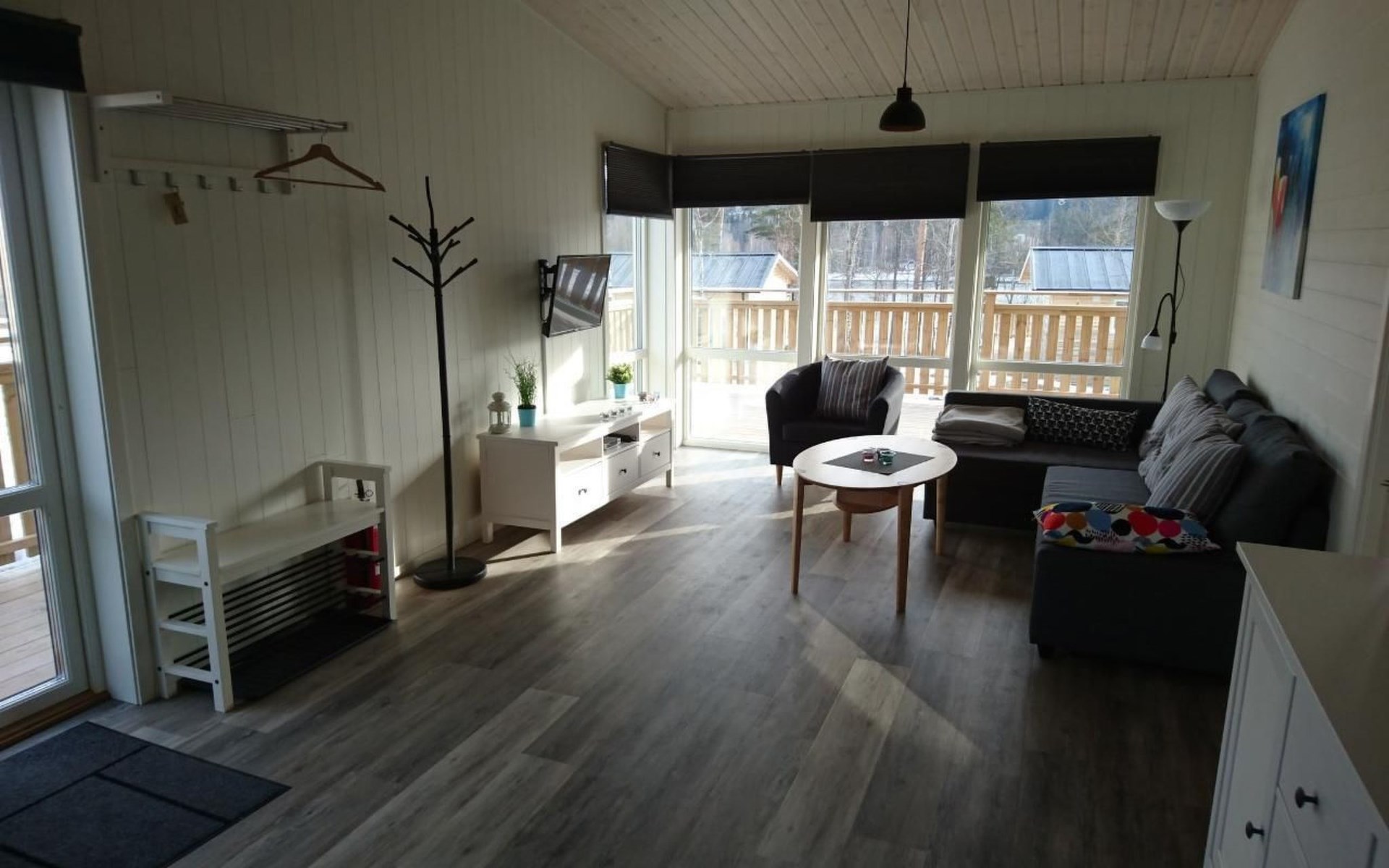 Die Wohnfläche des Ferienhauses beträgt ca. 65 qm und verteilt sich auf eine Ebene. Über die teilüberdachte Terrasse geht es zum Hauseingang. Du befindest dich direkt im großen, hellen Wohn- und Küchenbereich. Der Wohnbereich, mit einem gemütlichen Sofa und einem TV mit internationalen und schwedischen Programmen. Vom Wohnbereich aus kannst du bereits den See sehen! Die Küche verfügt unter anderem über eine Spülmaschine und einem 3-Platten-Cerankochfeld. Zwei Schlafzimmer und das Badezimmer sind jeweils über den großen und offenen Wohn- und Küchenbereich erreichbar. Das Badezimmer ist sehr geräumig und verfügt über ein WC, eine Dusche und eine Waschmaschine. Das erste Schlafzimmer ist mit zwei Einzelbetten eingerichtet, das zweite Schlafzimmer mit einem Doppelbett. Über das zweite Schlafzimmer erreichst du die Terrasse. Die Terrasse hat einen tollen Seeblick und verfügt über Terrassenmöbel und einen Grill. Im Mietpreis sind zwei zwei Personen Kajaks enthalten. Schwimmwesten in verschiedenen größen für Kinder und Erwachsene haben wir selbstverständlich auch.