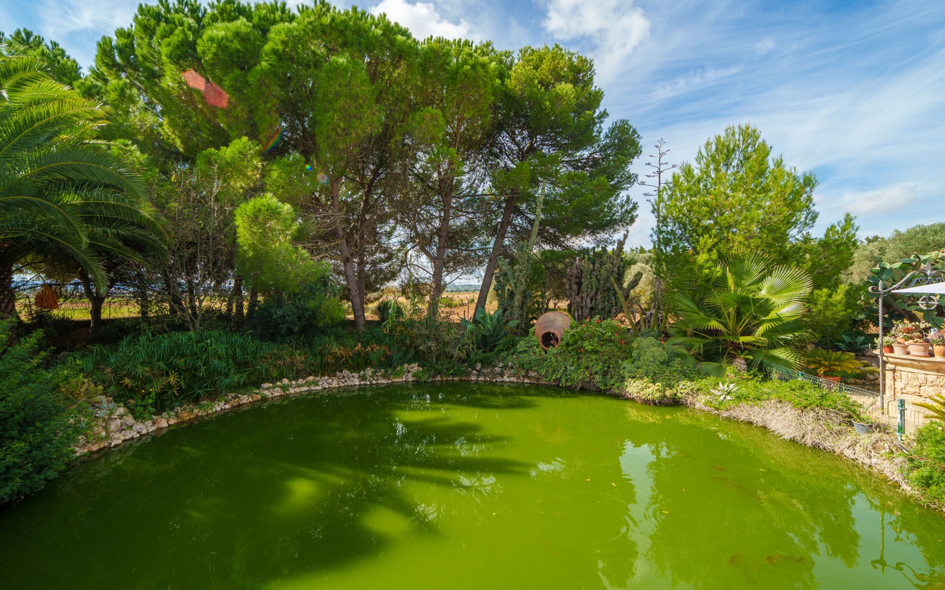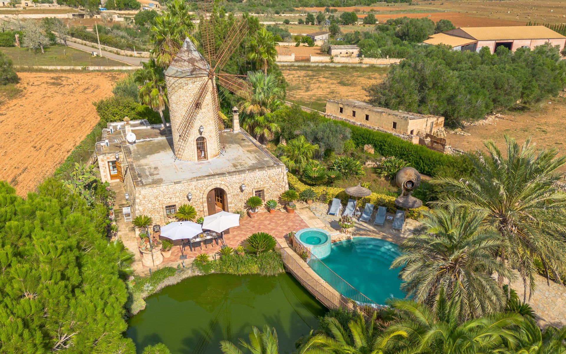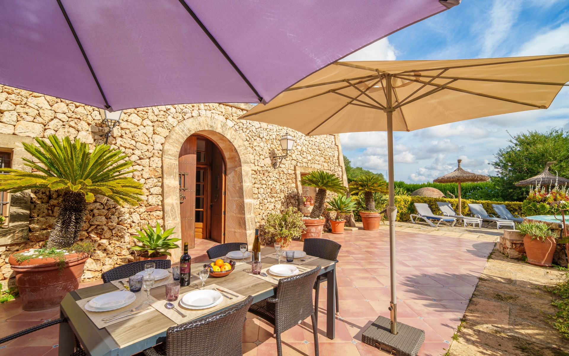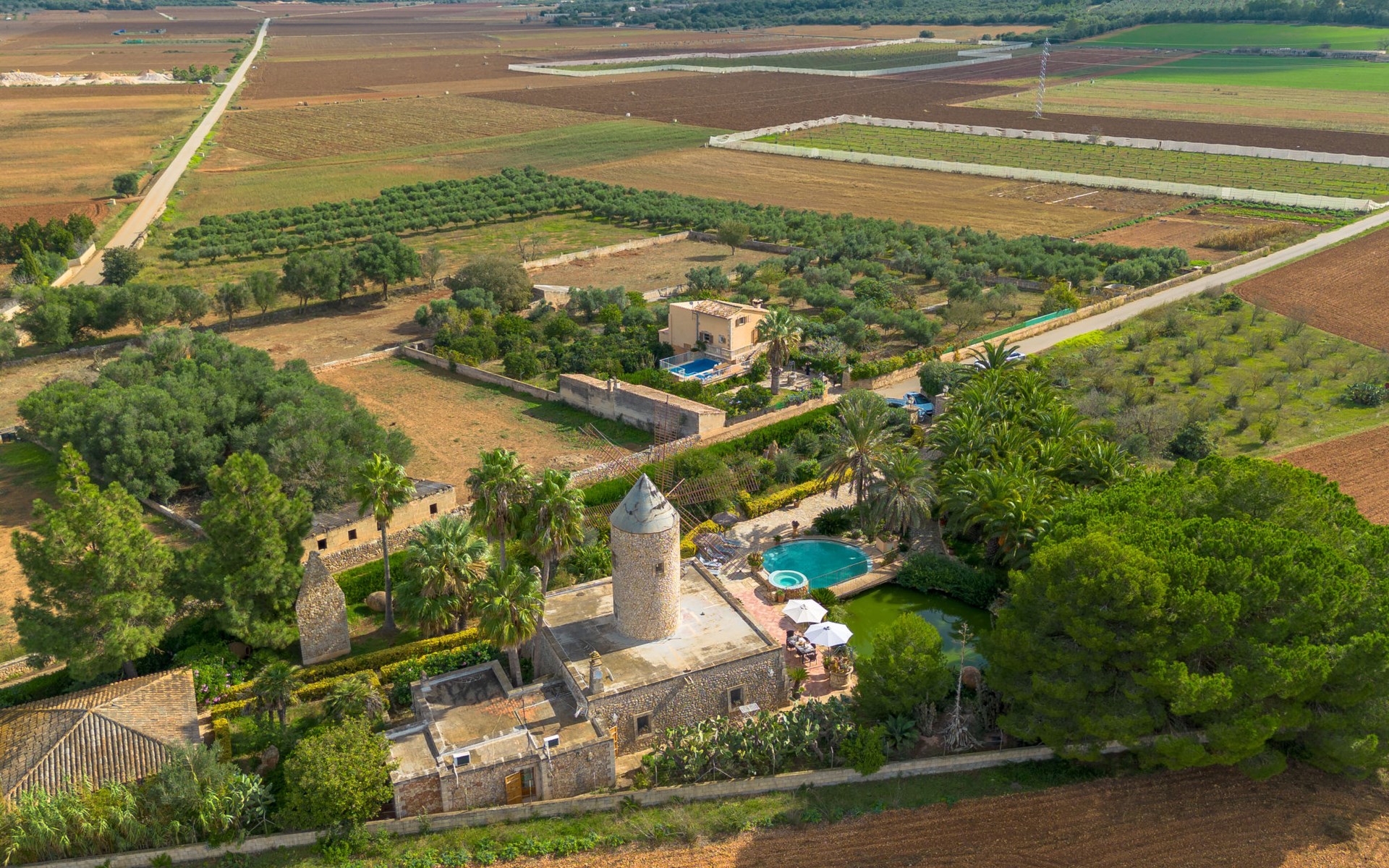 Sehr schöne, komfortable Villa "Son Siurana", umgeben von Feldern. Ausserhalb des Ortes, 850 m vom Zentrum von Ariany, ruhige, sonnige Lage, 18 km vom Meer, im Grünen. Zur Alleinbenutzung: Grundstück (eingezäunt), schöner Garten mit Pflanzen und Bäumen, Naturteich, Schwimmbad rund (8 m Durchmesser, 50 - 220 cm tief, saisonale Verfügbarkeit: 01.Jan. - 31.Dez.). Aussendusche, Sitzplatz, Gartenmöbel, Grill, Poolpflege durch den Besitzer/Gärtner. Im Hause: Internetzugang, Wireless LAN, Einstellraum für Fahrräder, Klimaanlage. Lebensmittelgeschäft 1.3 km, Supermarkt 5.5 km, Bar 1.2 km, Bäckerei 1.2 km, Zentrum zu Fuss in 10 Minuten erreichbar, Bushaltestelle "Ariany" 850 m, Sandstrand "Playas de Muro - Can Picafort" 18 km. Sporthafen 20 km, Golfplatz (18 Loch) 31.2 km, Sportzentrum 1.6 km, Radweg 50 m. Nahe gelegene Sehenswürdigkeiten: Pueblos:Sta. Margalida,Petra,Vilafranca, Manacor. Wandergebiete: Ruta de Petra a Sa Valleta, Rutas Cicloturistas, Serra de Tramuntana. Bitte beachten: Fahrzeug empfohlen. Geeignet für Senioren. Objekt geeignet für 6 Erwachsene. Der Besitzer akzeptiert keine Jugendgruppen. Flugplatz 44 km vom Haus. Ferienwohnung Ref. ES8900.101.1 befindet sich auf dem gleichen Grundstück. In dieser Anlage zusätzlich mietbar: 2 Chalets.
