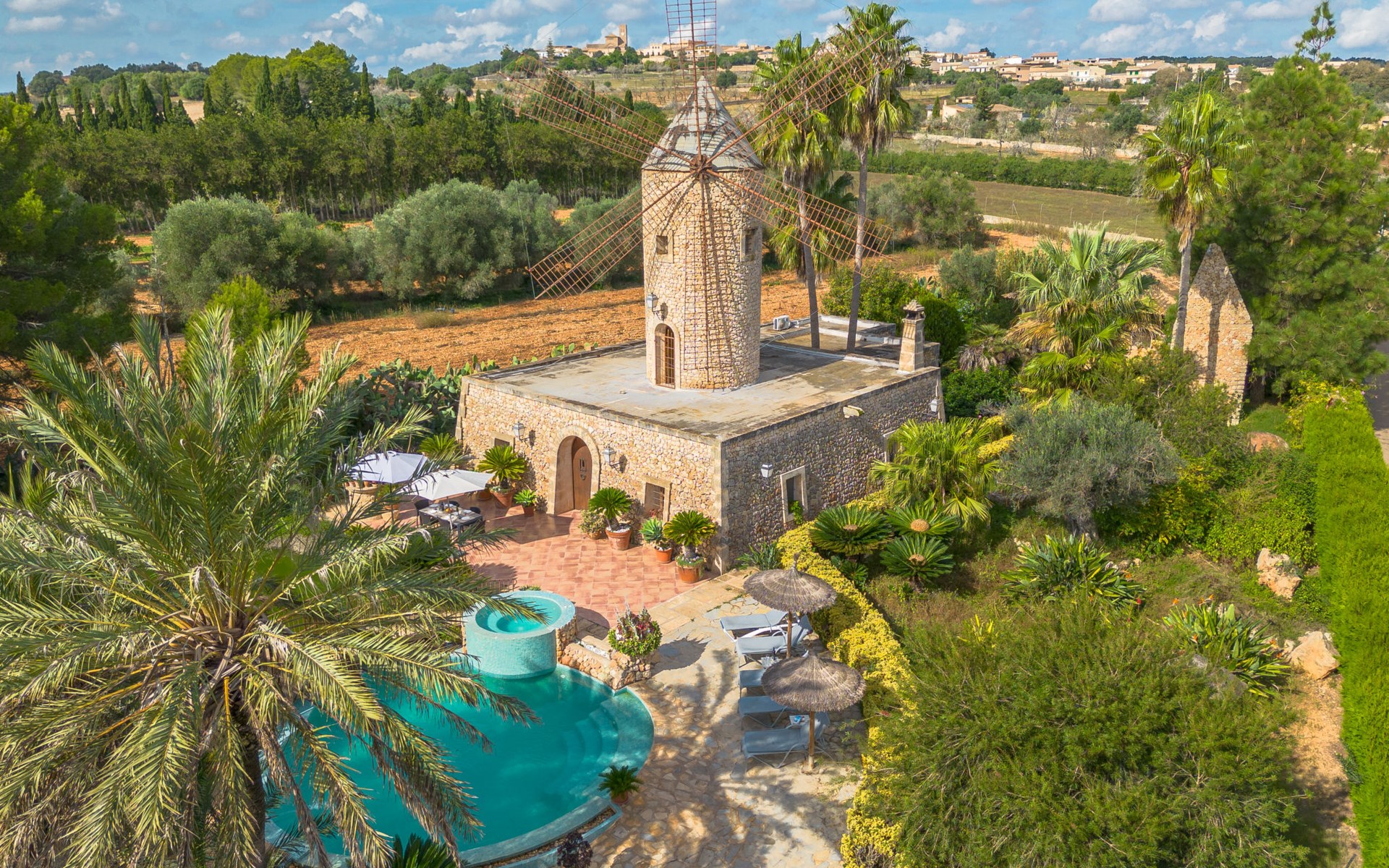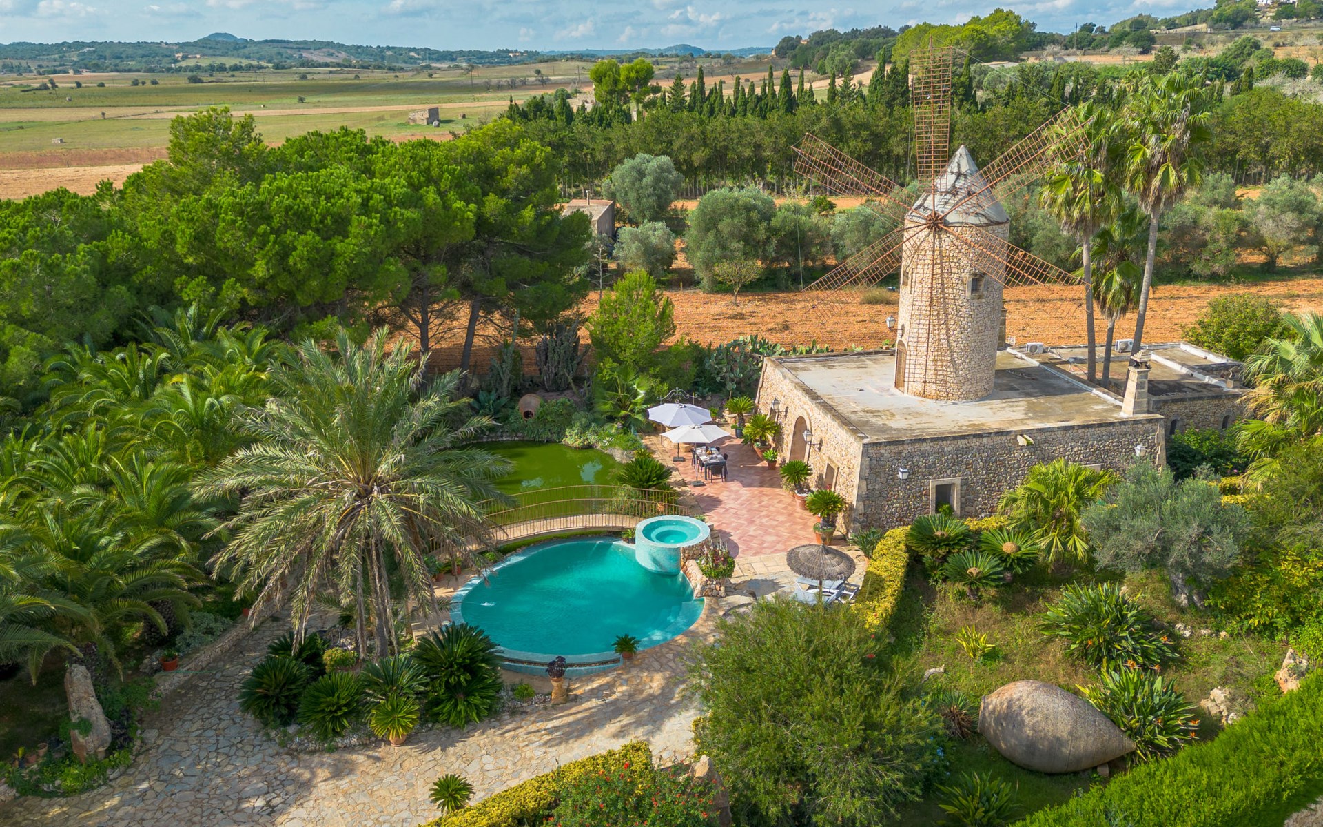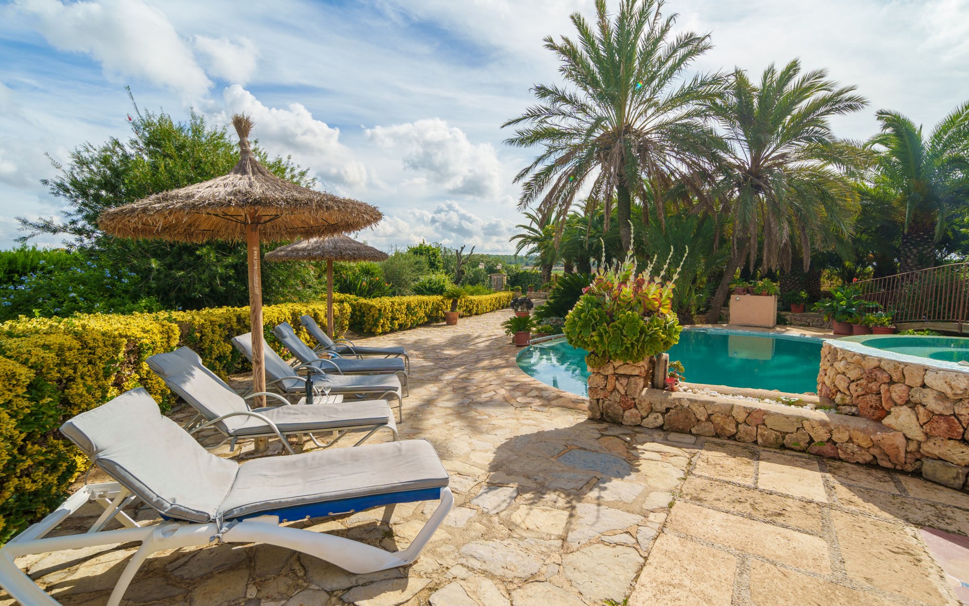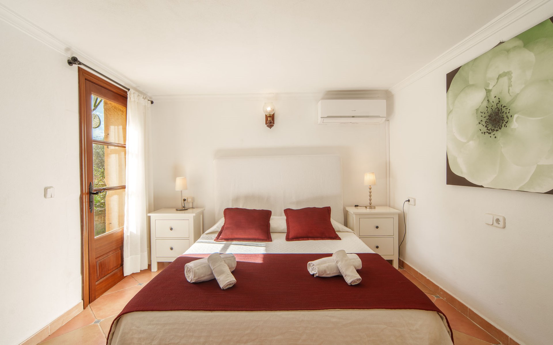 Sehr schöne, komfortable Villa "Son Siurana", umgeben von Feldern. Ausserhalb des Ortes, 850 m vom Zentrum von Ariany, ruhige, sonnige Lage, 18 km vom Meer, im Grünen. Zur Alleinbenutzung: Grundstück (eingezäunt), schöner Garten mit Pflanzen und Bäumen, Naturteich, Schwimmbad rund (8 m Durchmesser, 50 - 220 cm tief, saisonale Verfügbarkeit: 01.Jan. - 31.Dez.). Aussendusche, Sitzplatz, Gartenmöbel, Grill, Poolpflege durch den Besitzer/Gärtner. Im Hause: Internetzugang, Wireless LAN, Einstellraum für Fahrräder, Klimaanlage. Lebensmittelgeschäft 1.3 km, Supermarkt 5.5 km, Bar 1.2 km, Bäckerei 1.2 km, Zentrum zu Fuss in 10 Minuten erreichbar, Bushaltestelle "Ariany" 850 m, Sandstrand "Playas de Muro - Can Picafort" 18 km. Sporthafen 20 km, Golfplatz (18 Loch) 31.2 km, Sportzentrum 1.6 km, Radweg 50 m. Nahe gelegene Sehenswürdigkeiten: Pueblos:Sta. Margalida,Petra,Vilafranca, Manacor. Wandergebiete: Ruta de Petra a Sa Valleta, Rutas Cicloturistas, Serra de Tramuntana. Bitte beachten: Fahrzeug empfohlen. Geeignet für Senioren. Objekt geeignet für 6 Erwachsene. Der Besitzer akzeptiert keine Jugendgruppen. Flugplatz 44 km vom Haus. Ferienwohnung Ref. ES8900.101.1 befindet sich auf dem gleichen Grundstück. In dieser Anlage zusätzlich mietbar: 2 Chalets.