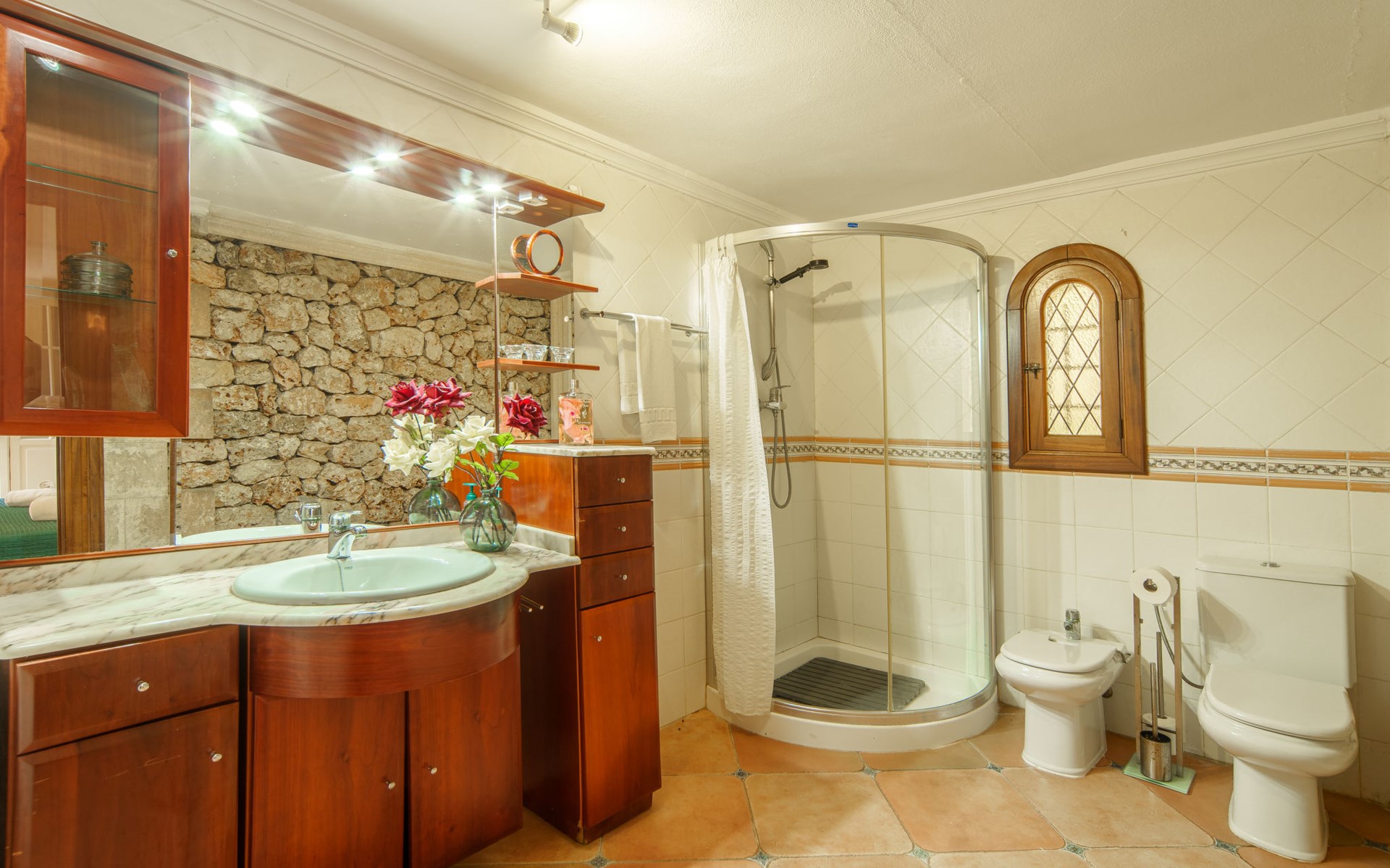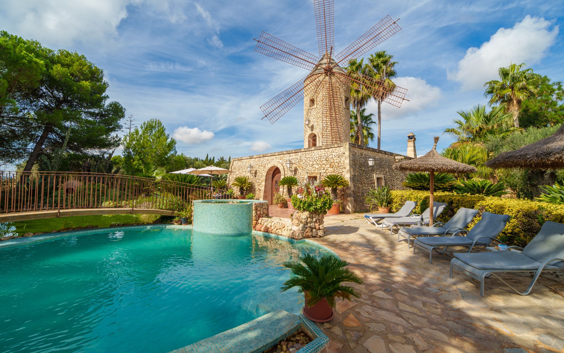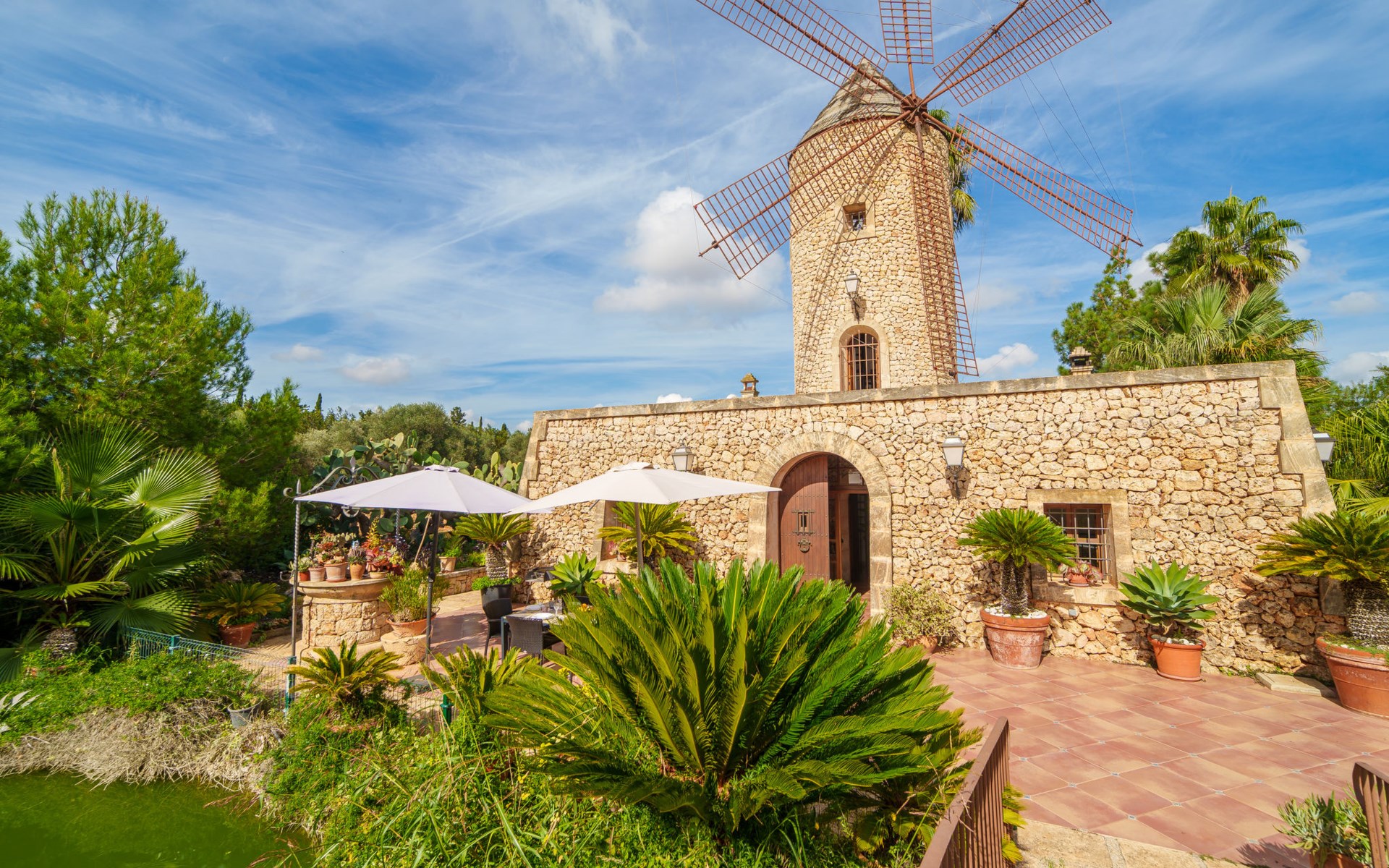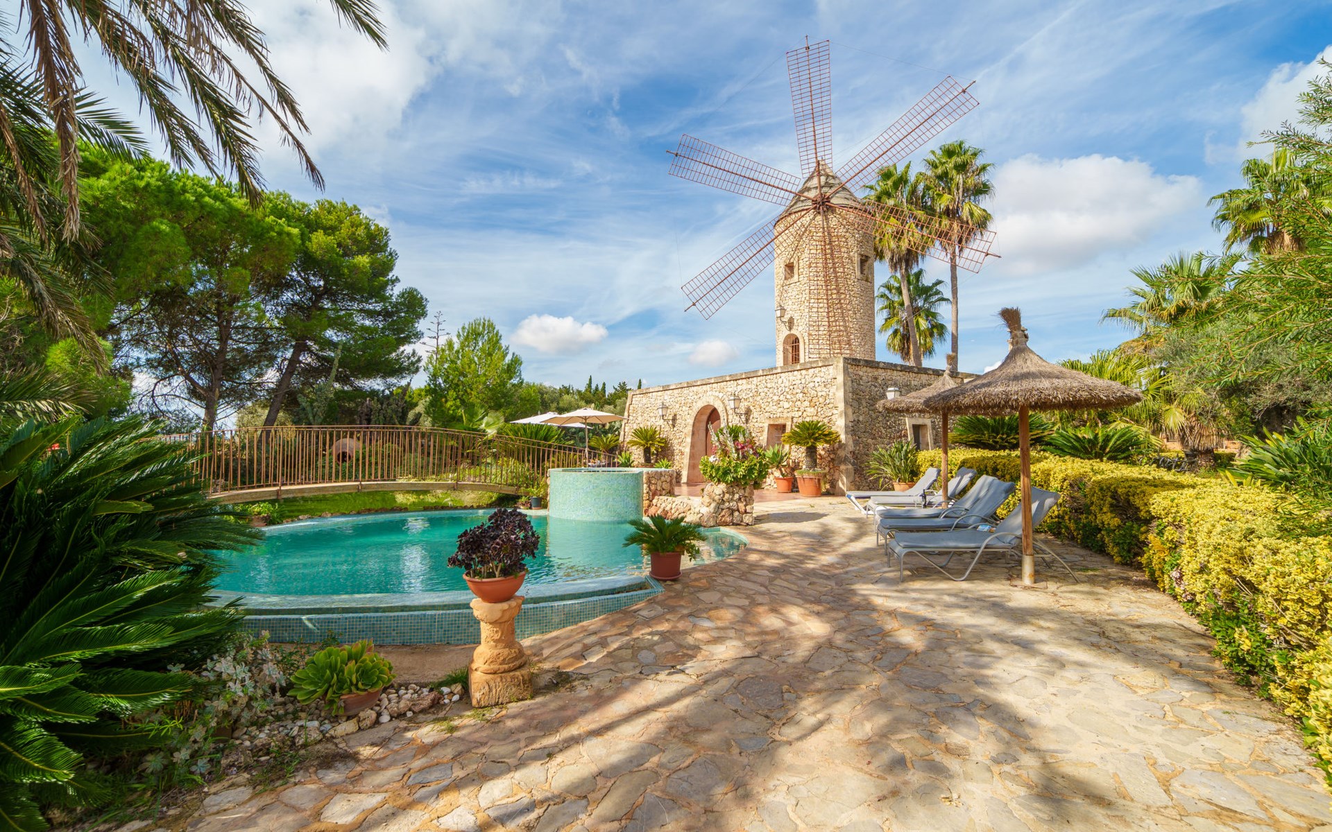 Sehr schöne, komfortable Villa "Son Siurana", umgeben von Feldern. Ausserhalb des Ortes, 850 m vom Zentrum von Ariany, ruhige, sonnige Lage, 18 km vom Meer, im Grünen. Zur Alleinbenutzung: Grundstück (eingezäunt), schöner Garten mit Pflanzen und Bäumen, Naturteich, Schwimmbad rund (8 m Durchmesser, 50 - 220 cm tief, saisonale Verfügbarkeit: 01.Jan. - 31.Dez.). Aussendusche, Sitzplatz, Gartenmöbel, Grill, Poolpflege durch den Besitzer/Gärtner. Im Hause: Internetzugang, Wireless LAN, Einstellraum für Fahrräder, Klimaanlage. Lebensmittelgeschäft 1.3 km, Supermarkt 5.5 km, Bar 1.2 km, Bäckerei 1.2 km, Zentrum zu Fuss in 10 Minuten erreichbar, Bushaltestelle "Ariany" 850 m, Sandstrand "Playas de Muro - Can Picafort" 18 km. Sporthafen 20 km, Golfplatz (18 Loch) 31.2 km, Sportzentrum 1.6 km, Radweg 50 m. Nahe gelegene Sehenswürdigkeiten: Pueblos:Sta. Margalida,Petra,Vilafranca, Manacor. Wandergebiete: Ruta de Petra a Sa Valleta, Rutas Cicloturistas, Serra de Tramuntana. Bitte beachten: Fahrzeug empfohlen. Geeignet für Senioren. Objekt geeignet für 6 Erwachsene. Der Besitzer akzeptiert keine Jugendgruppen. Flugplatz 44 km vom Haus. Ferienwohnung Ref. ES8900.101.1 befindet sich auf dem gleichen Grundstück. In dieser Anlage zusätzlich mietbar: 2 Chalets.