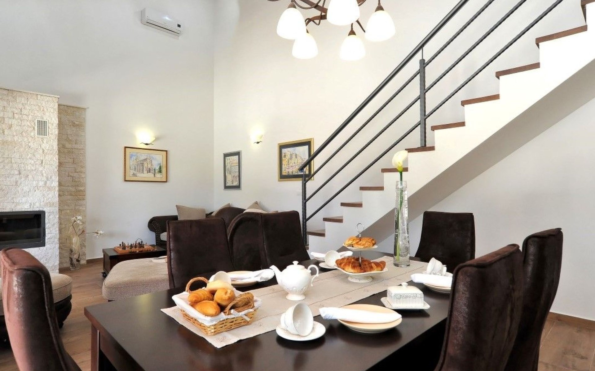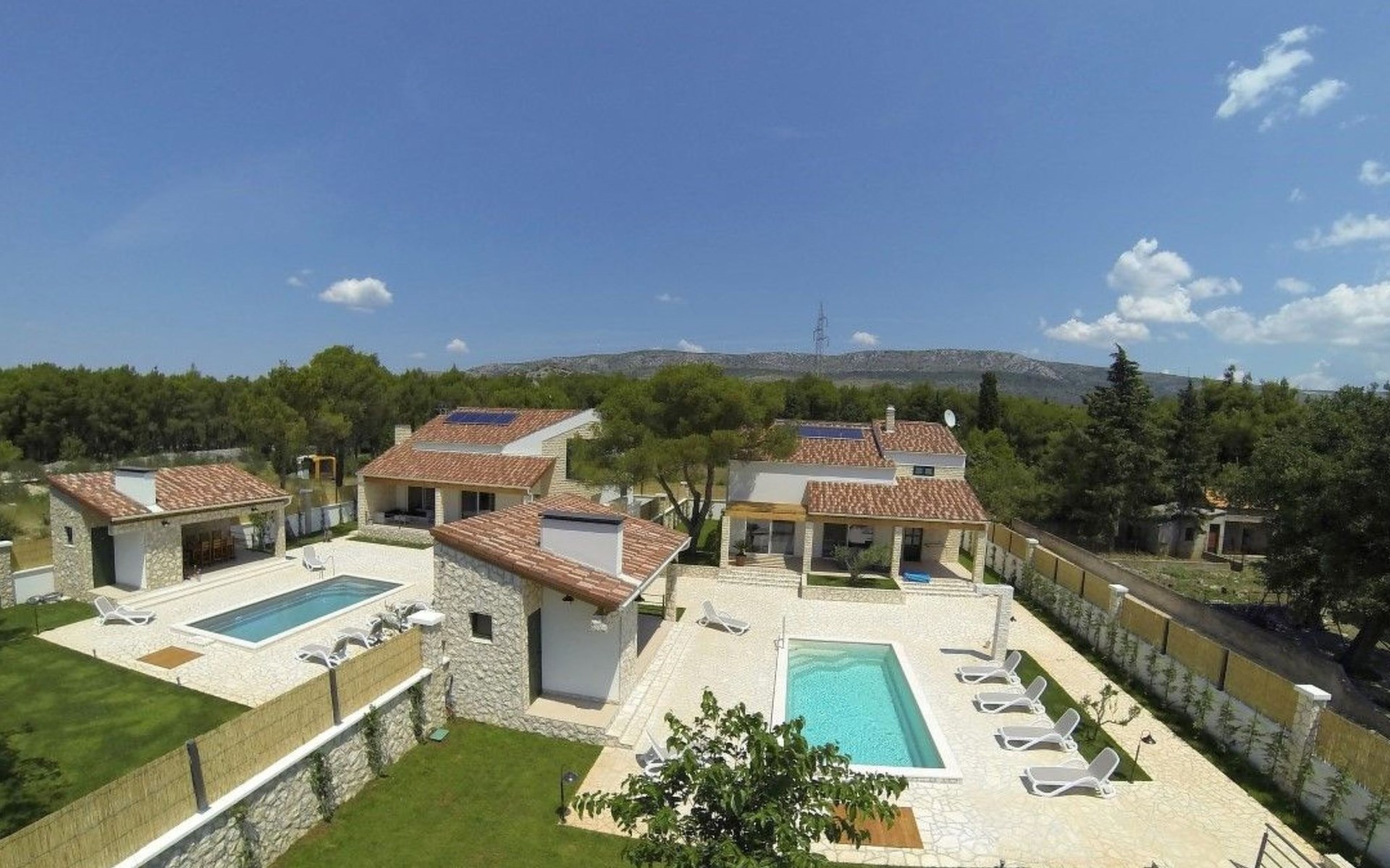 Die Familienvilla Olala verfügt über eine sorgfältig gestaltete Inneneinrichtung, die Komfort und Funktionalität nahtlos miteinander verbindet. Die Villa verfügt über drei klimatisierte Schlafzimmer, die jeweils über ein eigenes Bad verfügen und somit Privatsphäre und Komfort für alle Gäste gewährleisten. Das Vorhandensein einer Waschmaschine macht Ihren Aufenthalt noch angenehmer, denn so können Sie Ihre Urlaubsgarderobe mühelos frisch halten. Ein Geschirrspüler und eine Kaffeemaschine machen die Selbstversorgung während Ihres Aufenthaltes zu einem Kinderspiel.