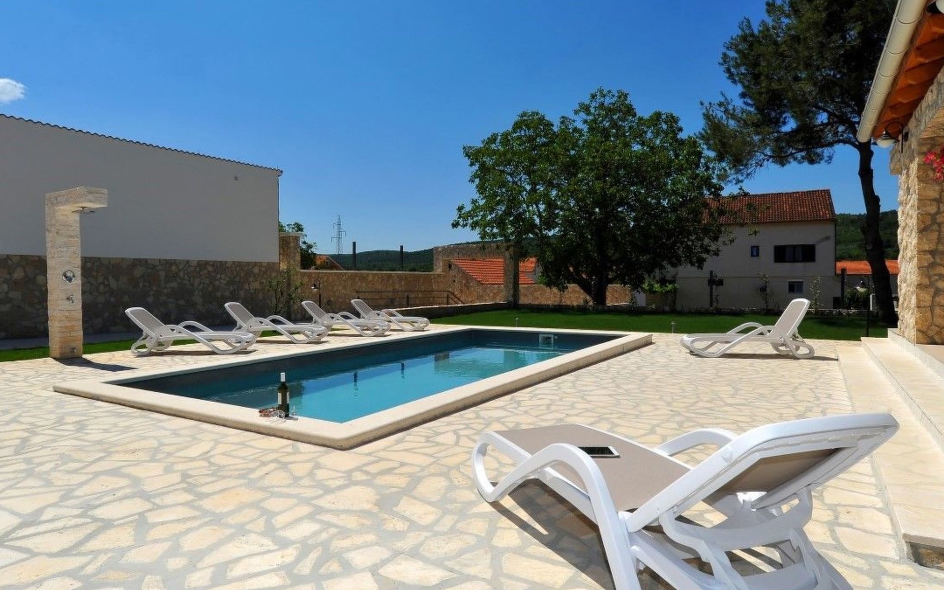 Trotz der Abgeschiedenheit bietet die Lage der Villa einen einfachen Zugang zu einer Vielzahl von Erlebnissen. Eine kurze Autofahrt bringt Sie ins Herz von Šibenik, wo Sie ein reiches kulturelles Erbe und hervorragende gastronomische Angebote entdecken können. Für diejenigen, die Sonne und Meer suchen, sind der Strand und das Meer nur 5 Kilometer entfernt und versprechen herrliche Tage im Freien. Die wichtigsten Einrichtungen befinden sich in unmittelbarer Nähe, und ein Lebensmittelgeschäft ist nur 500 m entfernt, so dass Sie alles Notwendige in Reichweite haben.
